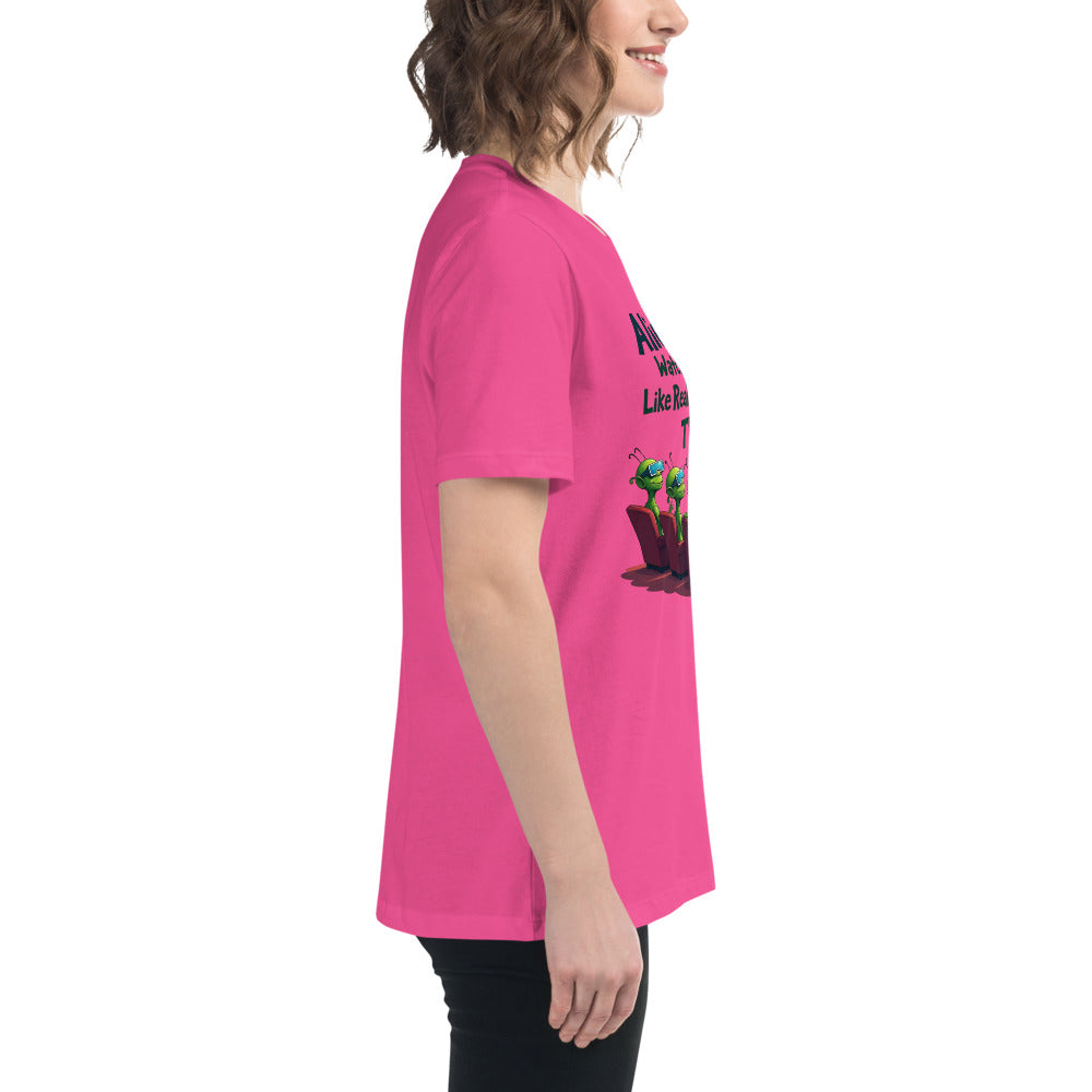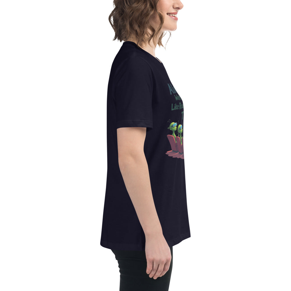 The Aliens Watching Us Like Reality TV Women's Relaxed T-Shirt is for those who believe we’re the ultimate entertainment in the eyes of the cosmos. Crafted from soft, breathable fabric, this shirt embraces the playful idea that somewhere out there, aliens are tuned into our every move—like a cosmic reality show.