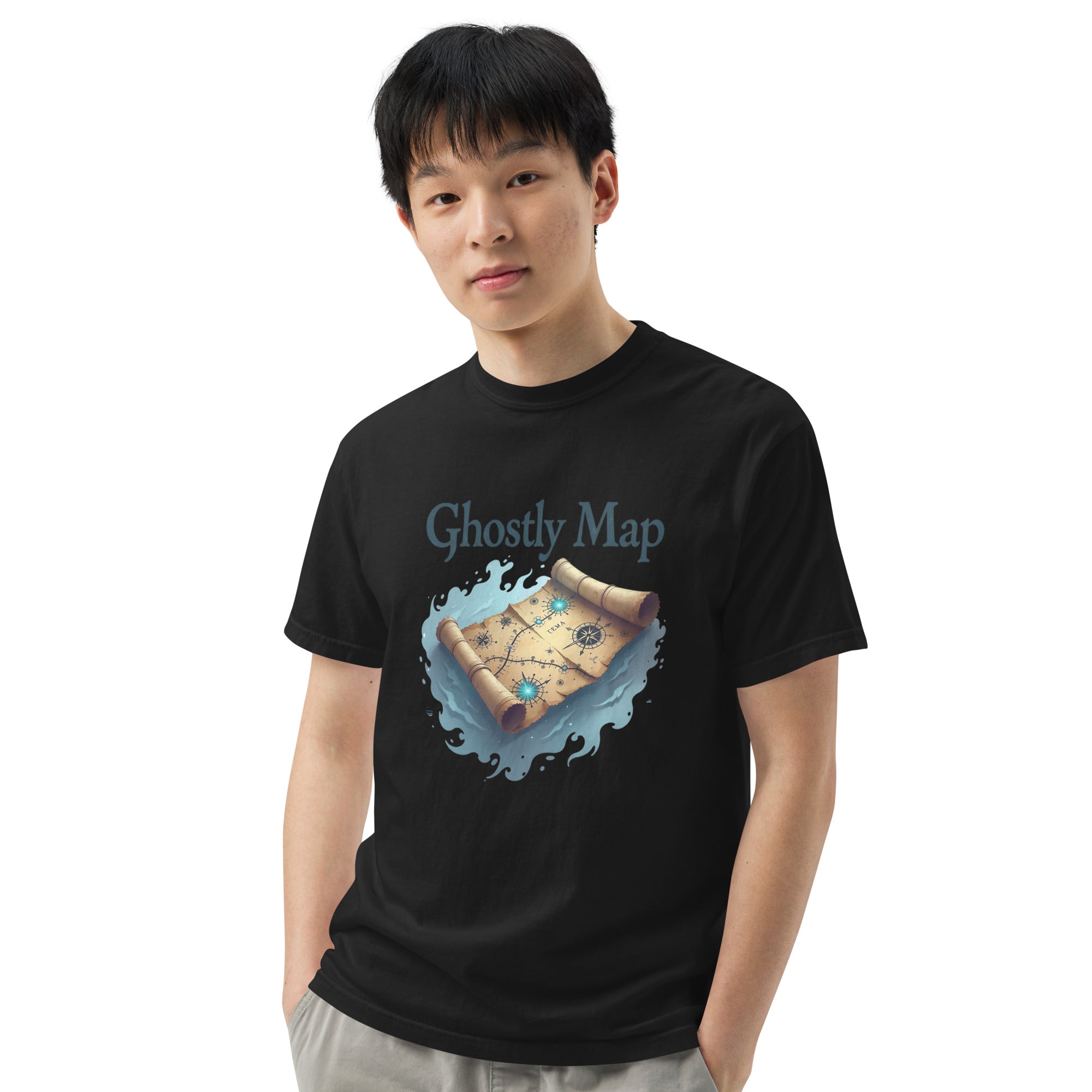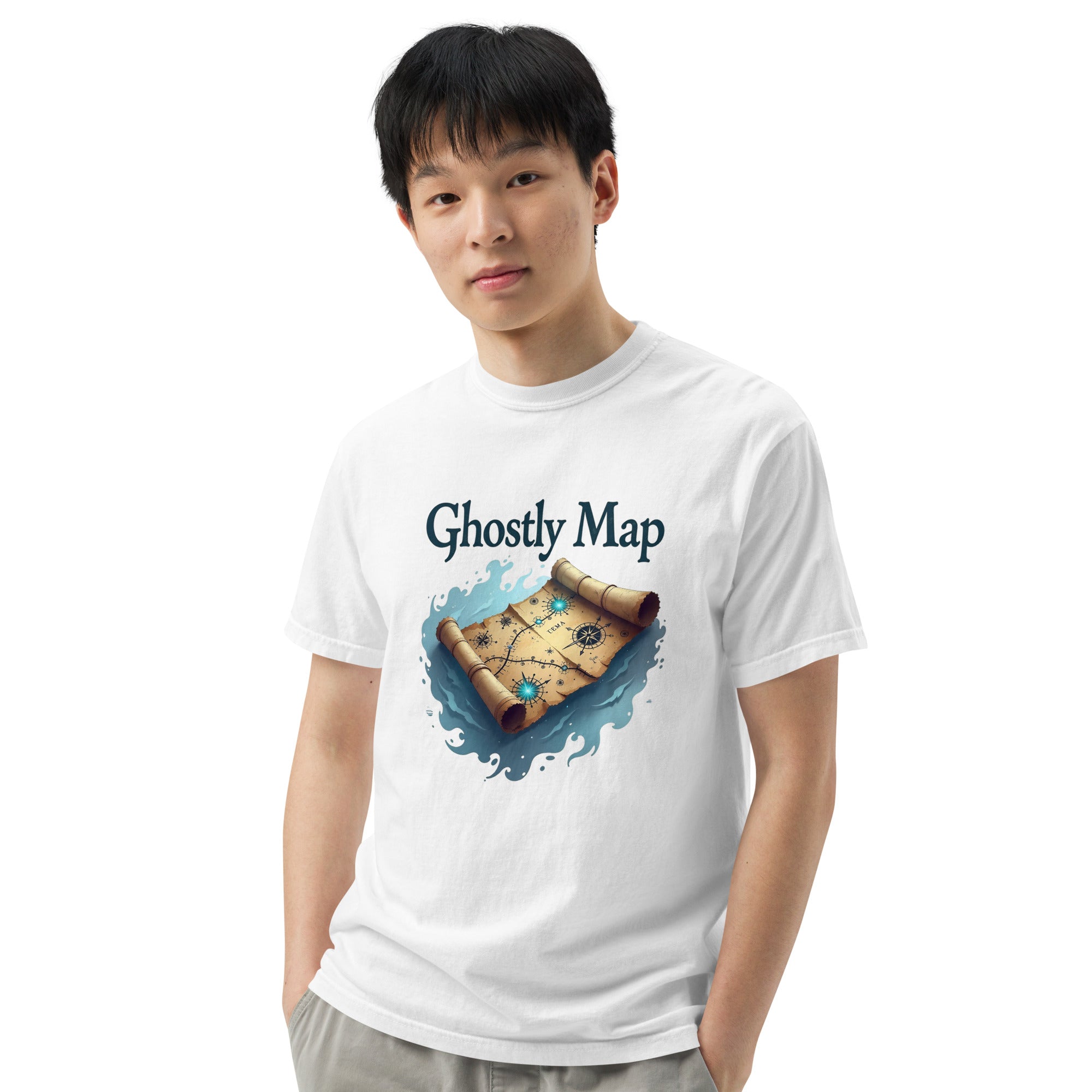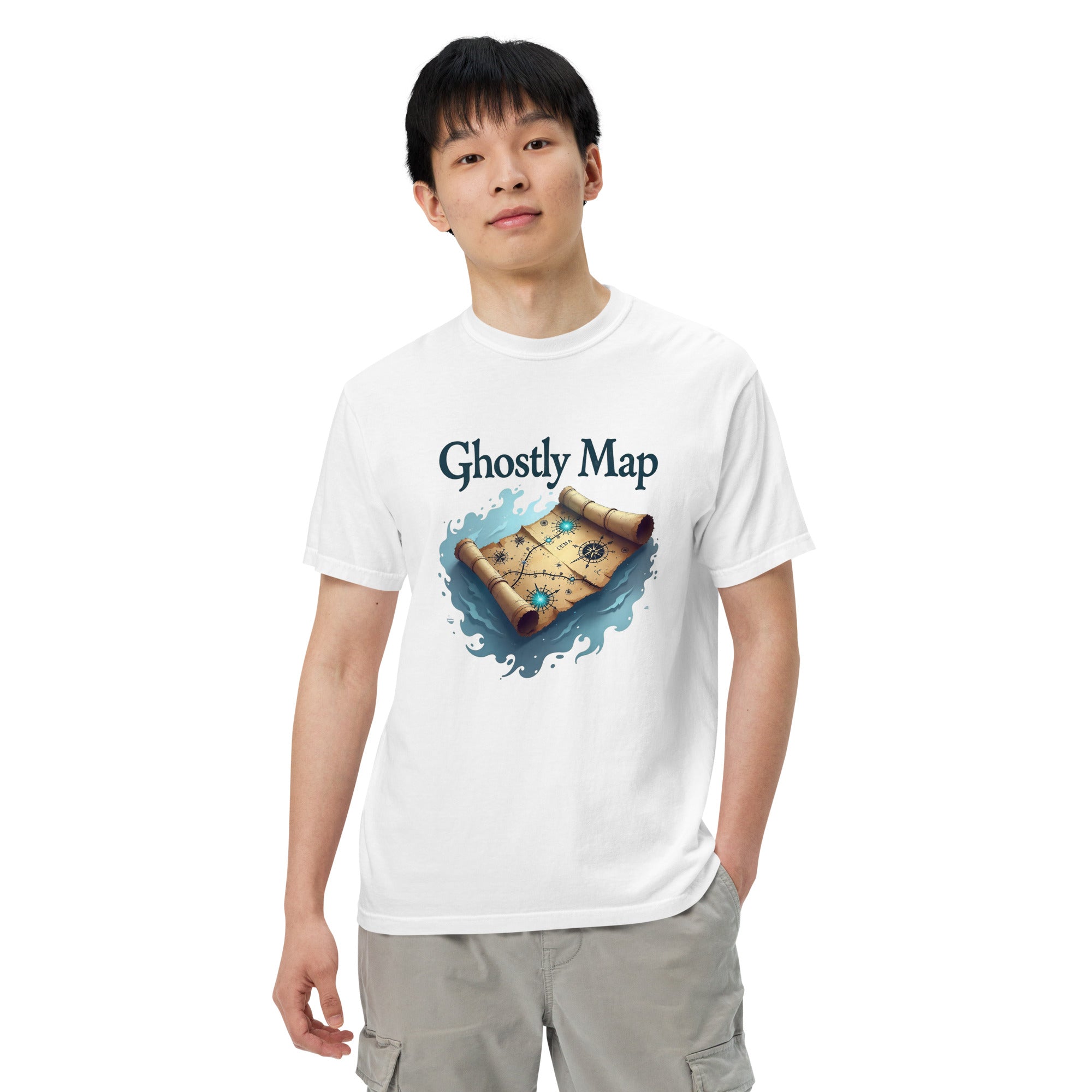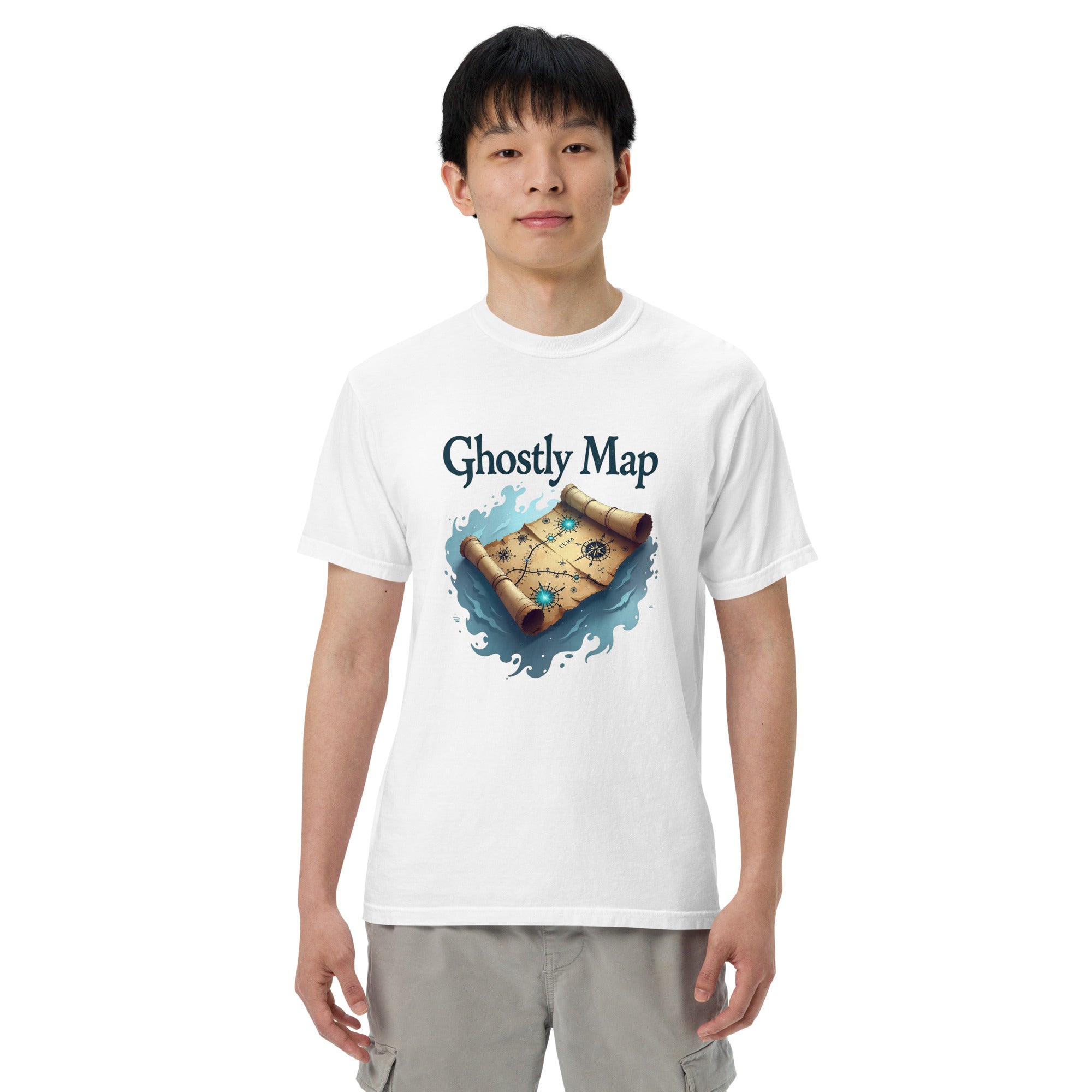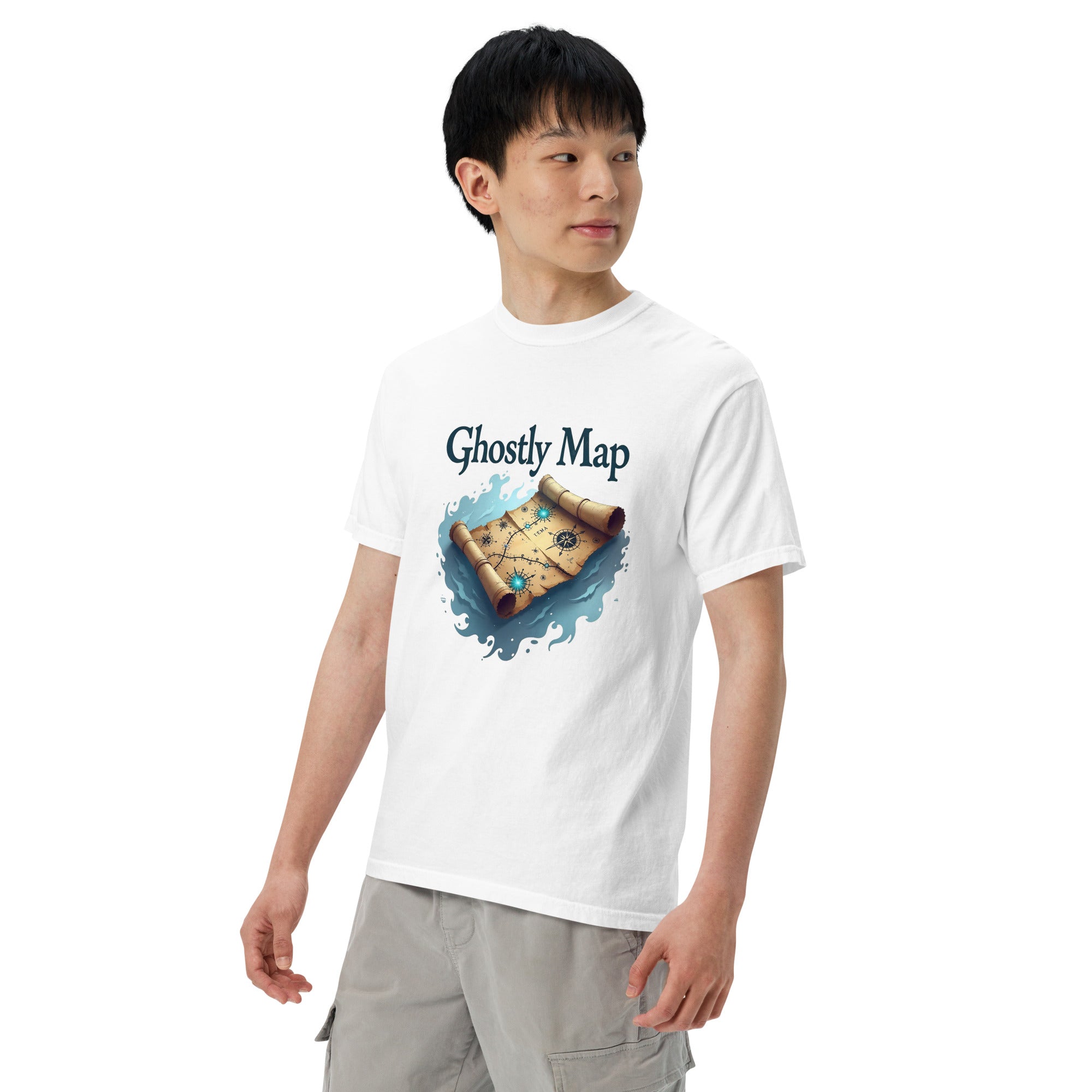 The Ghostly Map Garment-Dyed Heavyweight T-shirt is for those who dare to explore uncharted territories, both in the world and in their own lives. Crafted from heavyweight, garment-dyed fabric, this shirt channels the mystery of ancient maps and the thrill of uncovering secrets hidden by time.