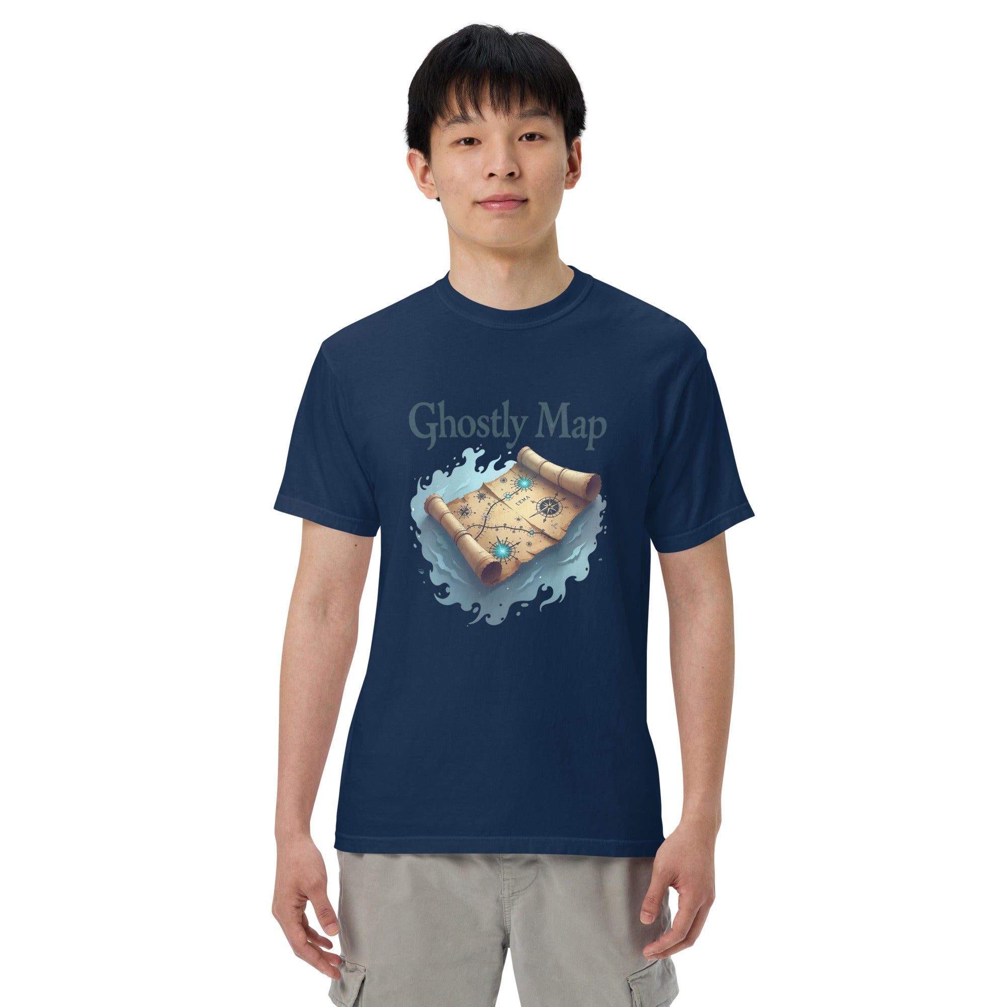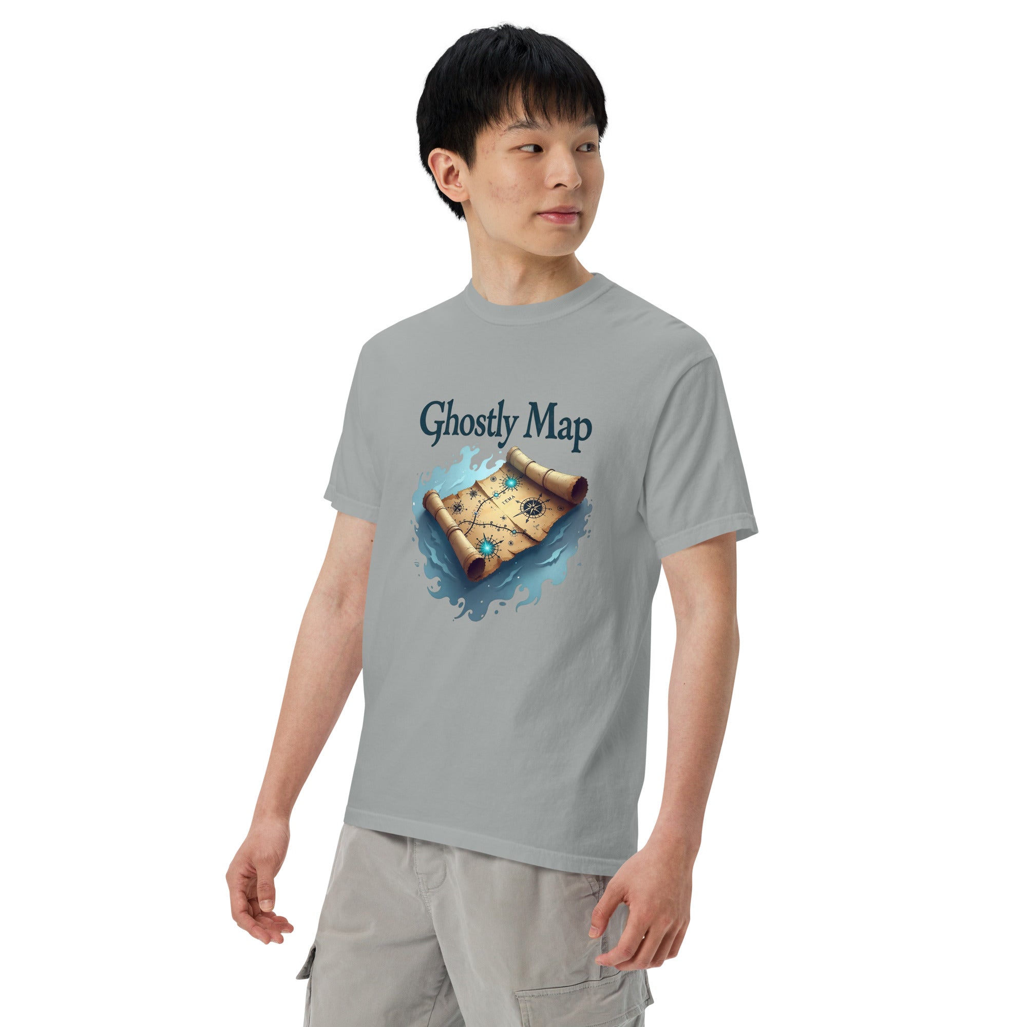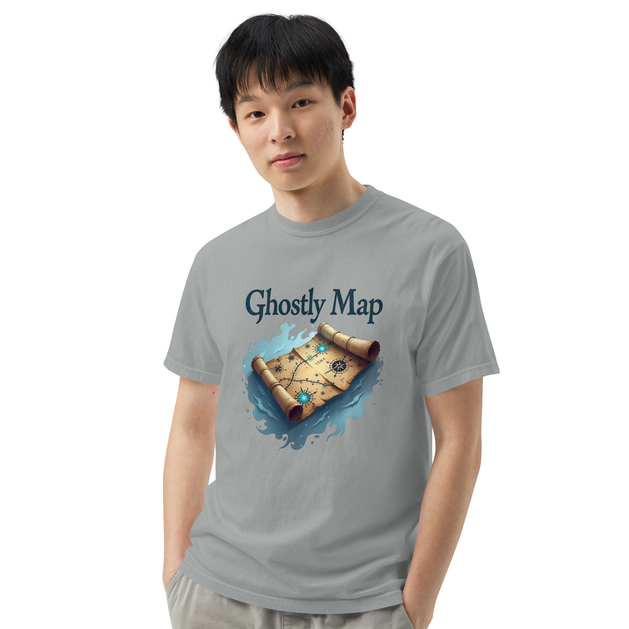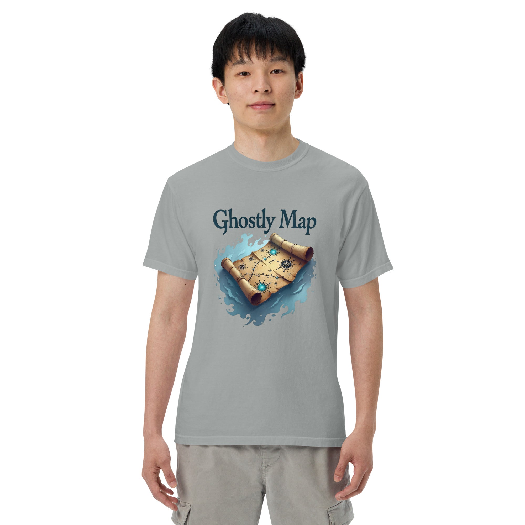 The Ghostly Map Garment-Dyed Heavyweight T-shirt is for those who dare to explore uncharted territories, both in the world and in their own lives. Crafted from heavyweight, garment-dyed fabric, this shirt channels the mystery of ancient maps and the thrill of uncovering secrets hidden by time.