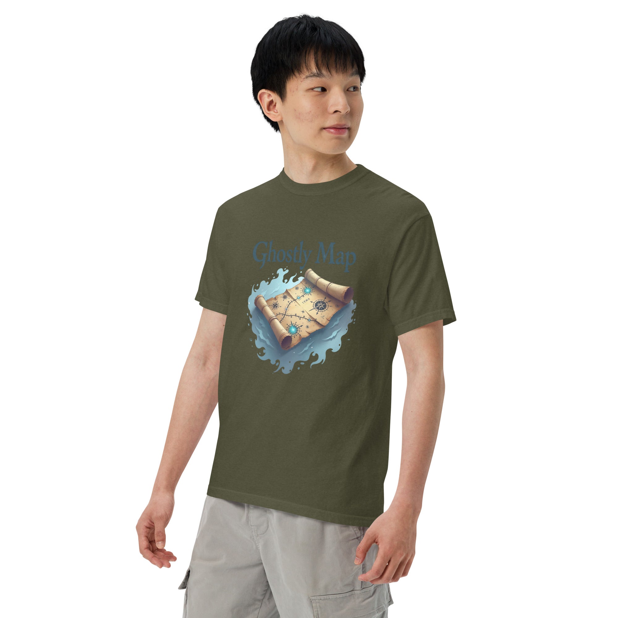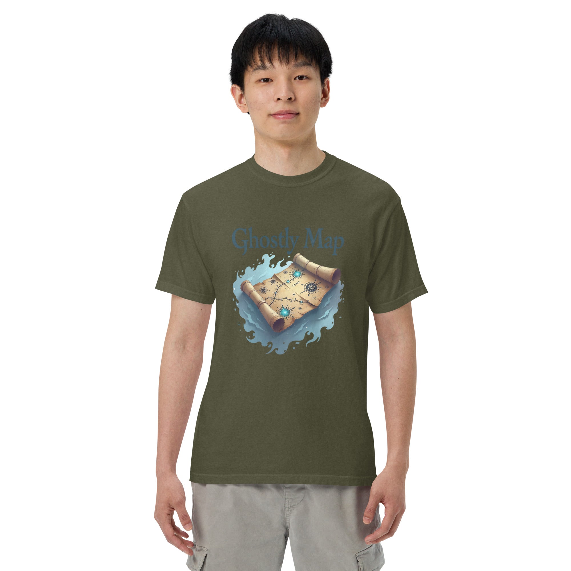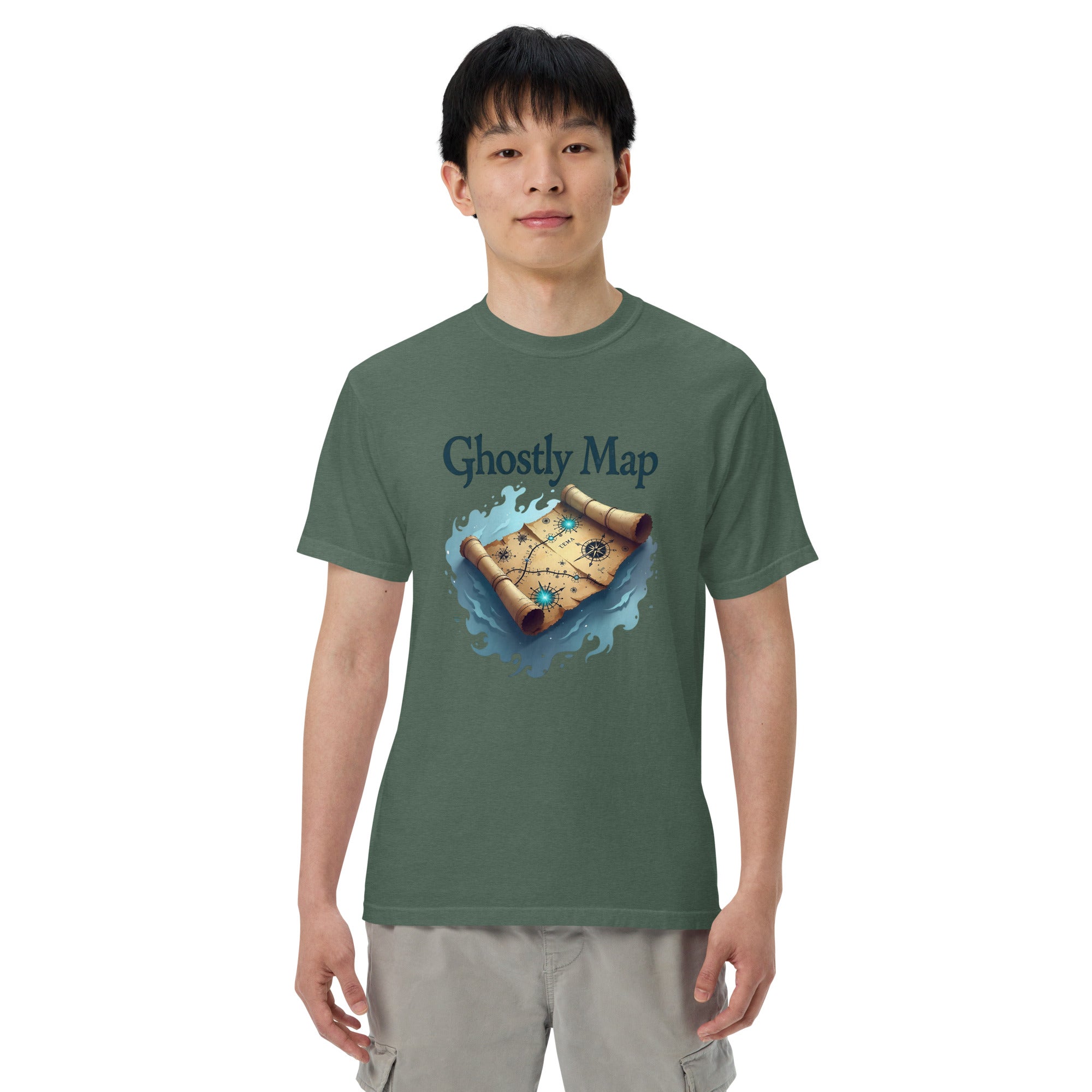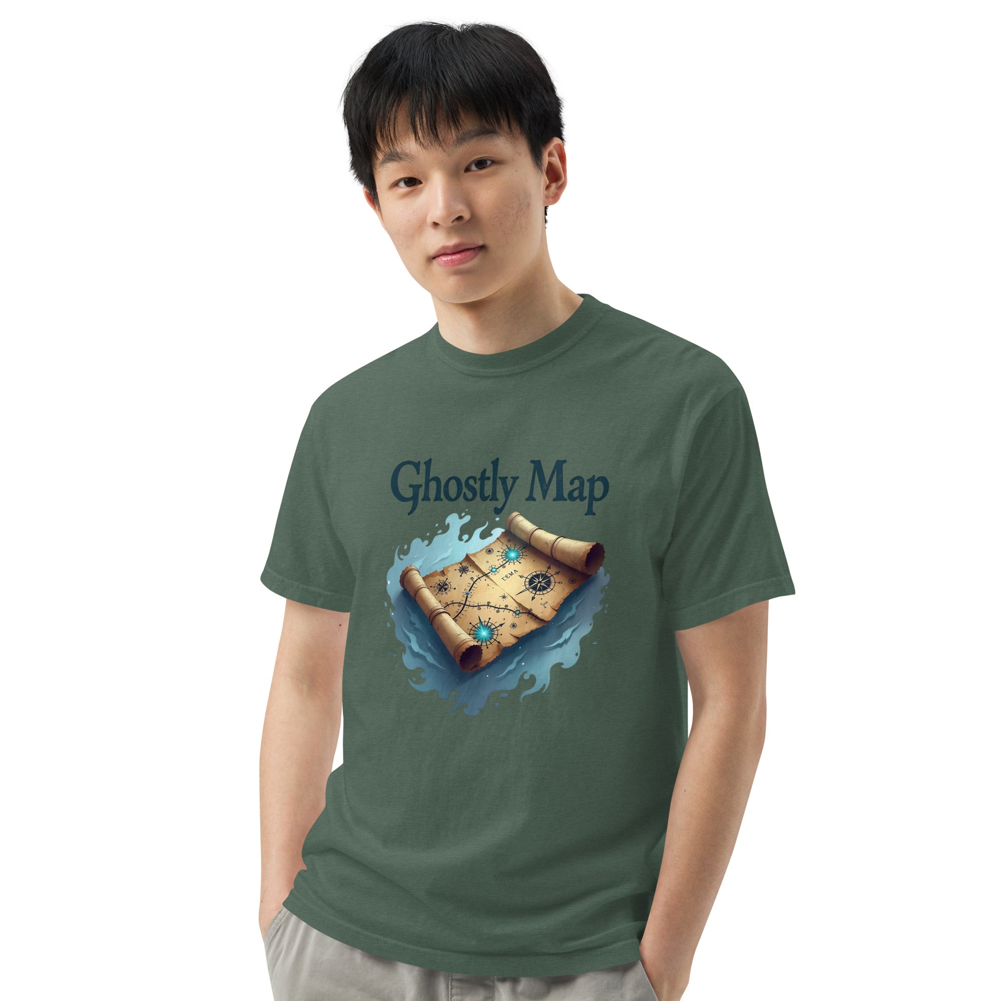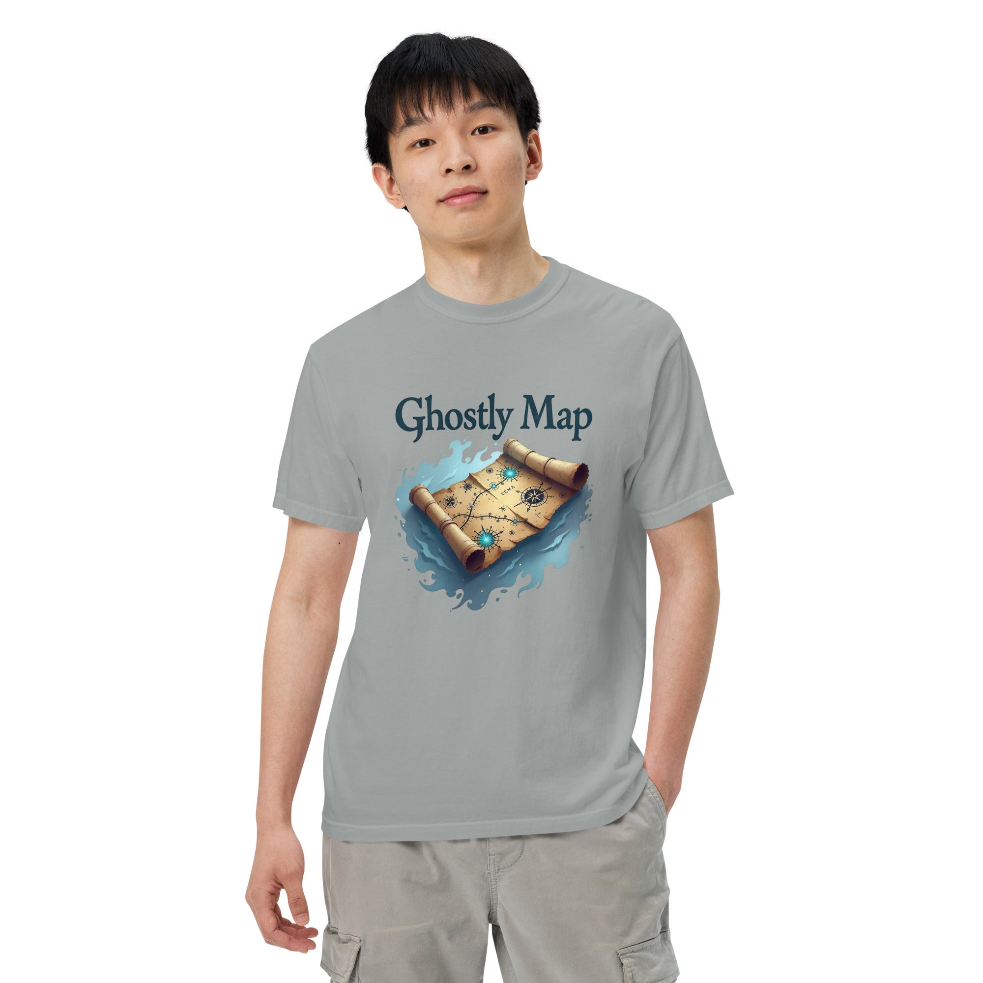 The Ghostly Map Garment-Dyed Heavyweight T-shirt is for those who dare to explore uncharted territories, both in the world and in their own lives. Crafted from heavyweight, garment-dyed fabric, this shirt channels the mystery of ancient maps and the thrill of uncovering secrets hidden by time.