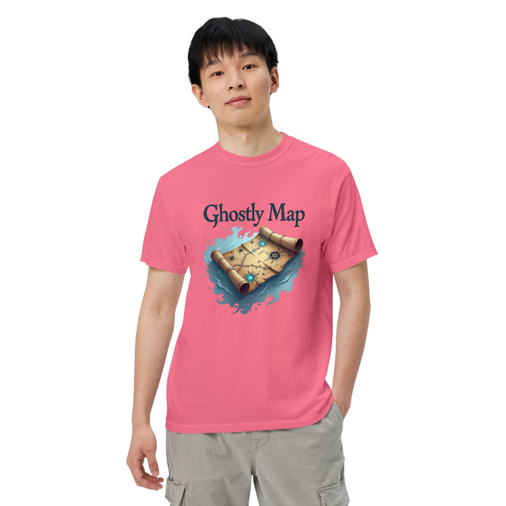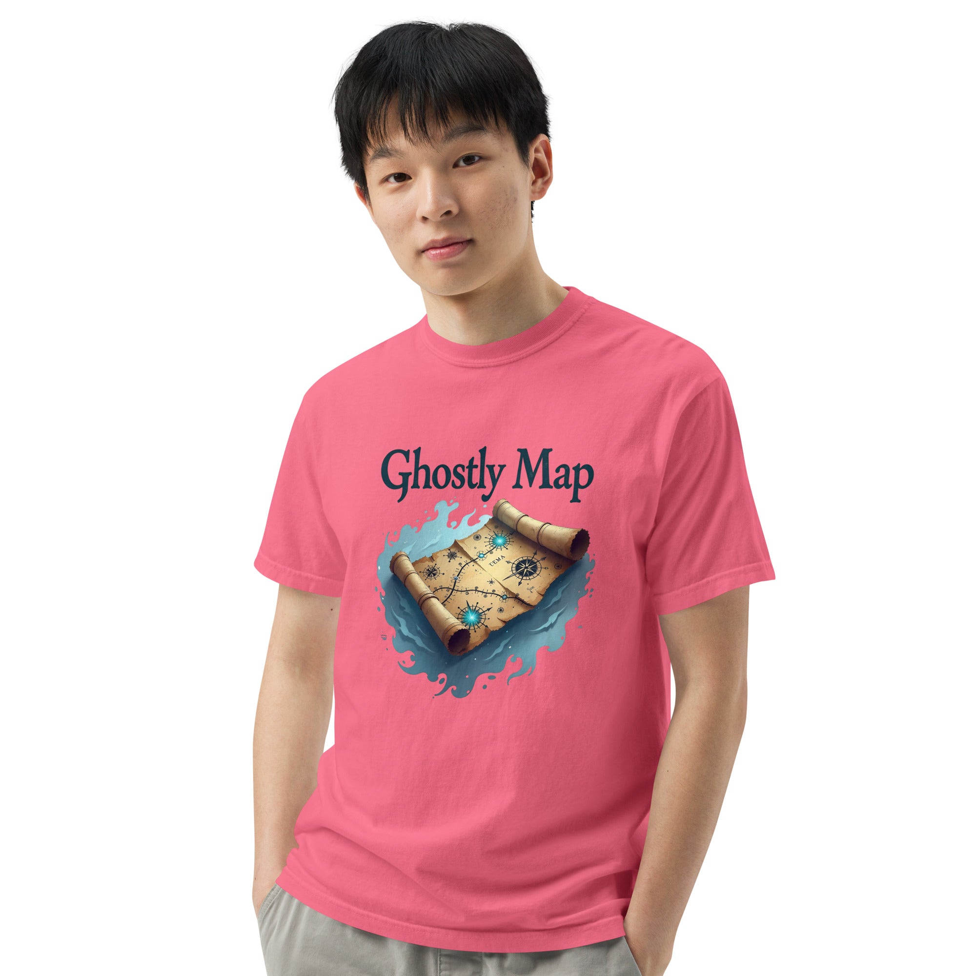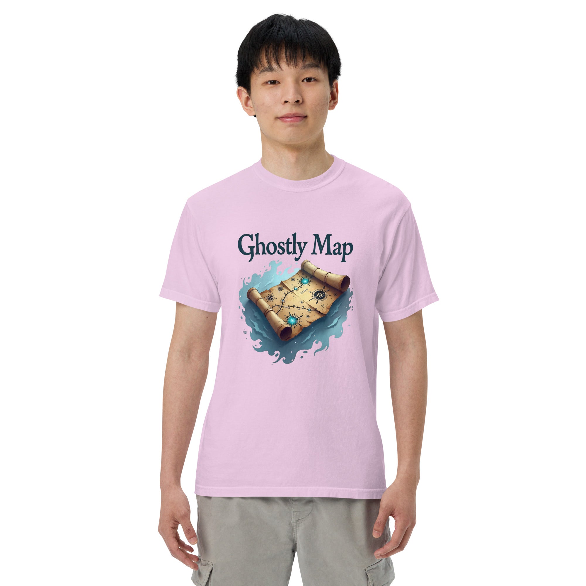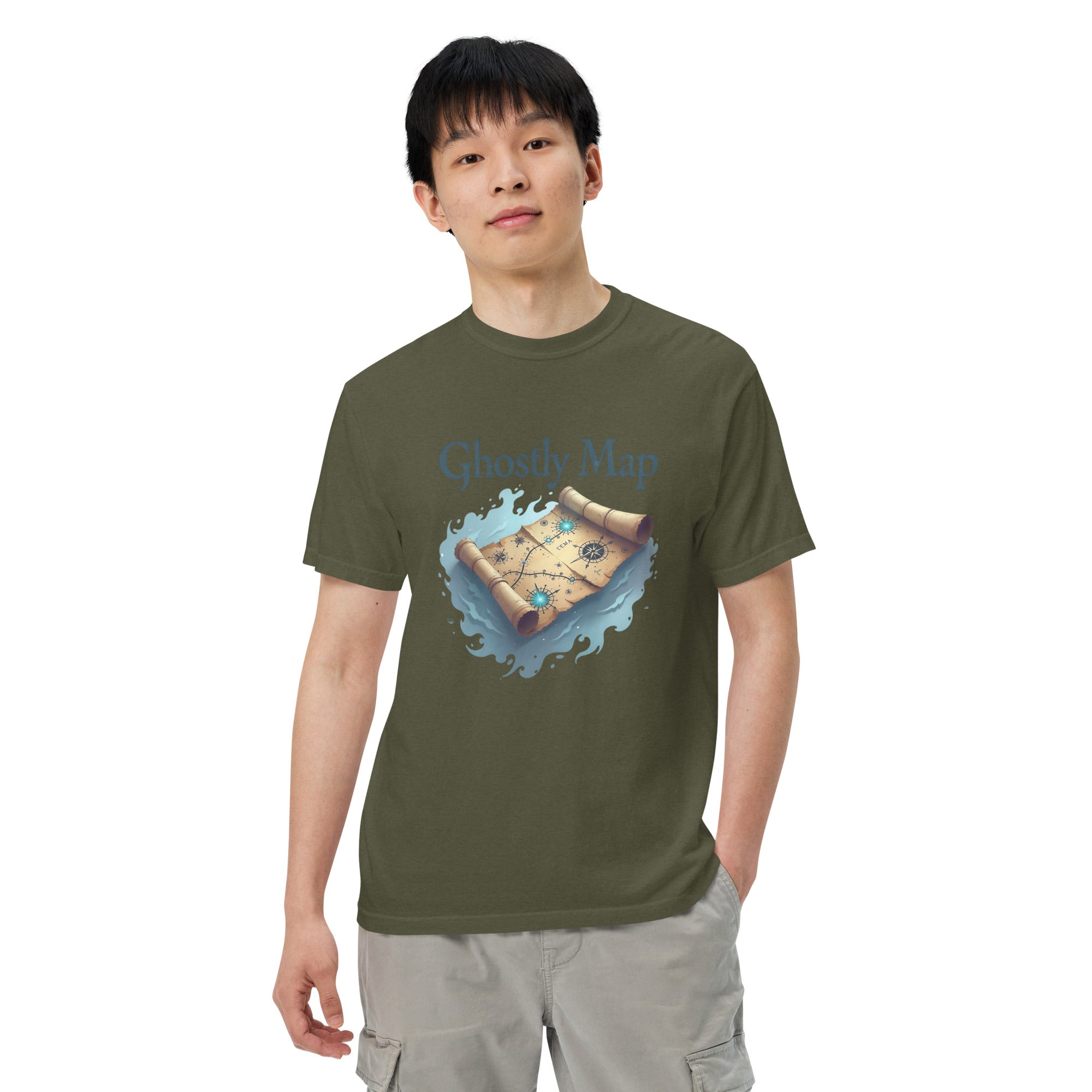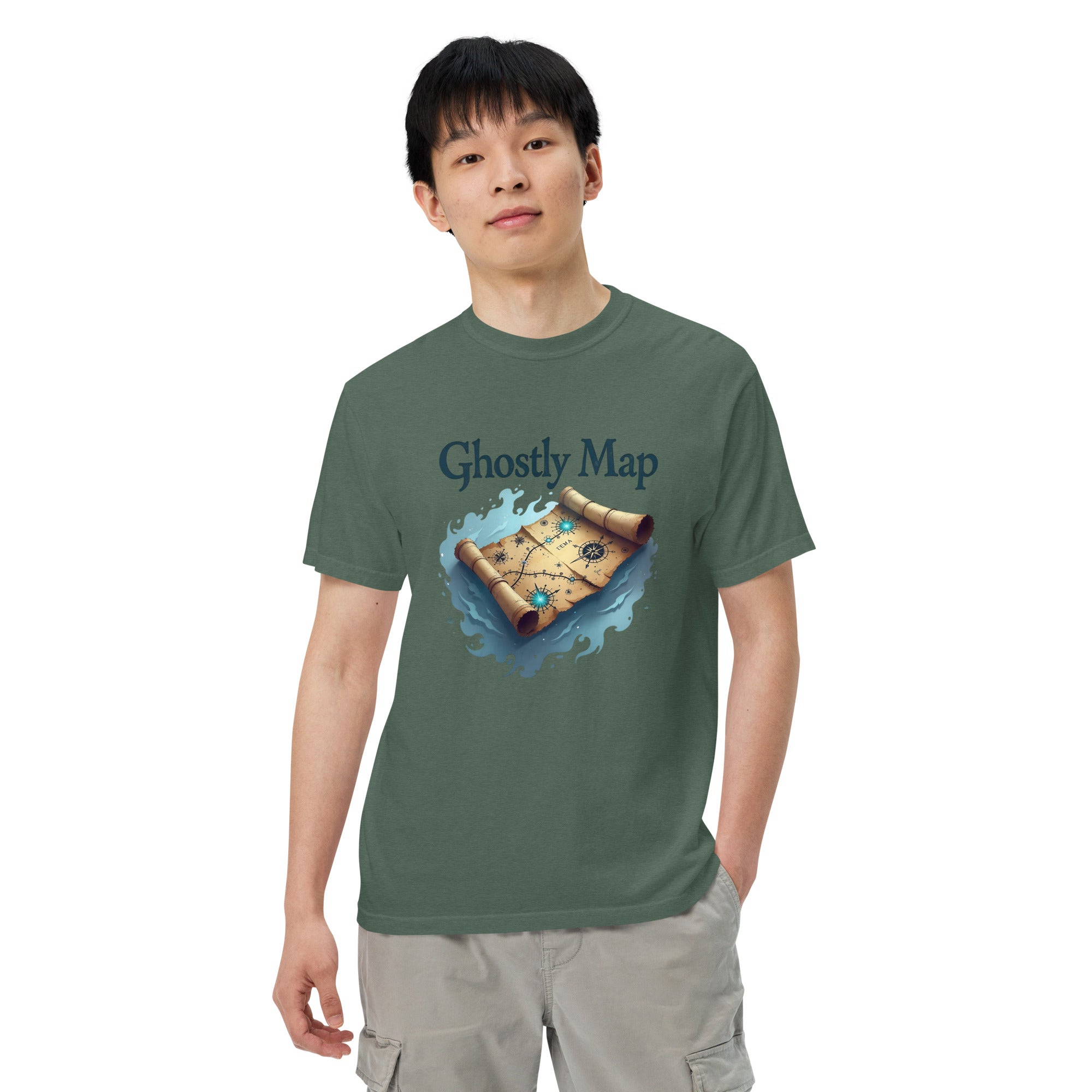 The Ghostly Map Garment-Dyed Heavyweight T-shirt is for those who dare to explore uncharted territories, both in the world and in their own lives. Crafted from heavyweight, garment-dyed fabric, this shirt channels the mystery of ancient maps and the thrill of uncovering secrets hidden by time.