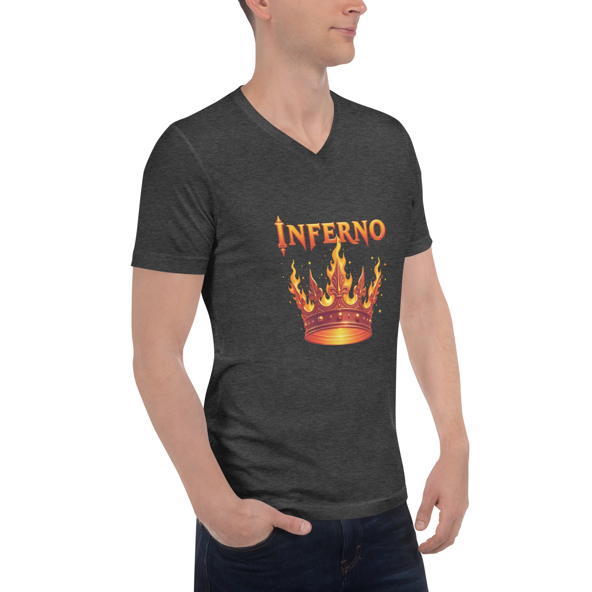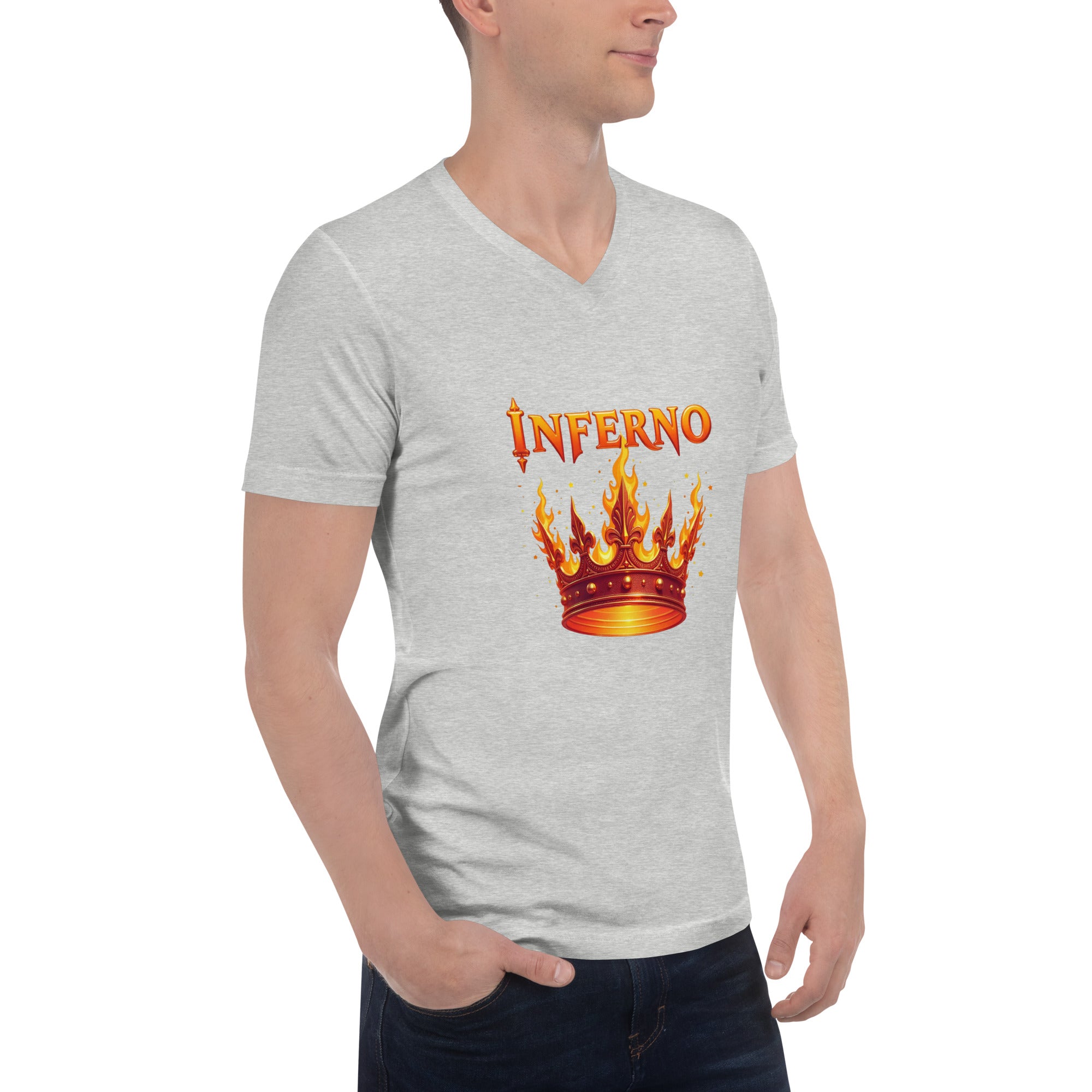 The Inferno Men’s Short Sleeve V-Neck T-shirt is for those who aren’t afraid to set the world on fire. Crafted from soft, breathable fabric, this shirt brings the intensity of a blazing fire to your wardrobe, perfect for the man who lives with passion, power, and a little bit of chaos.