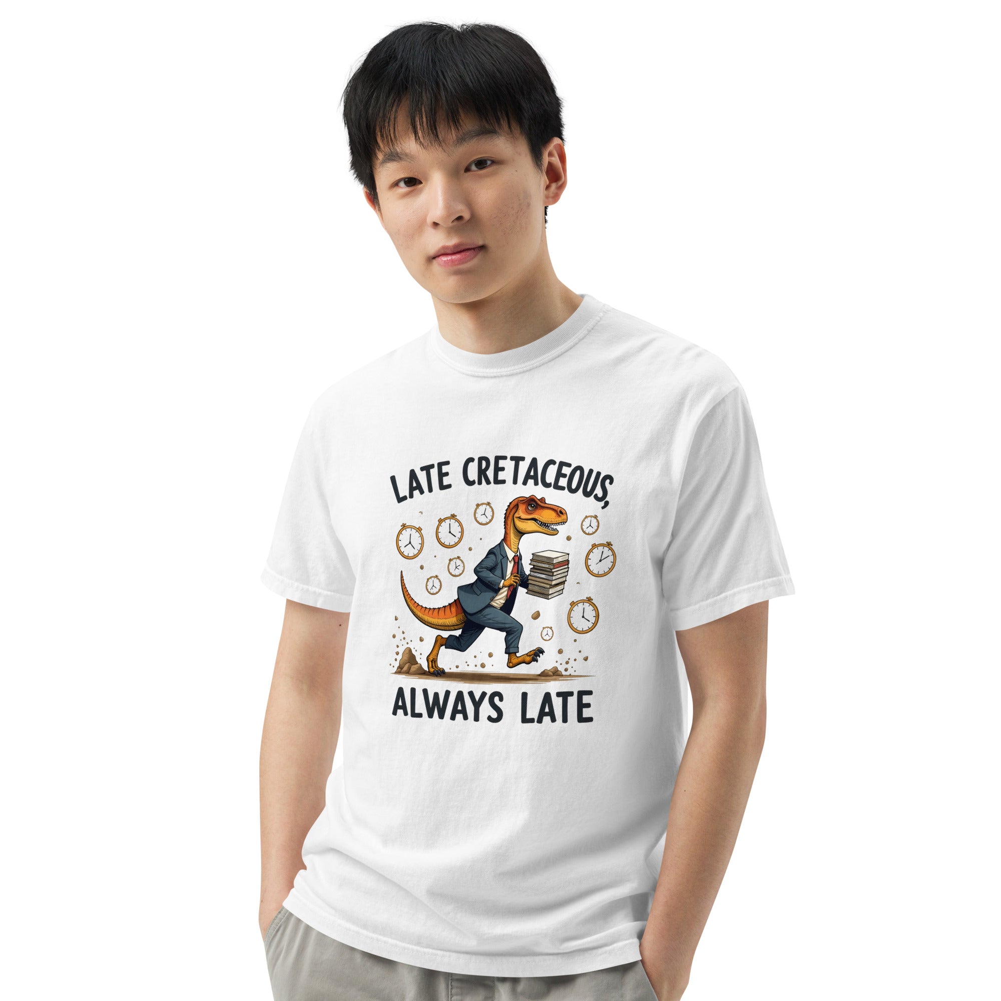 Step into the past, where dinosaurs ruled the earth and things were much simpler—well, except for the giant creatures. The "LATE CRETACEOUS" men’s garment-dyed heavyweight t-shirt is for those who have a taste for the ancient and a sense of adventure. Whether you’re a dino enthusiast, a history buff, or just love a bold, unique vibe, this shirt transports you to a time when life was wild, untamed, and unforgettable.