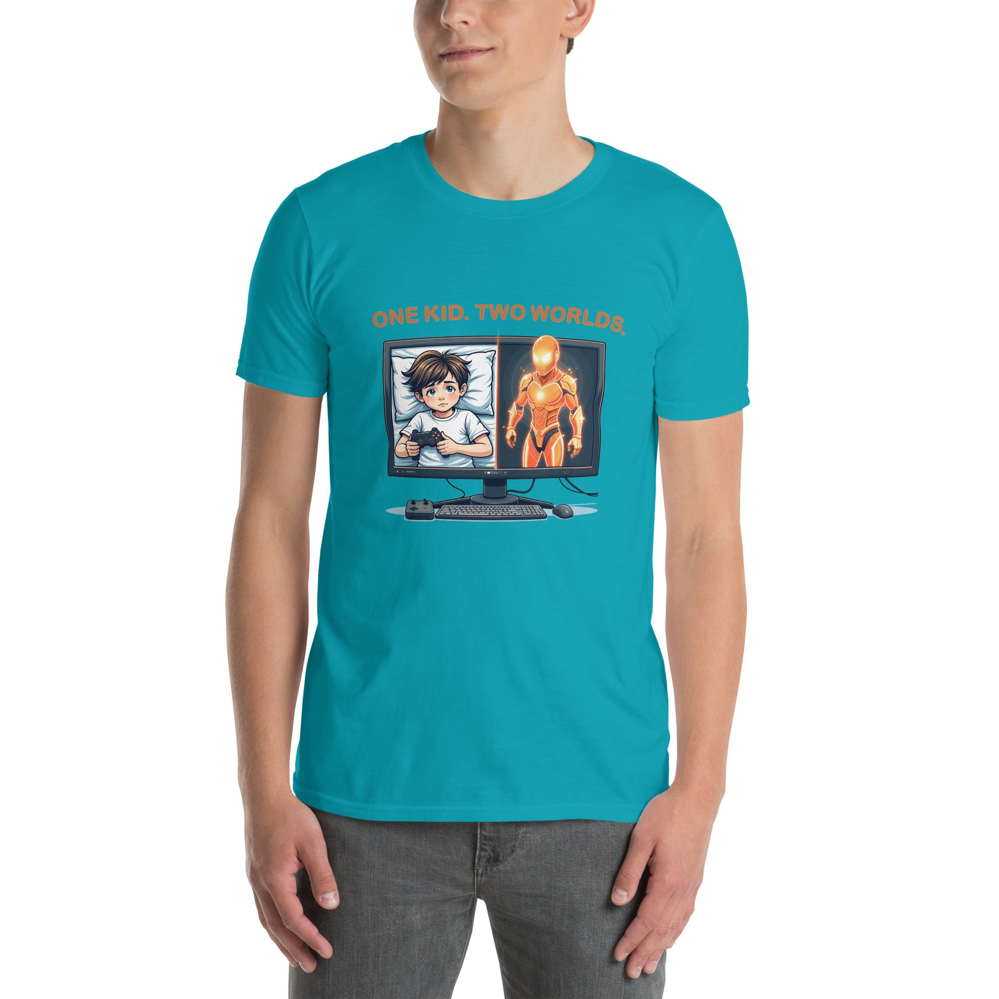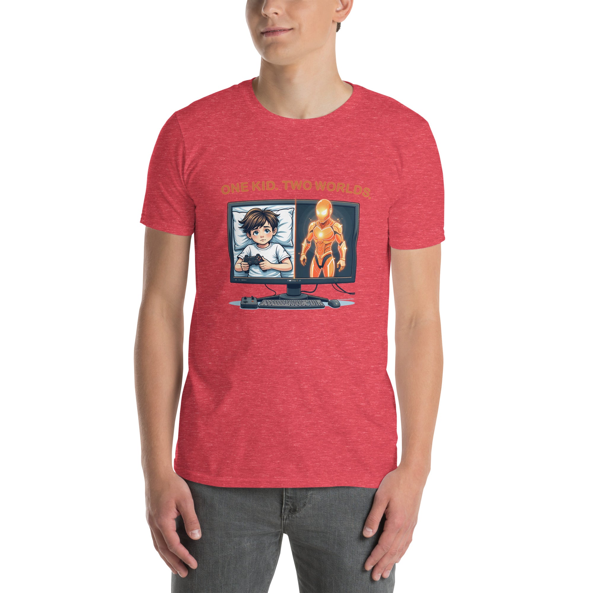 Living between two worlds isn’t just a balancing act—it’s an adventure. The "ONE KID, TWO WORLDS" men’s t-shirt is for those who embrace the beauty of duality, moving effortlessly between two different lives, cultures, or perspectives. Whether you're juggling different sides of yourself or straddling two passions, this shirt is a proud declaration that you're making it work and owning every moment.