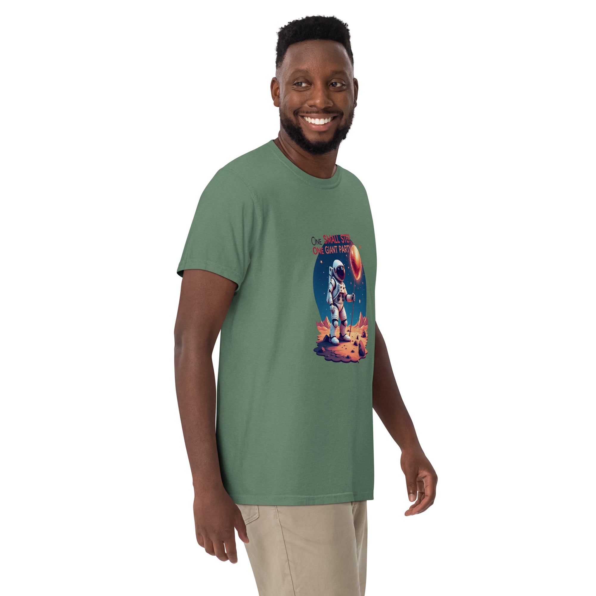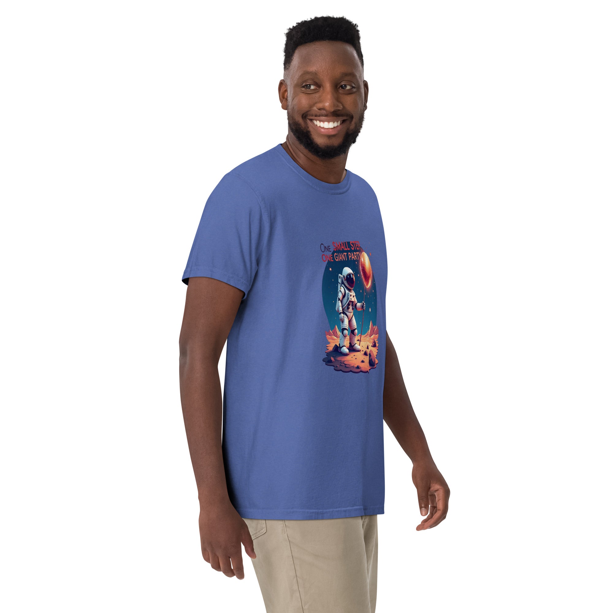 "ONE SMALL STEP" is more than a nod to the moonwalk—it’s a declaration of progress, bold moves, and stepping out like you own the universe. Whether you're launching into the day or just headed to grab tacos, this heavyweight tee brings the gravity (and the swagger).
