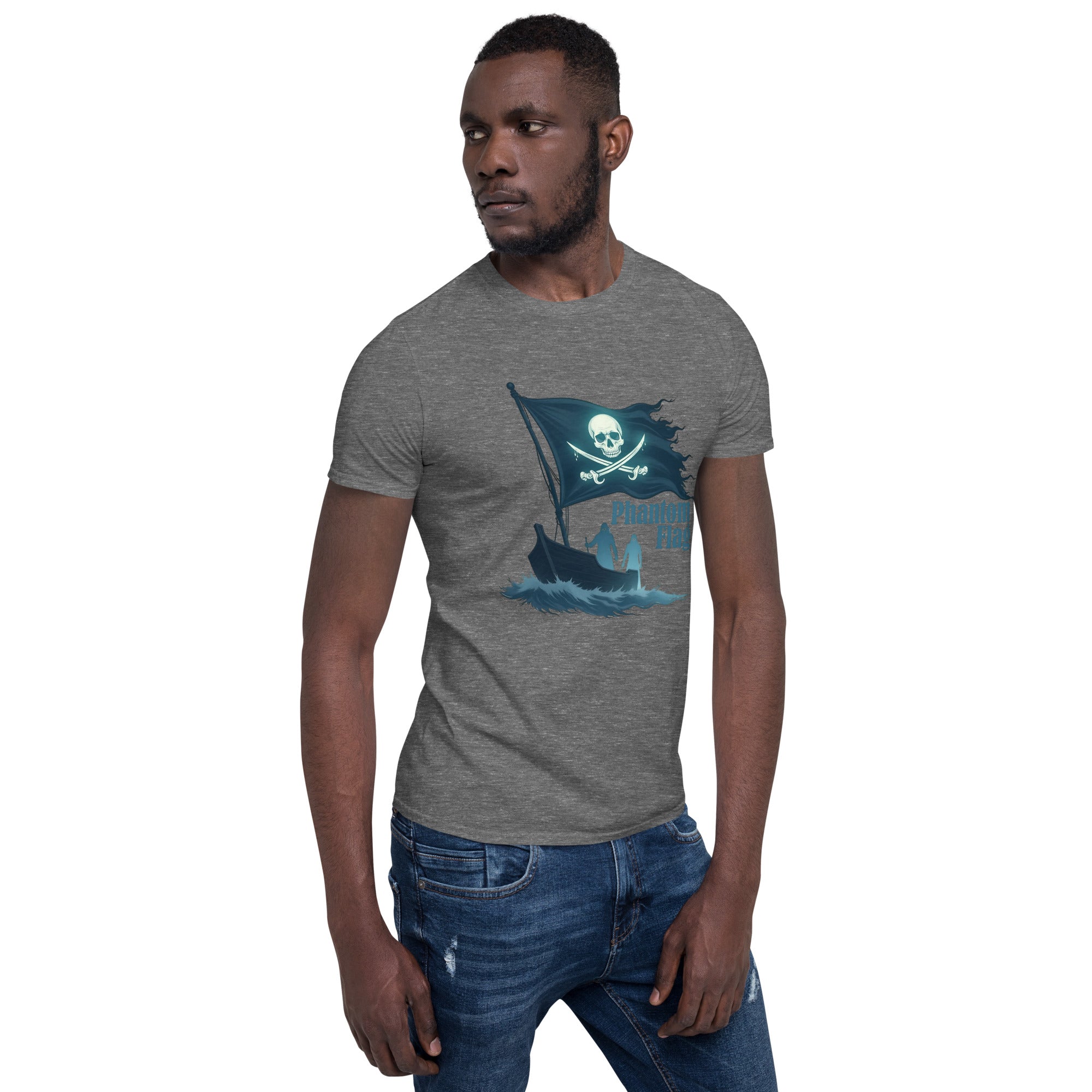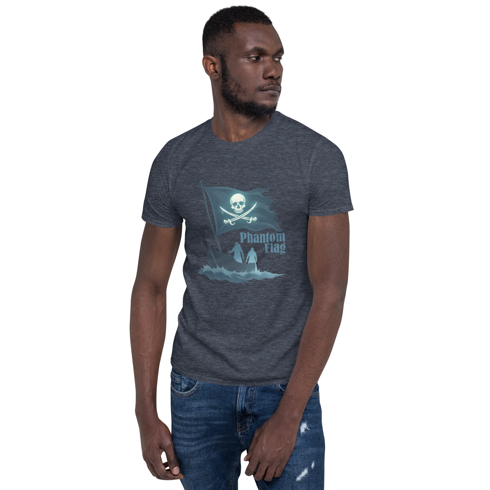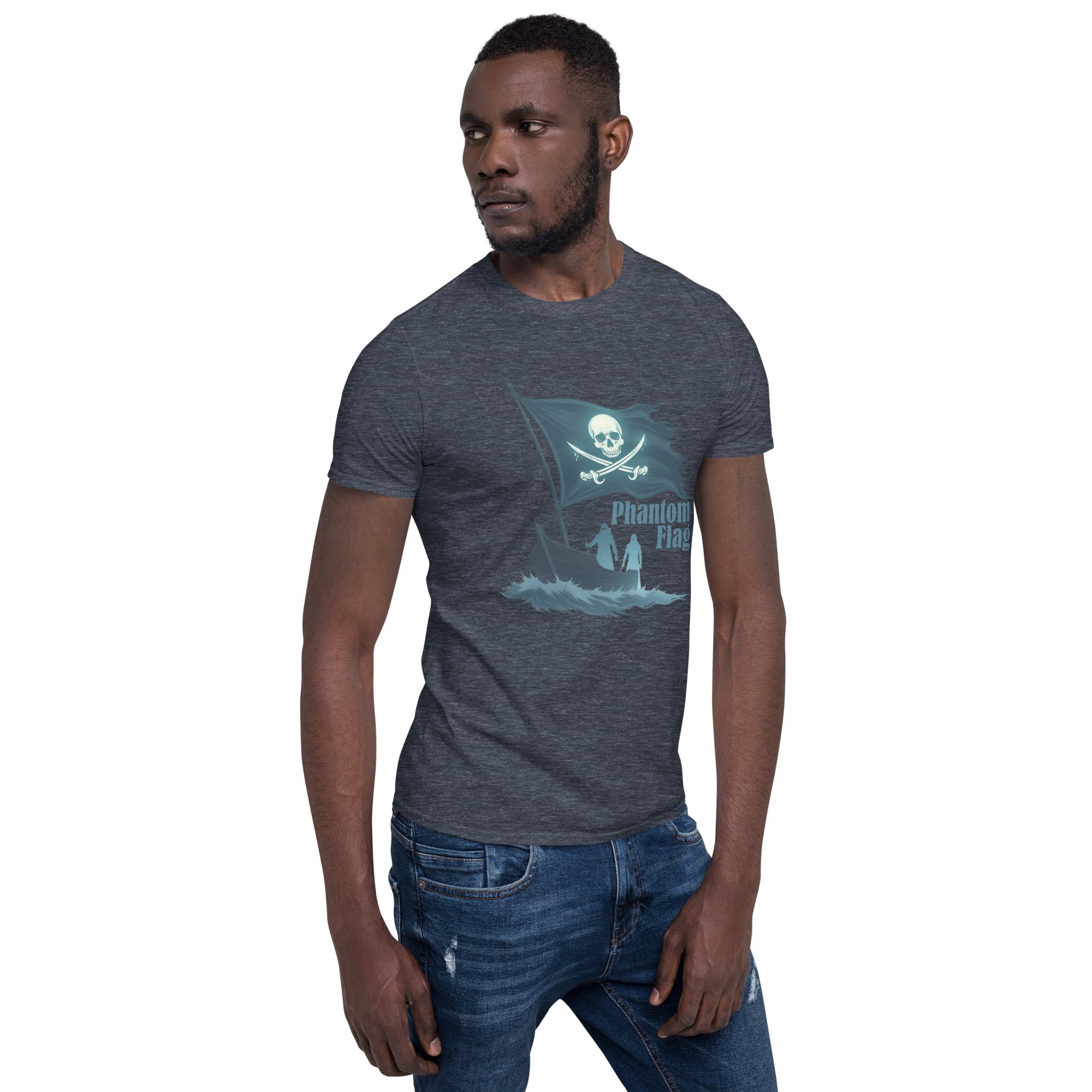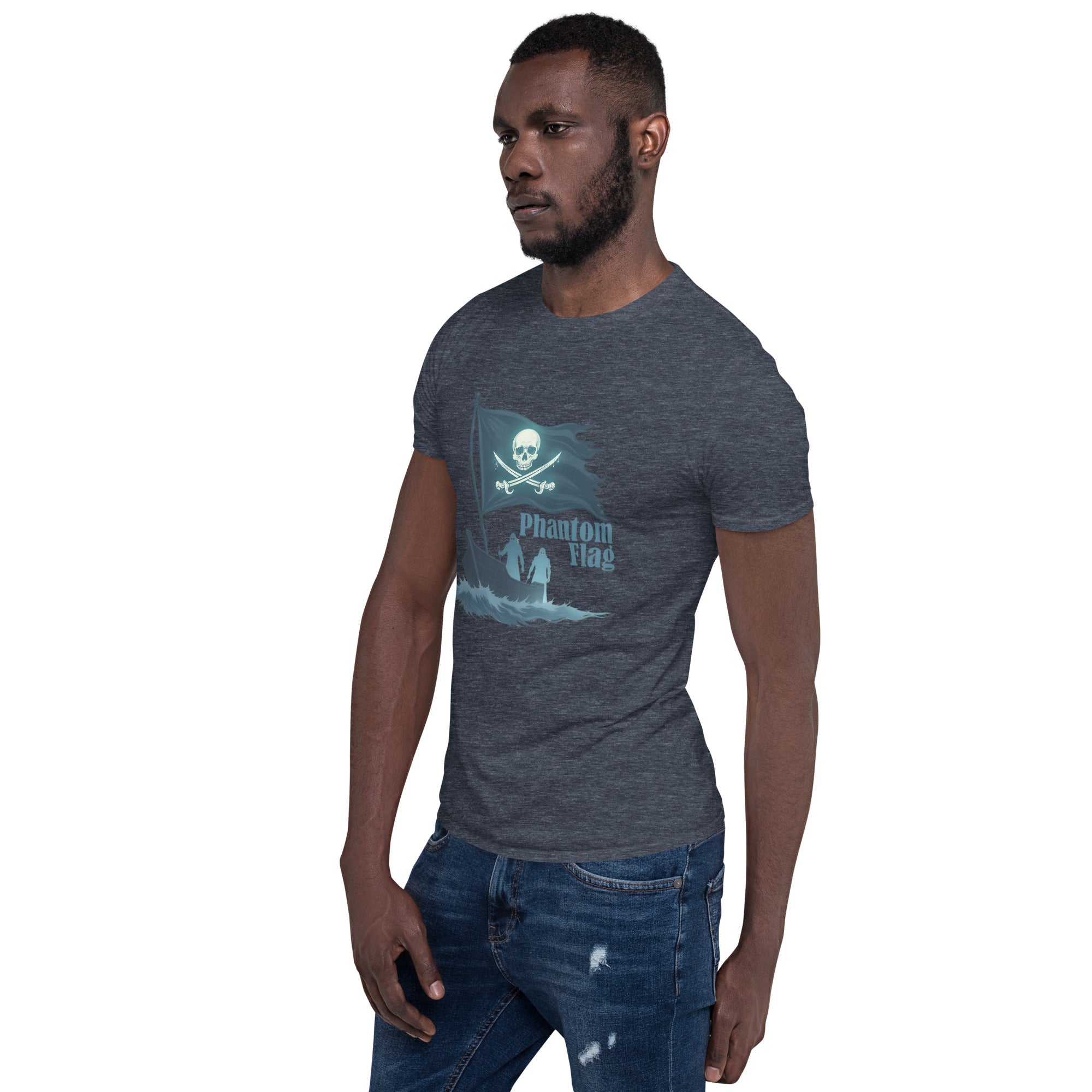 The Phantom Flag Men’s Short-Sleeve T-shirt is for those who live life on their own terms—shrouded in mystery, yet boldly present. Made from soft, breathable fabric, this shirt carries a design that’s as enigmatic as it is captivating, featuring a flag that isn’t just flown; it’s haunted.