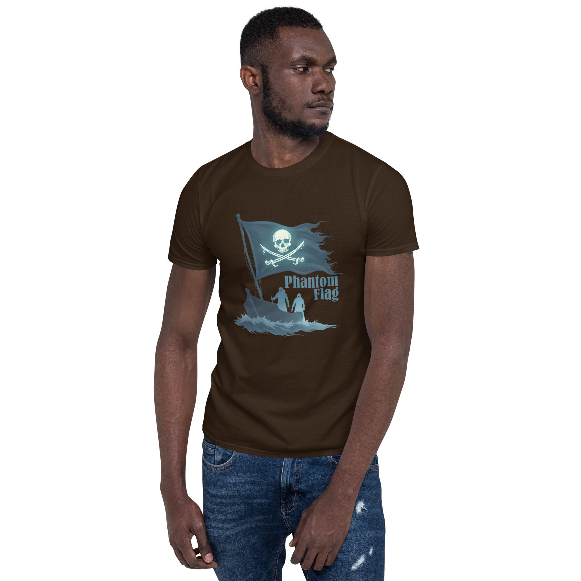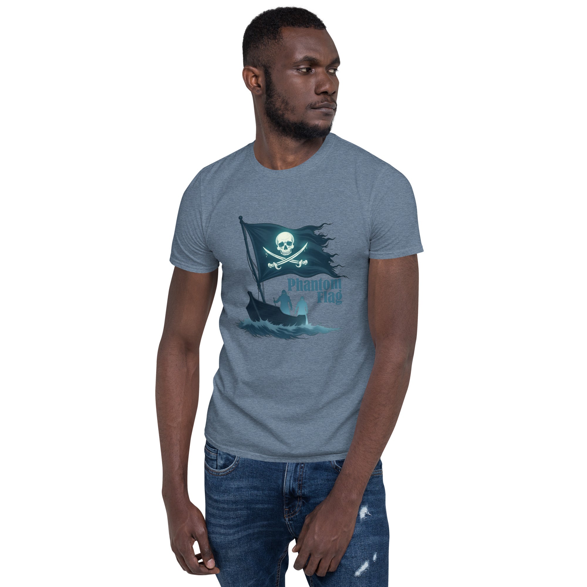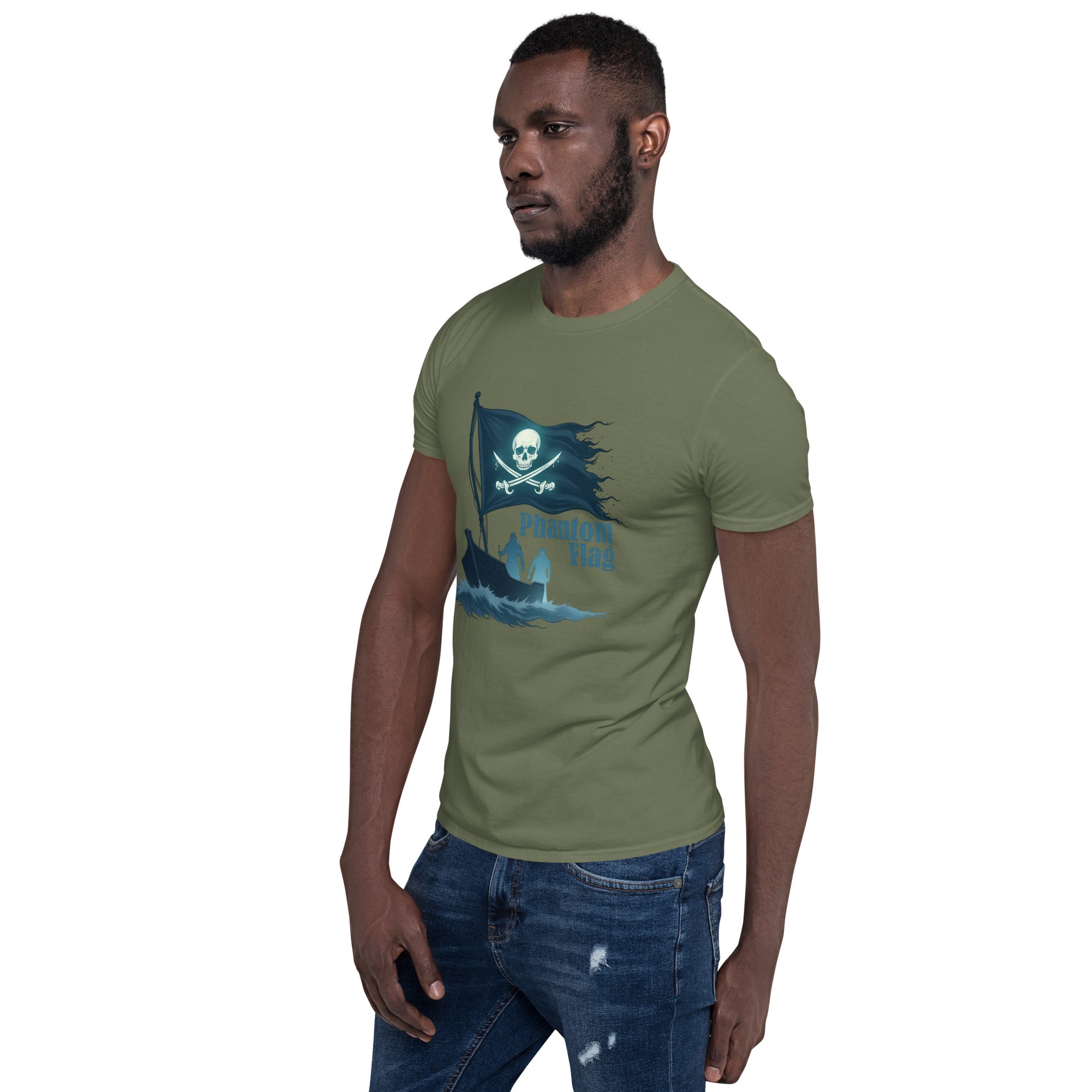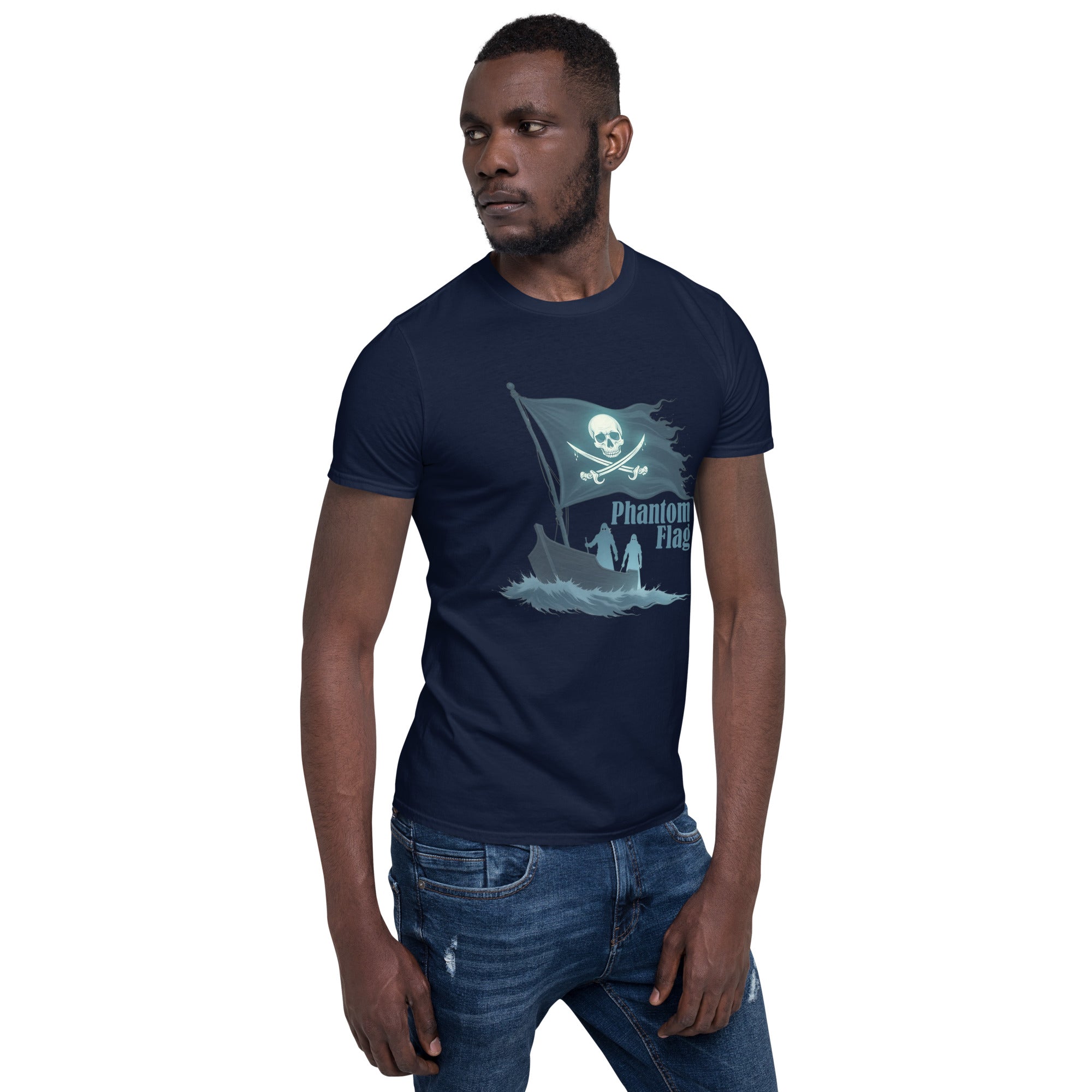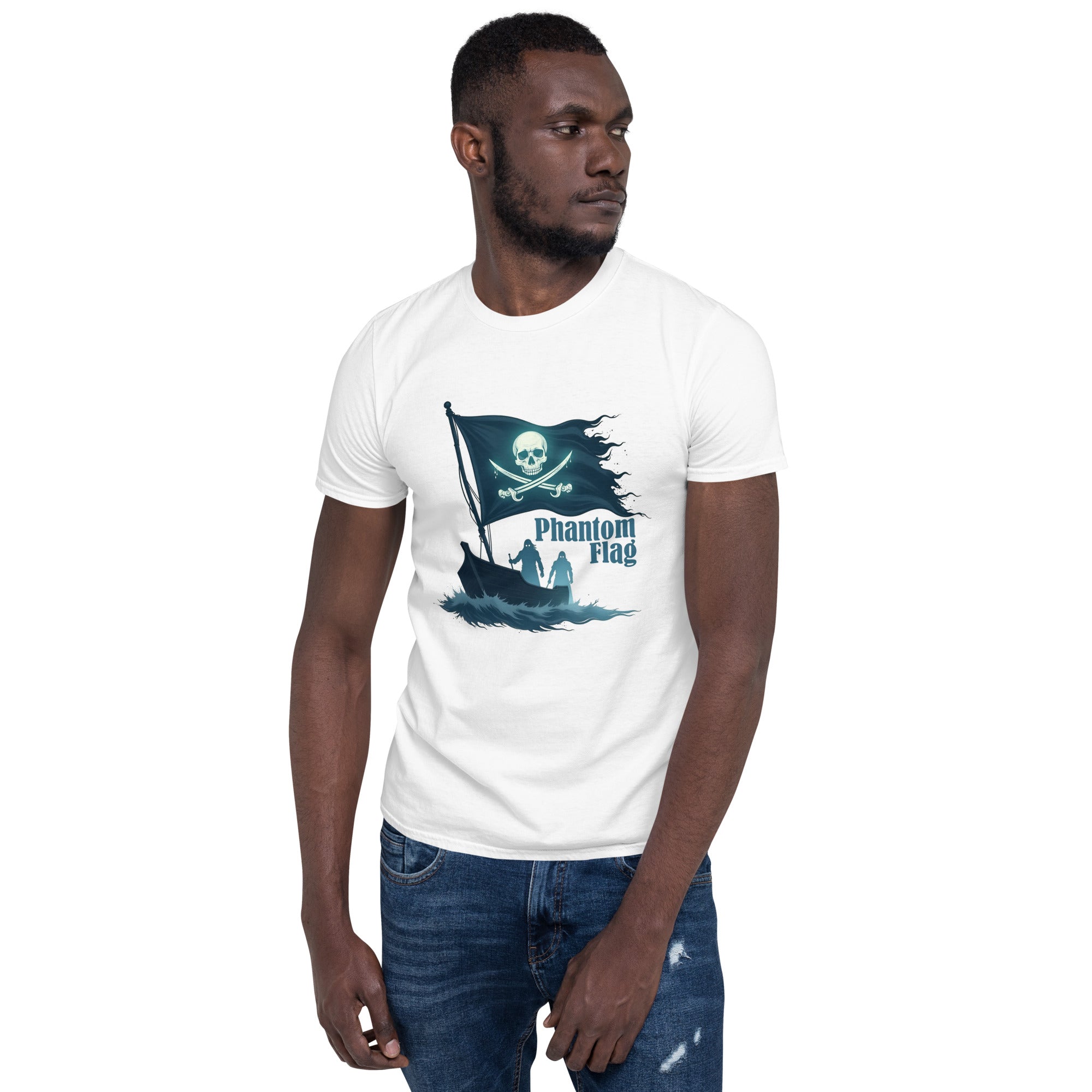 The Phantom Flag Men’s Short-Sleeve T-shirt is for those who live life on their own terms—shrouded in mystery, yet boldly present. Made from soft, breathable fabric, this shirt carries a design that’s as enigmatic as it is captivating, featuring a flag that isn’t just flown; it’s haunted.