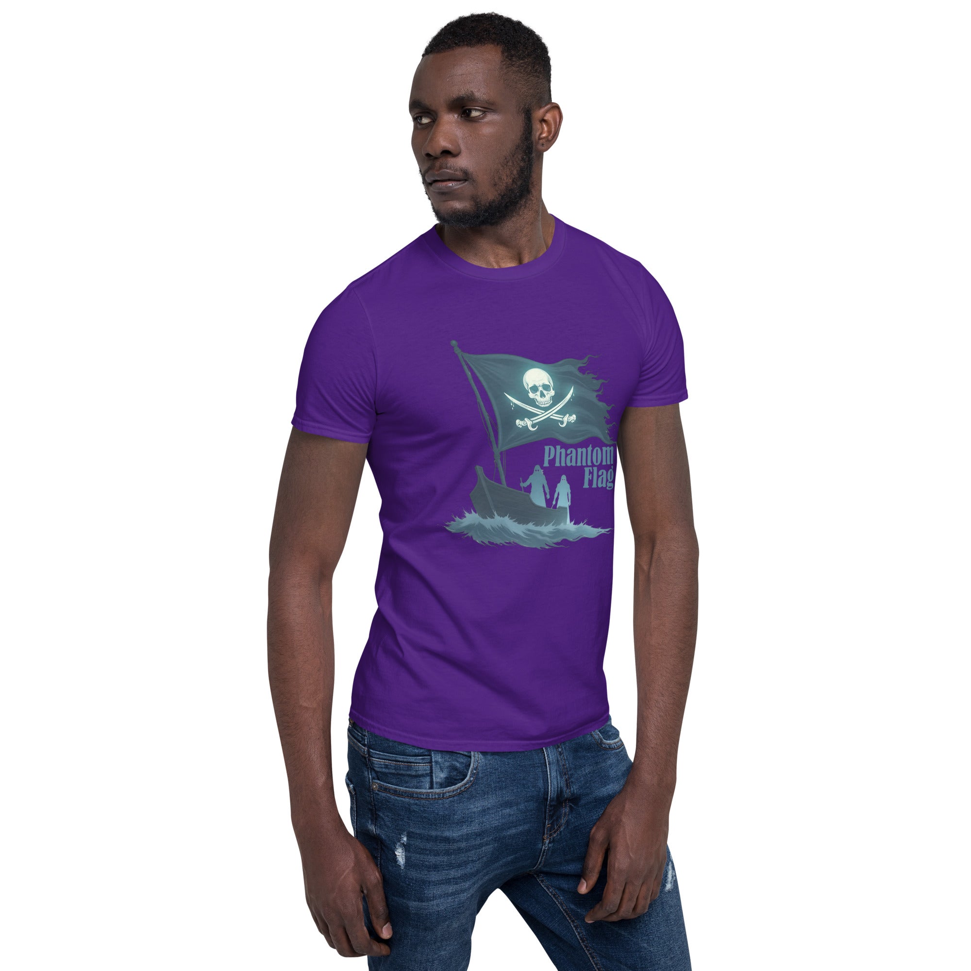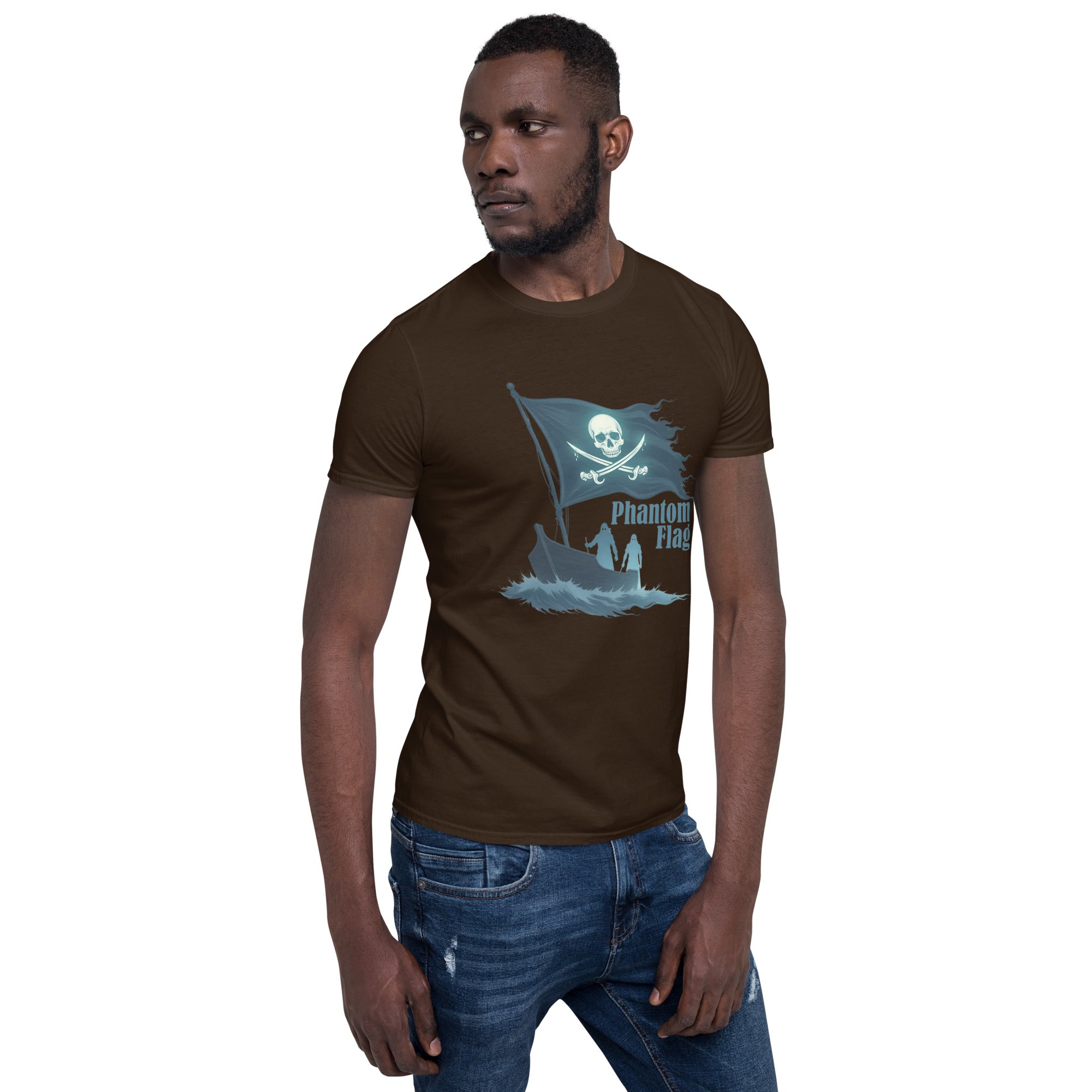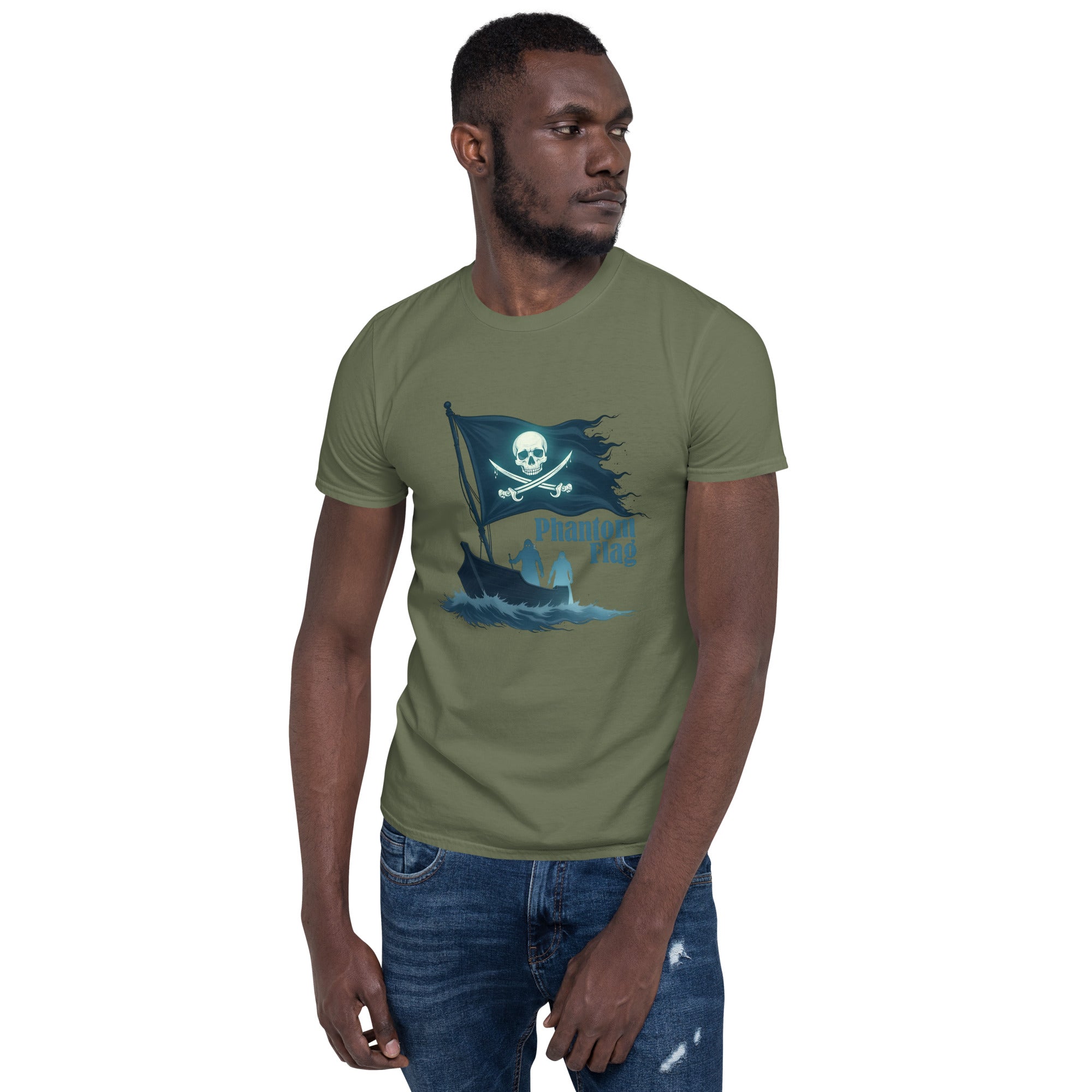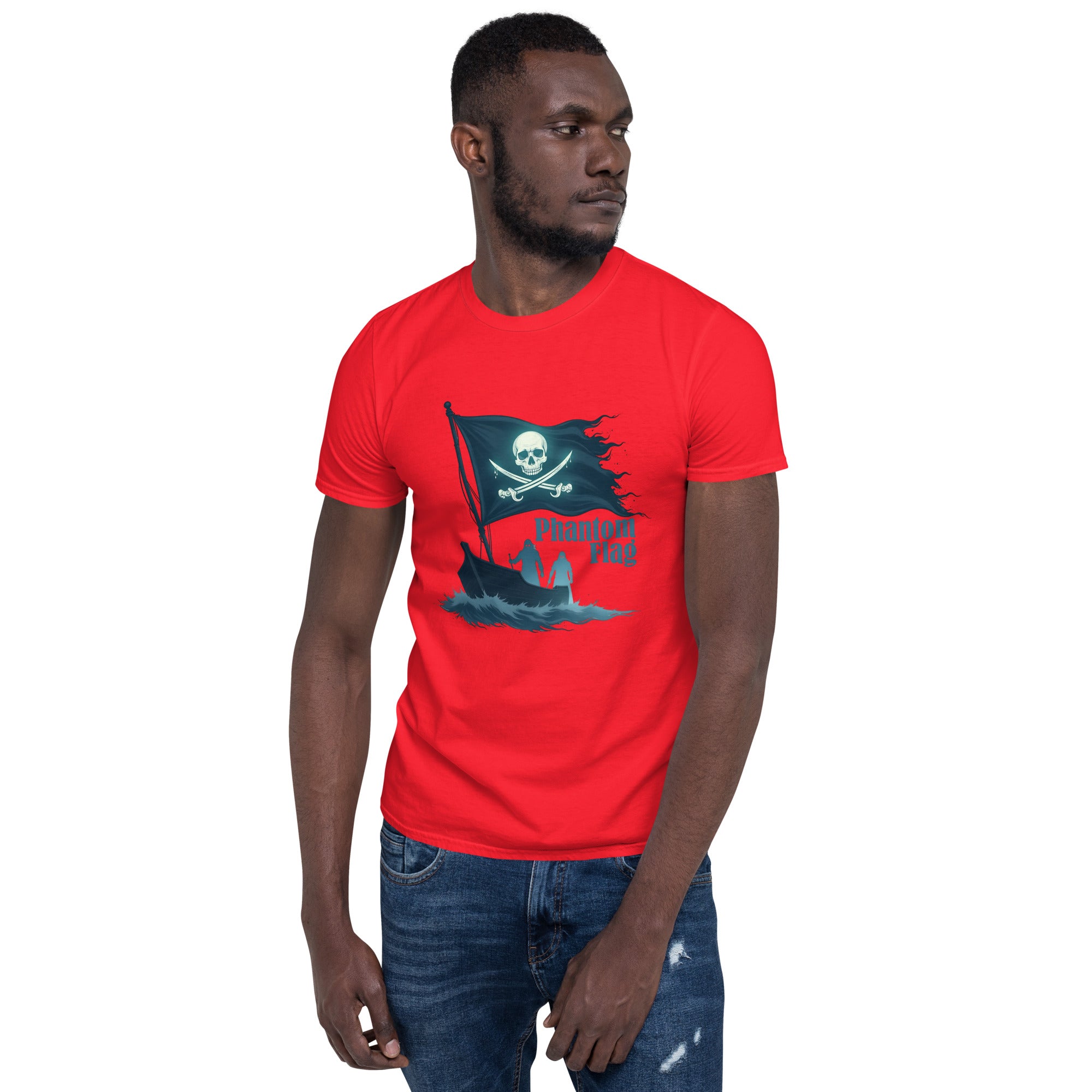 The Phantom Flag Men’s Short-Sleeve T-shirt is for those who live life on their own terms—shrouded in mystery, yet boldly present. Made from soft, breathable fabric, this shirt carries a design that’s as enigmatic as it is captivating, featuring a flag that isn’t just flown; it’s haunted.