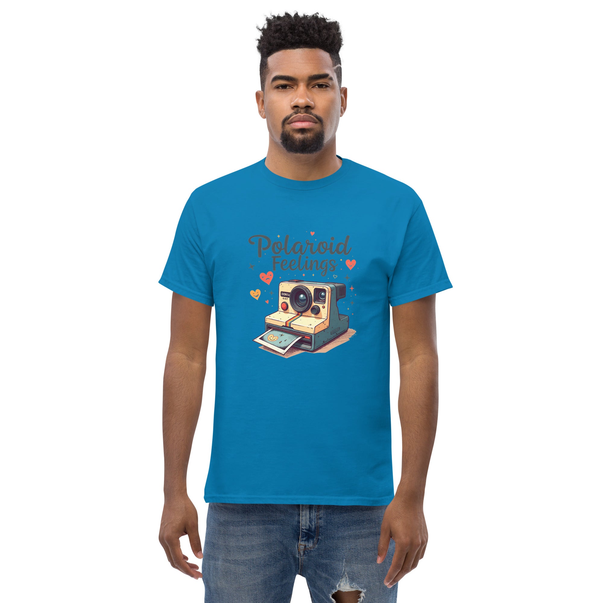 The Polaroid Feelings Unisex Classic Tee is for those who know that some memories are too special to let fade away. Crafted from soft, breathable fabric, this shirt channels the nostalgic charm of Polaroid pictures, freezing emotions in time for us to hold onto.