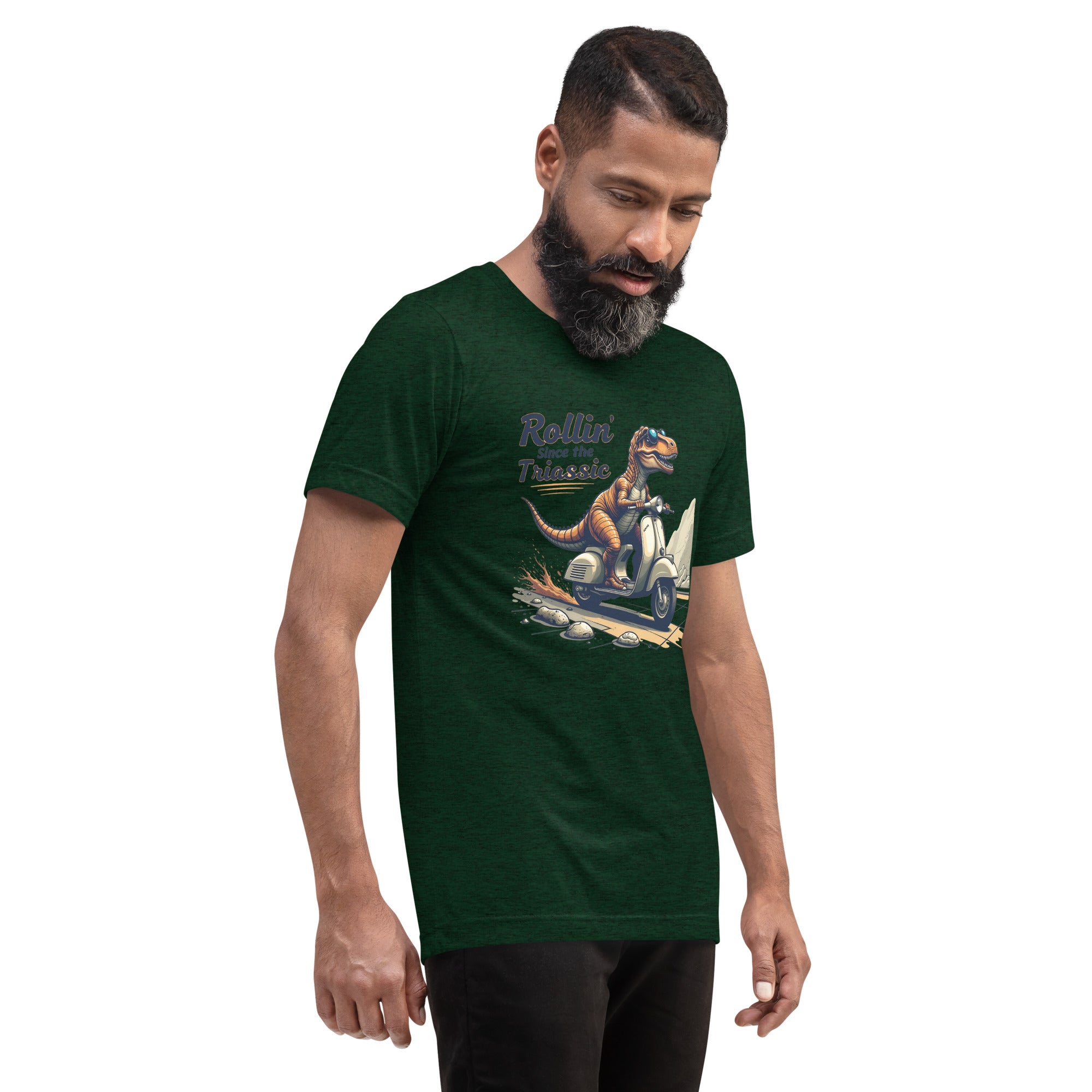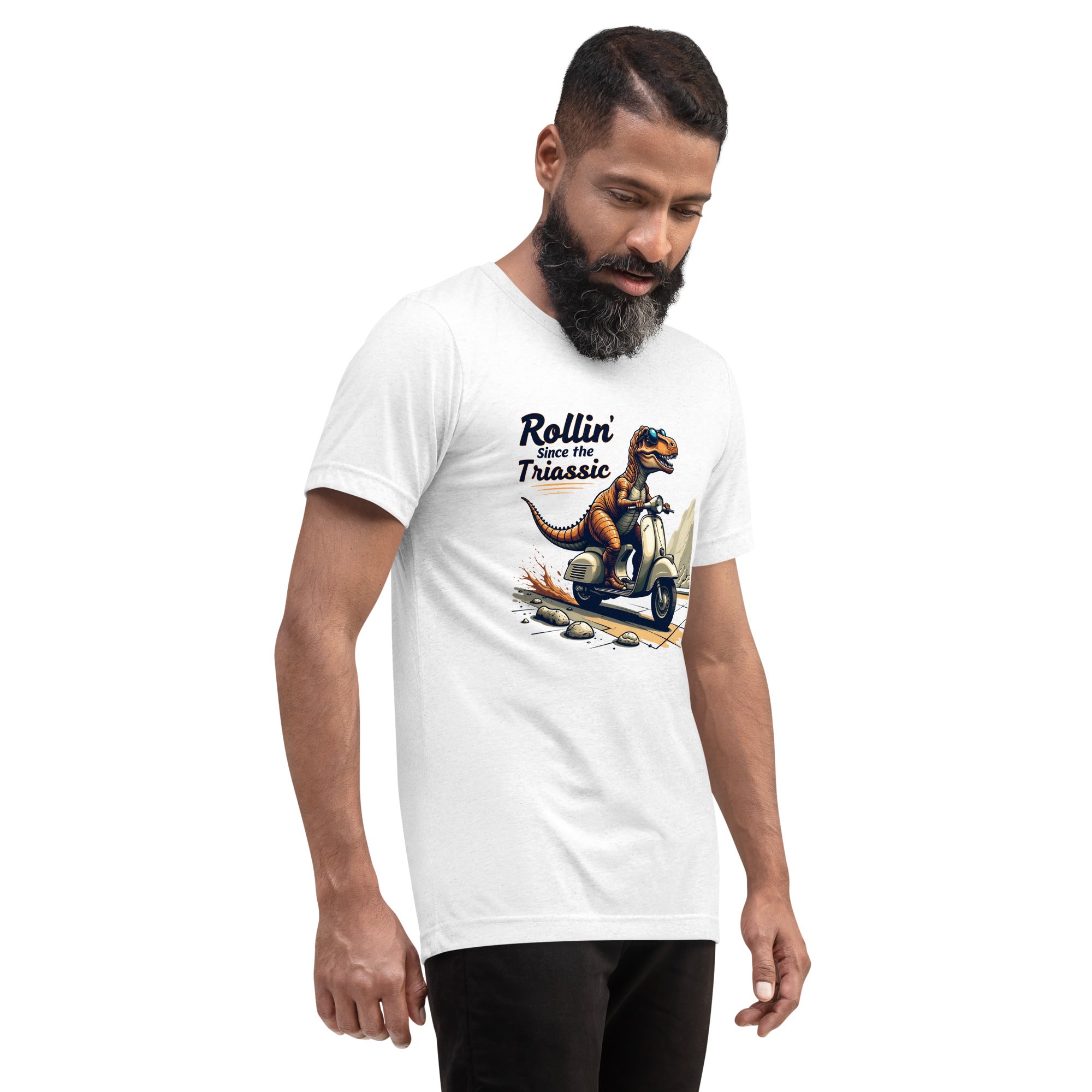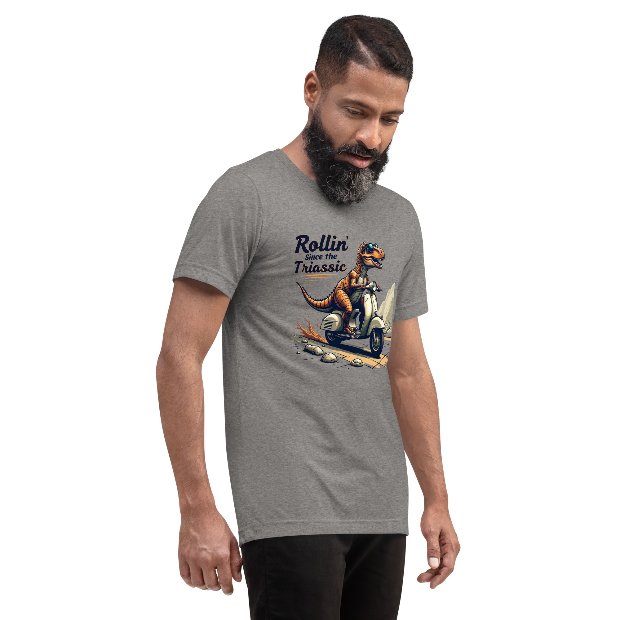 You’ve been around longer than most people think. The "ROLLIN' SINCE THE TRIASSIC" men’s short sleeve t-shirt is for the timeless ones—the ones who’ve been rolling with life since the very beginning. Whether you’re all about vintage vibes, have an old-school soul, or just love a little prehistoric flair, this shirt is your perfect match.