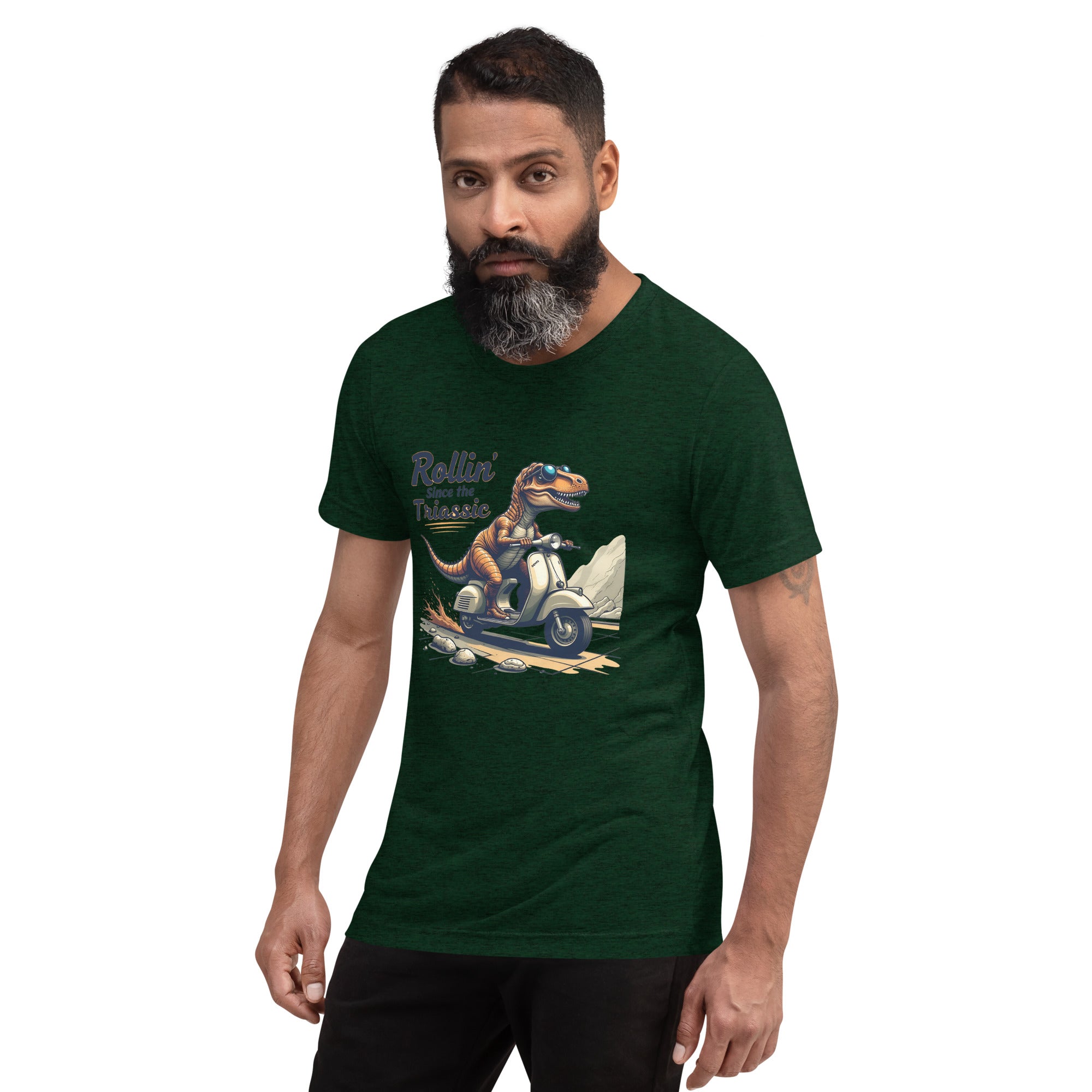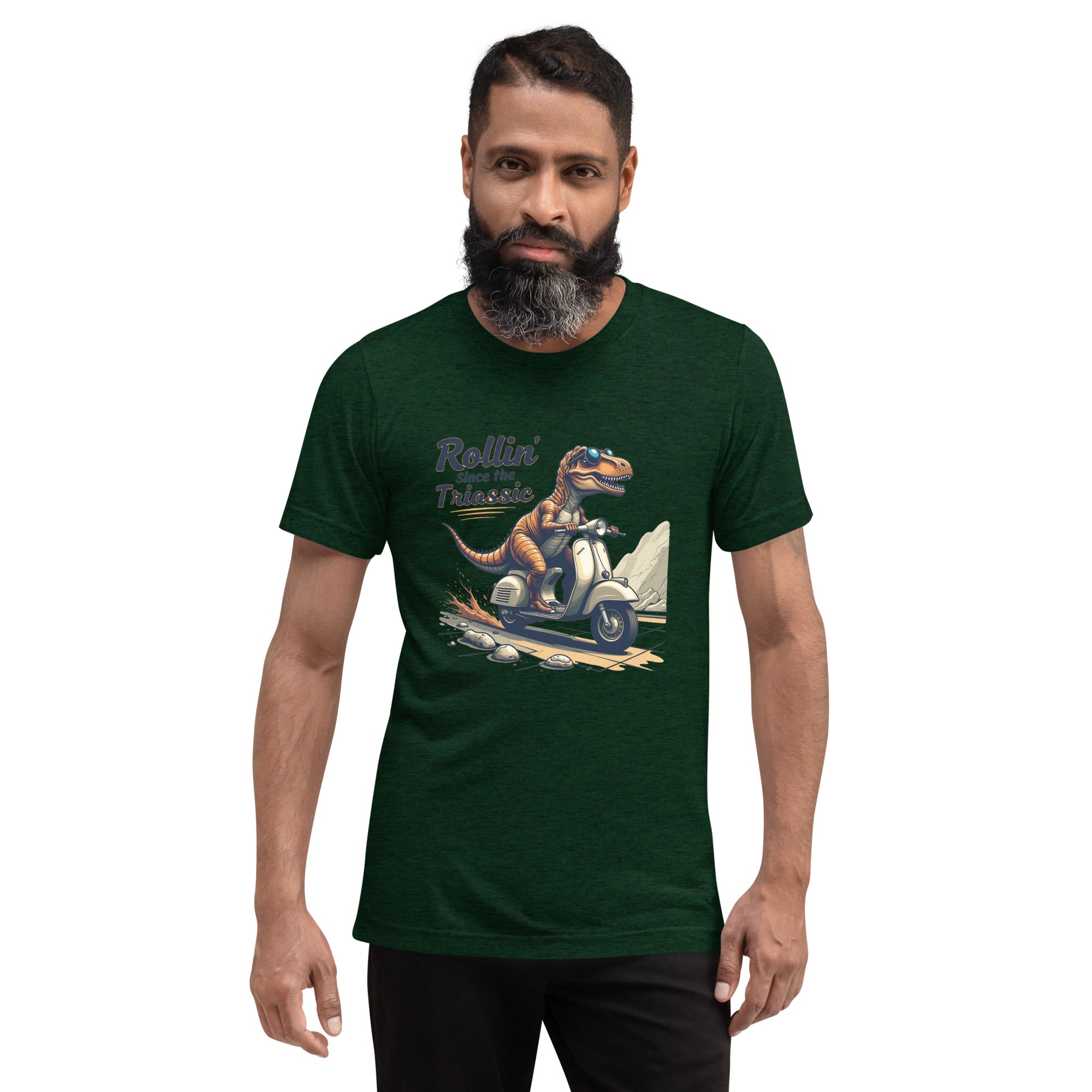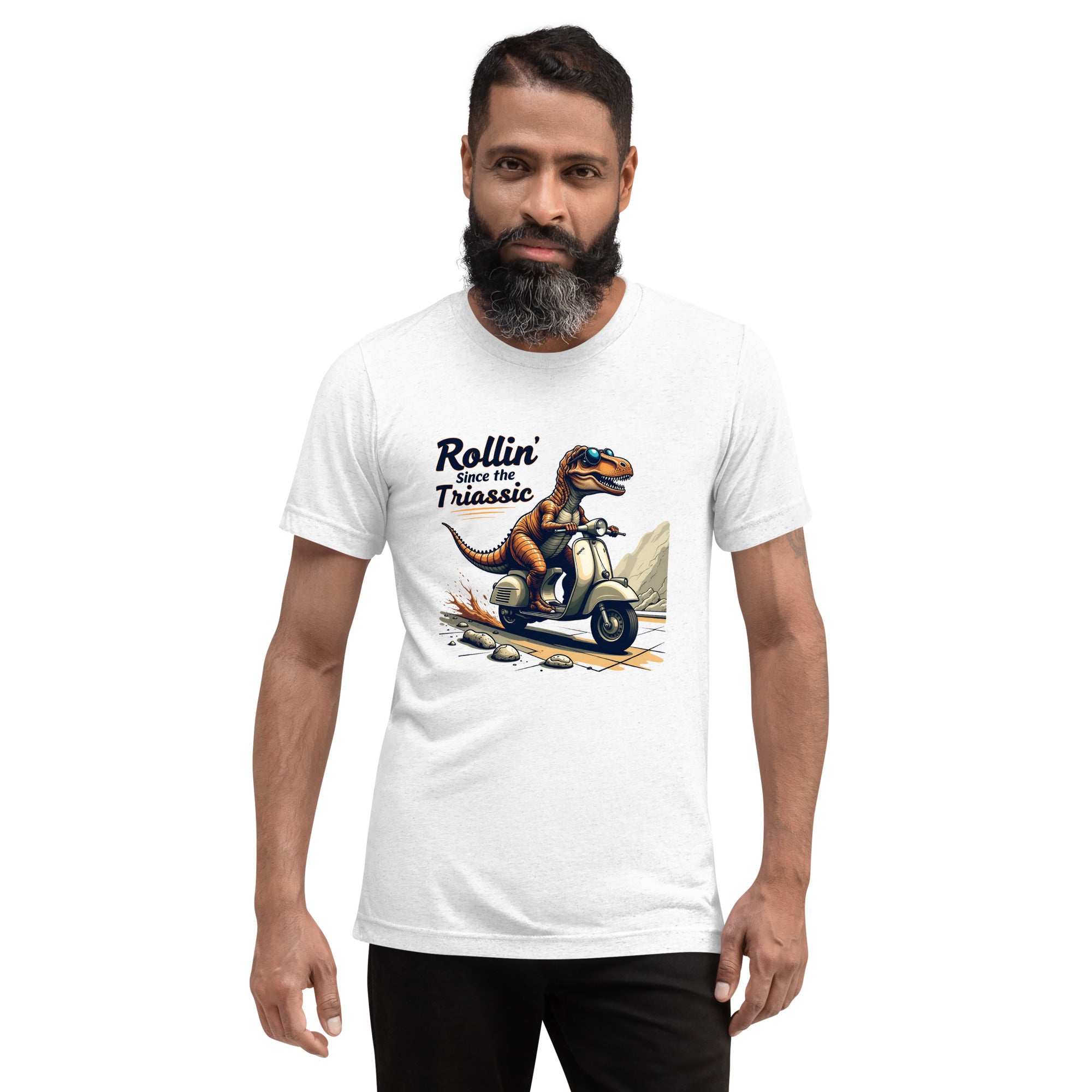You’ve been around longer than most people think. The "ROLLIN' SINCE THE TRIASSIC" men’s short sleeve t-shirt is for the timeless ones—the ones who’ve been rolling with life since the very beginning. Whether you’re all about vintage vibes, have an old-school soul, or just love a little prehistoric flair, this shirt is your perfect match.