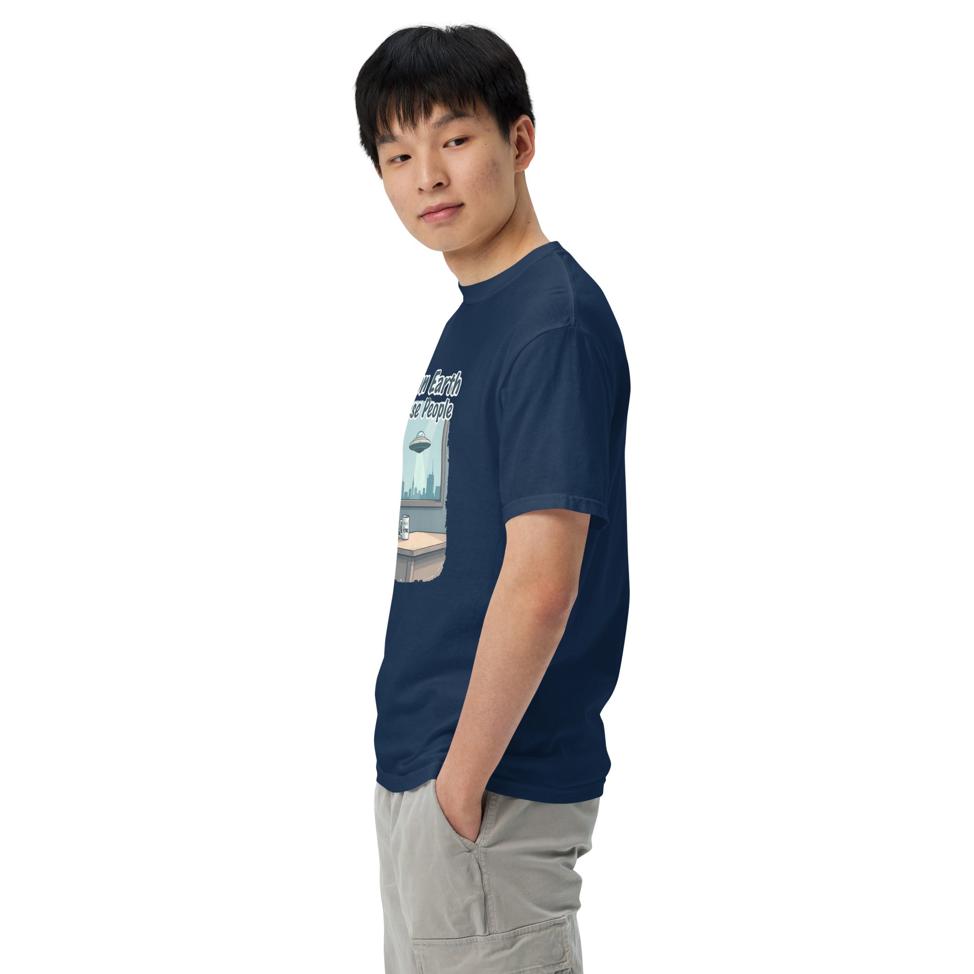Stuck on Earth with these people? Yeah, we feel you. The "STUCK ON EARTH WITH THESE PEOPLE" men’s garment-dyed heavyweight t-shirt is your ticket to showing the world that, while you may be physically here, your patience might be somewhere far away. It’s the shirt that lets everyone know you’re just waiting for a better ride out of this place—and the company? Well, let’s just say they could use a little improvement.