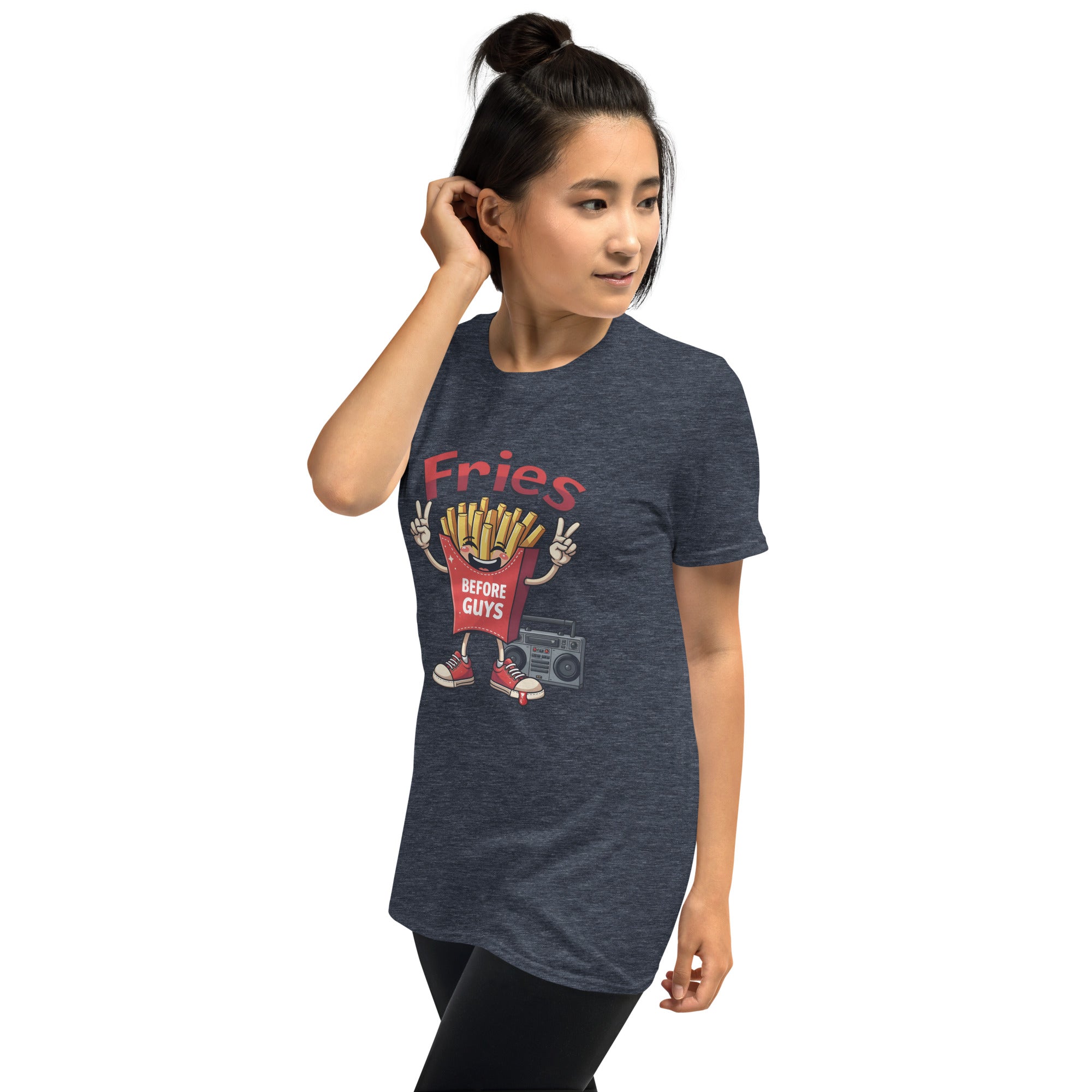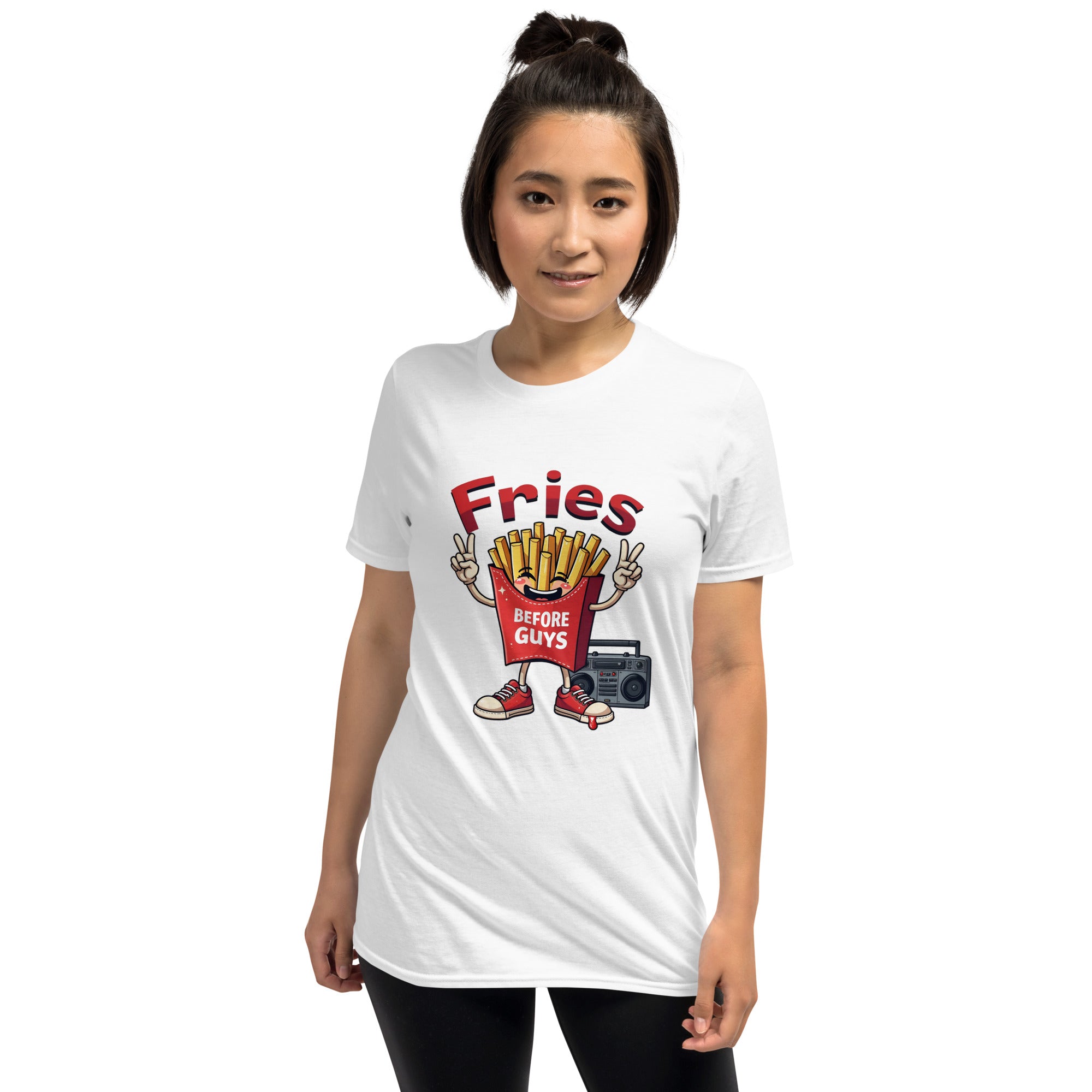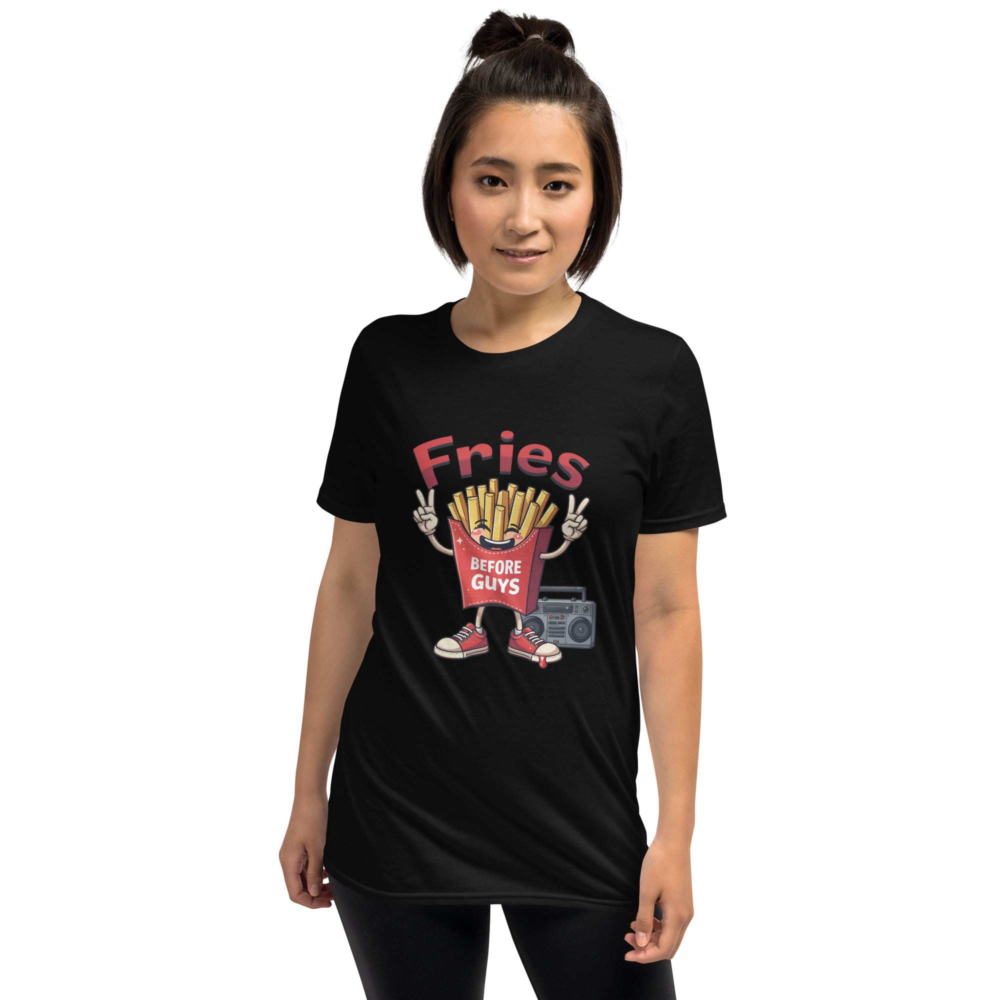 Let’s face it—sometimes, the only love you need is crispy, golden fries. For those moments when you’re all about that snack life and not about the drama, this "Fries Before Guys" Women's T-shirt has got you covered!