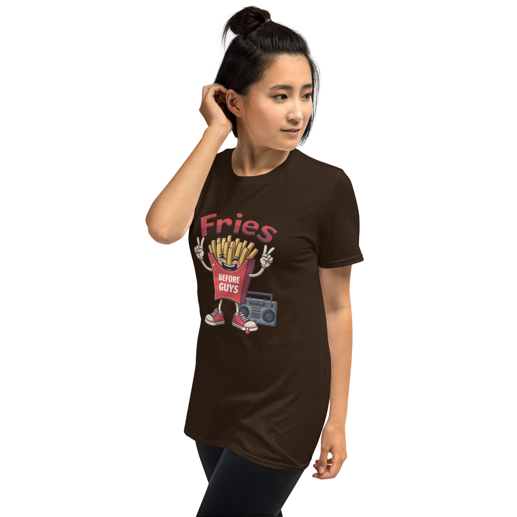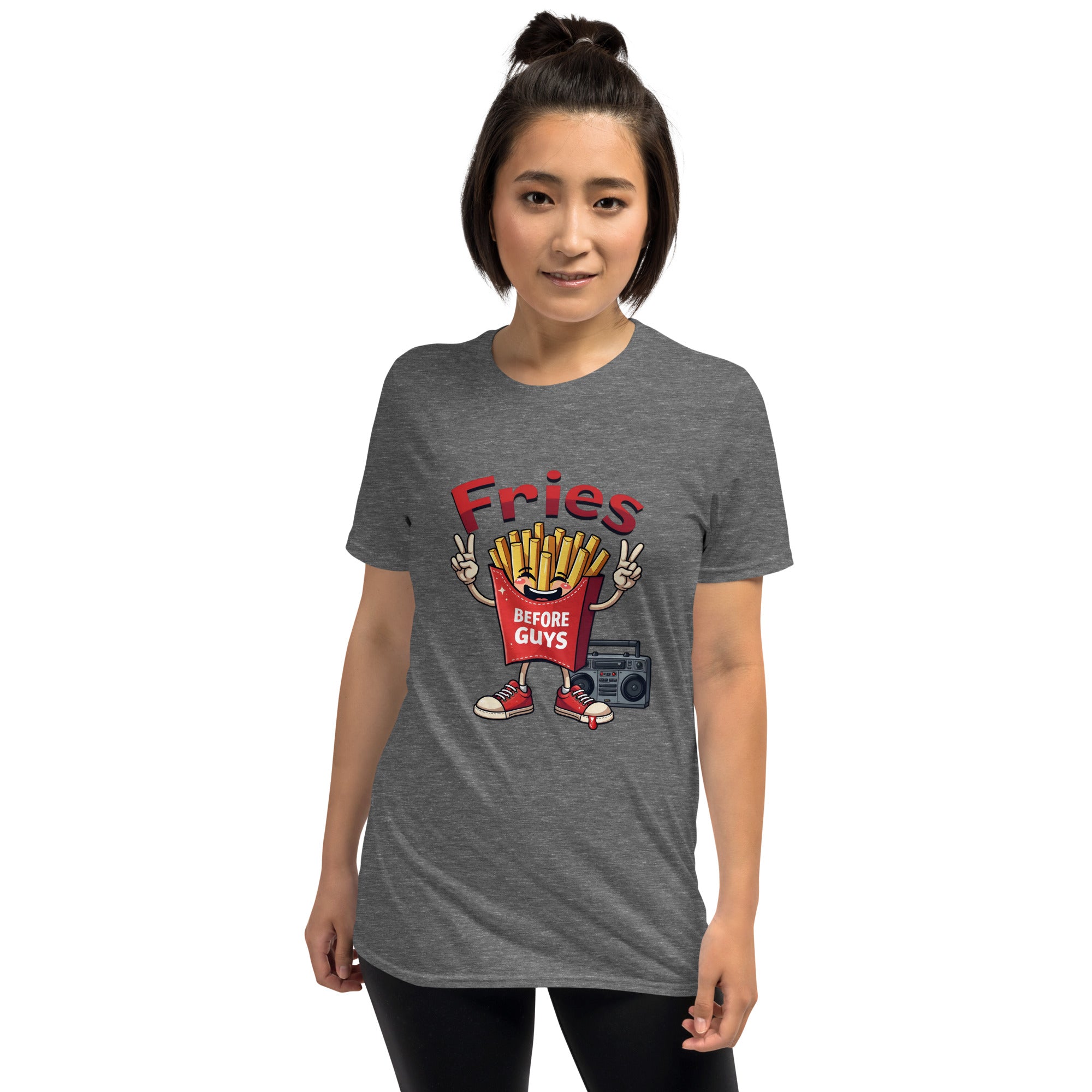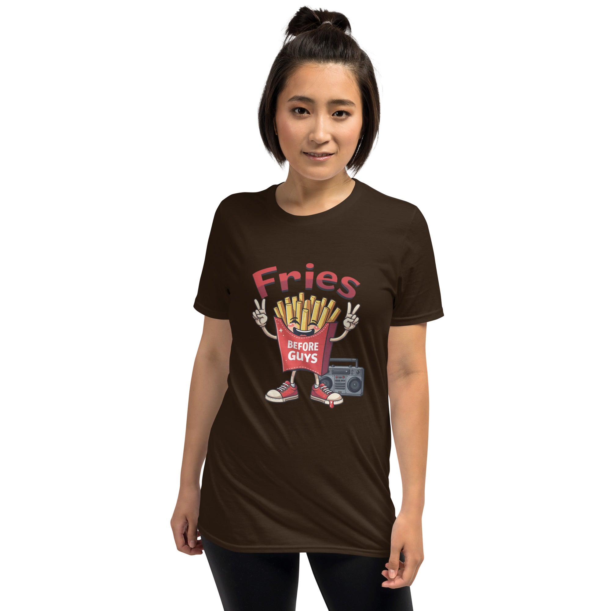Let’s face it—sometimes, the only love you need is crispy, golden fries. For those moments when you’re all about that snack life and not about the drama, this "Fries Before Guys" Women's T-shirt has got you covered!