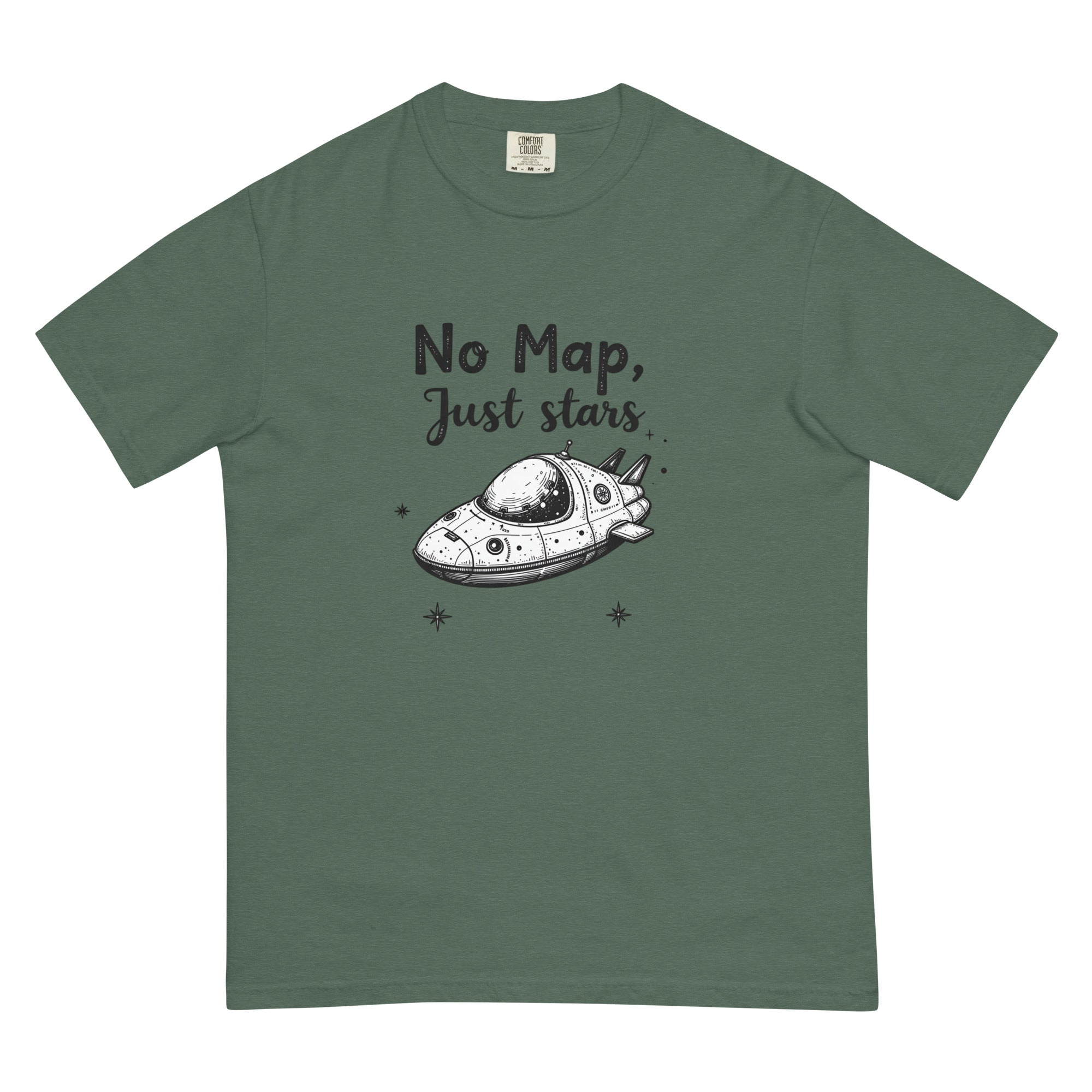 The No Map, Just Stars Garment-Dyed Heavyweight T-shirt is for the free spirit, the one who follows the call of the unknown without the need for direction. Crafted from heavyweight, garment-dyed fabric, this shirt symbolizes the courage to embrace the journey, guided only by the stars and your instincts.