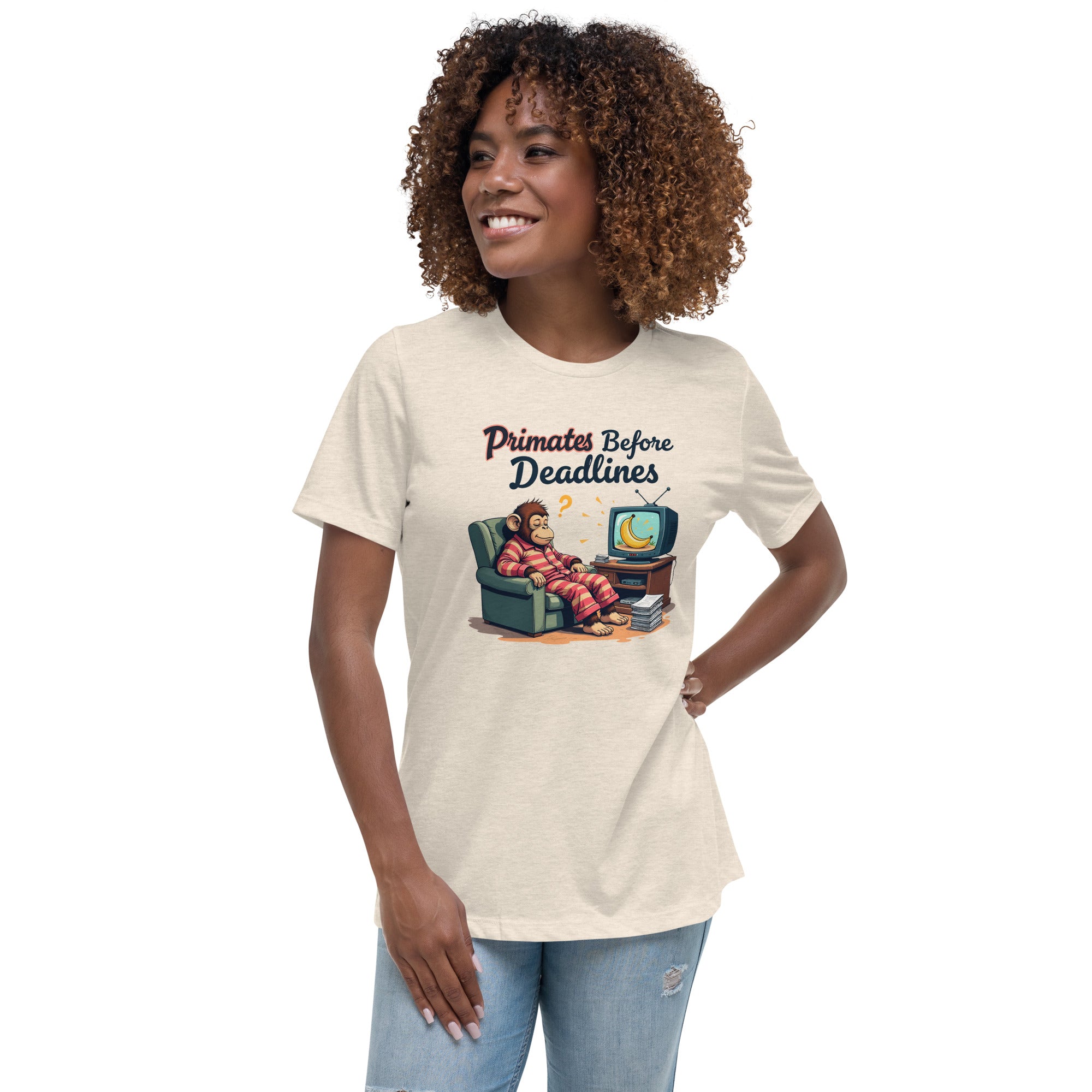 PRIMATES BEFORE DEADLINES Women's Relaxed T-Shirt