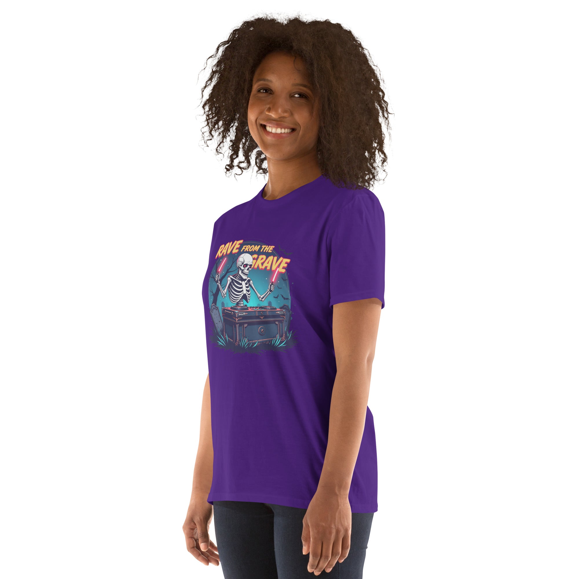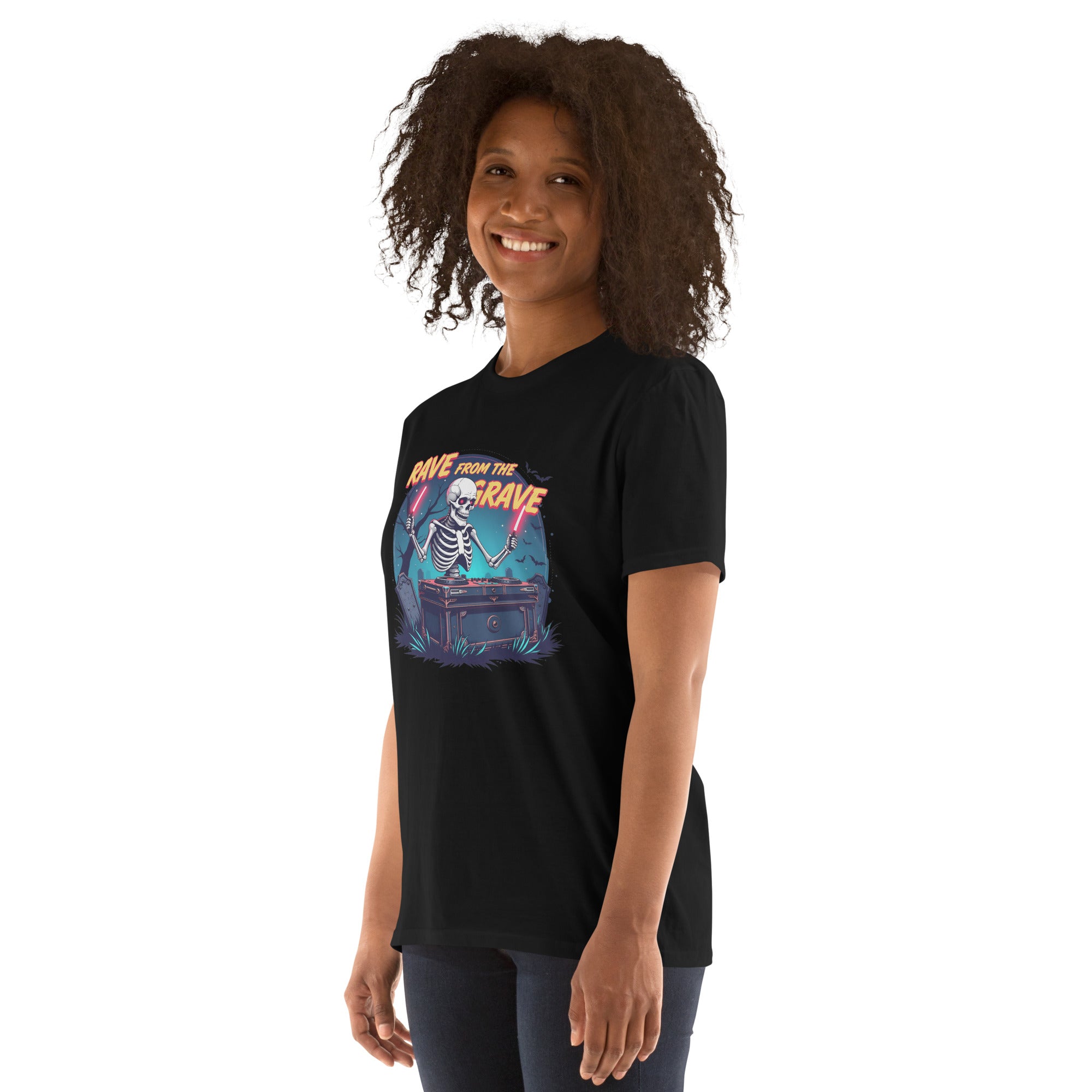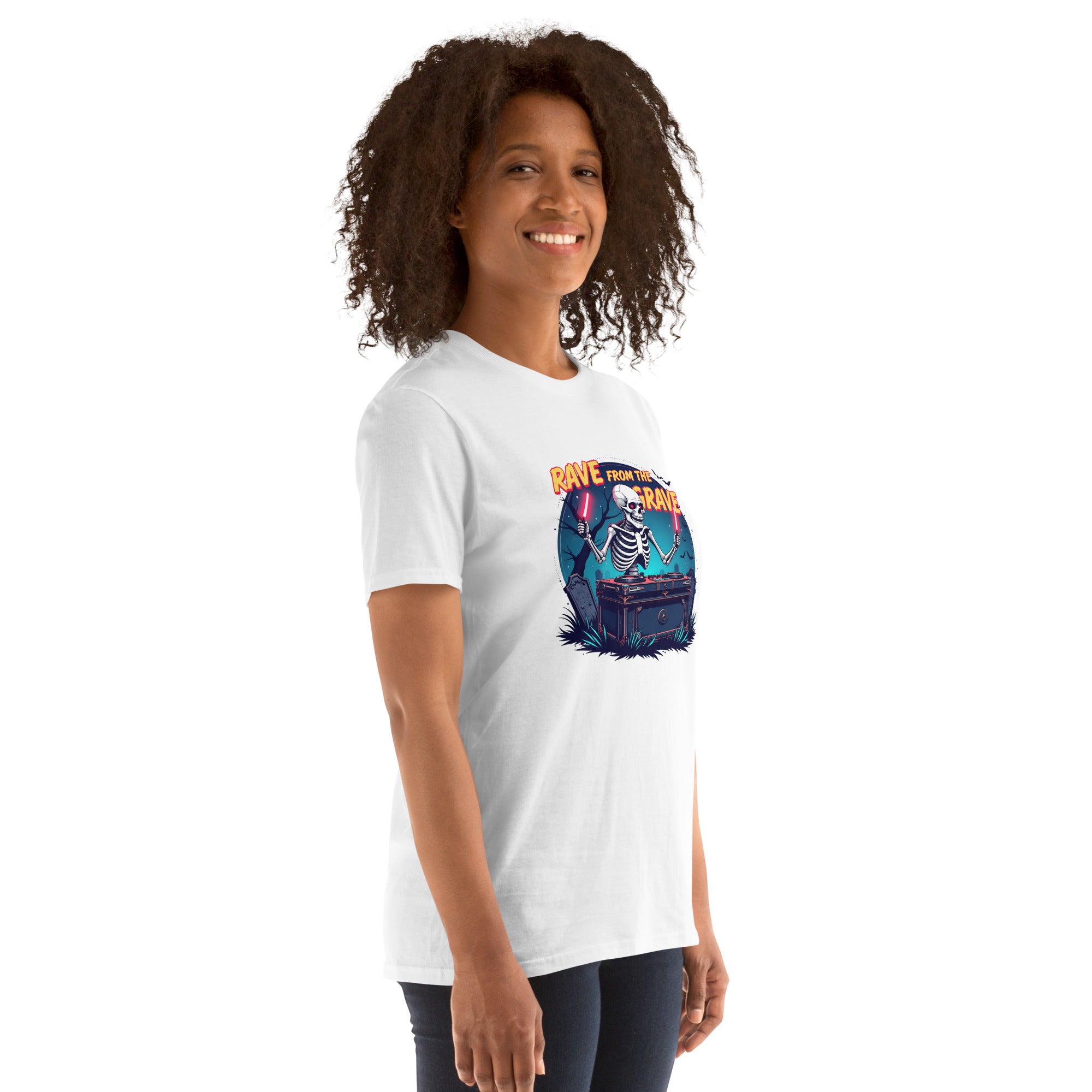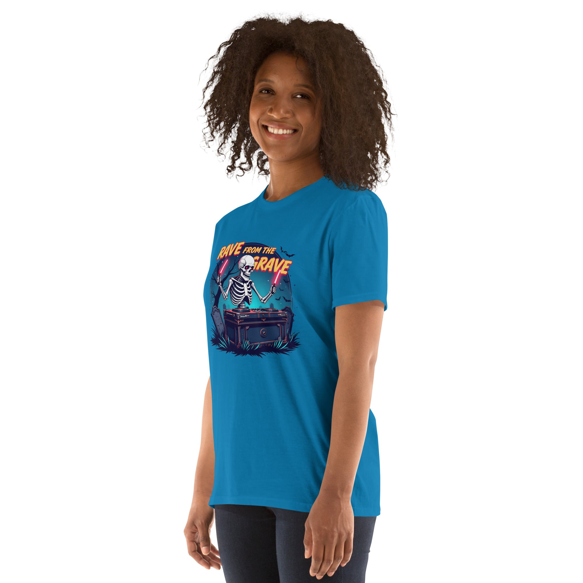 Who says the undead can't dance? This tee screams louder than a zombie DJ dropping a bassline in a crypt.