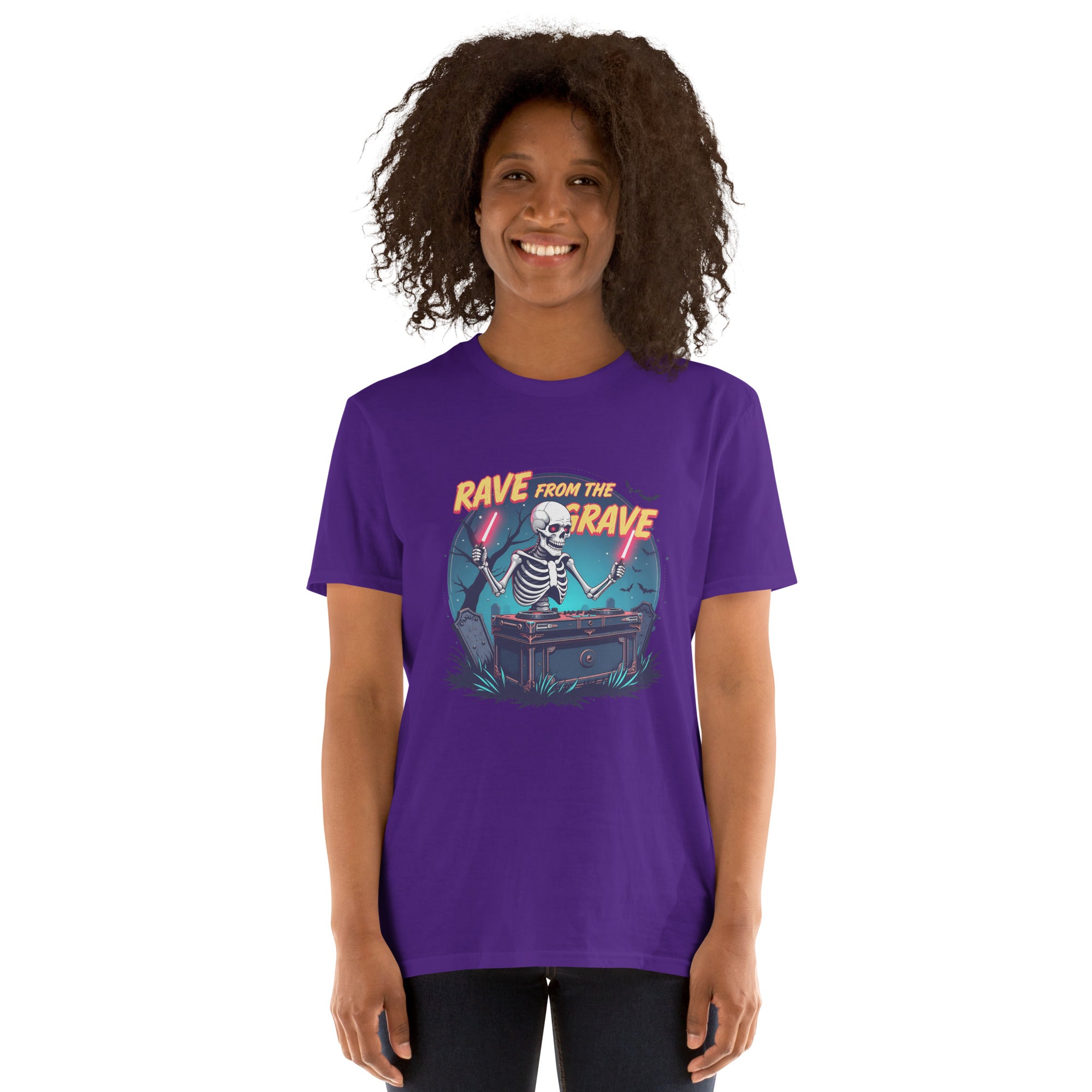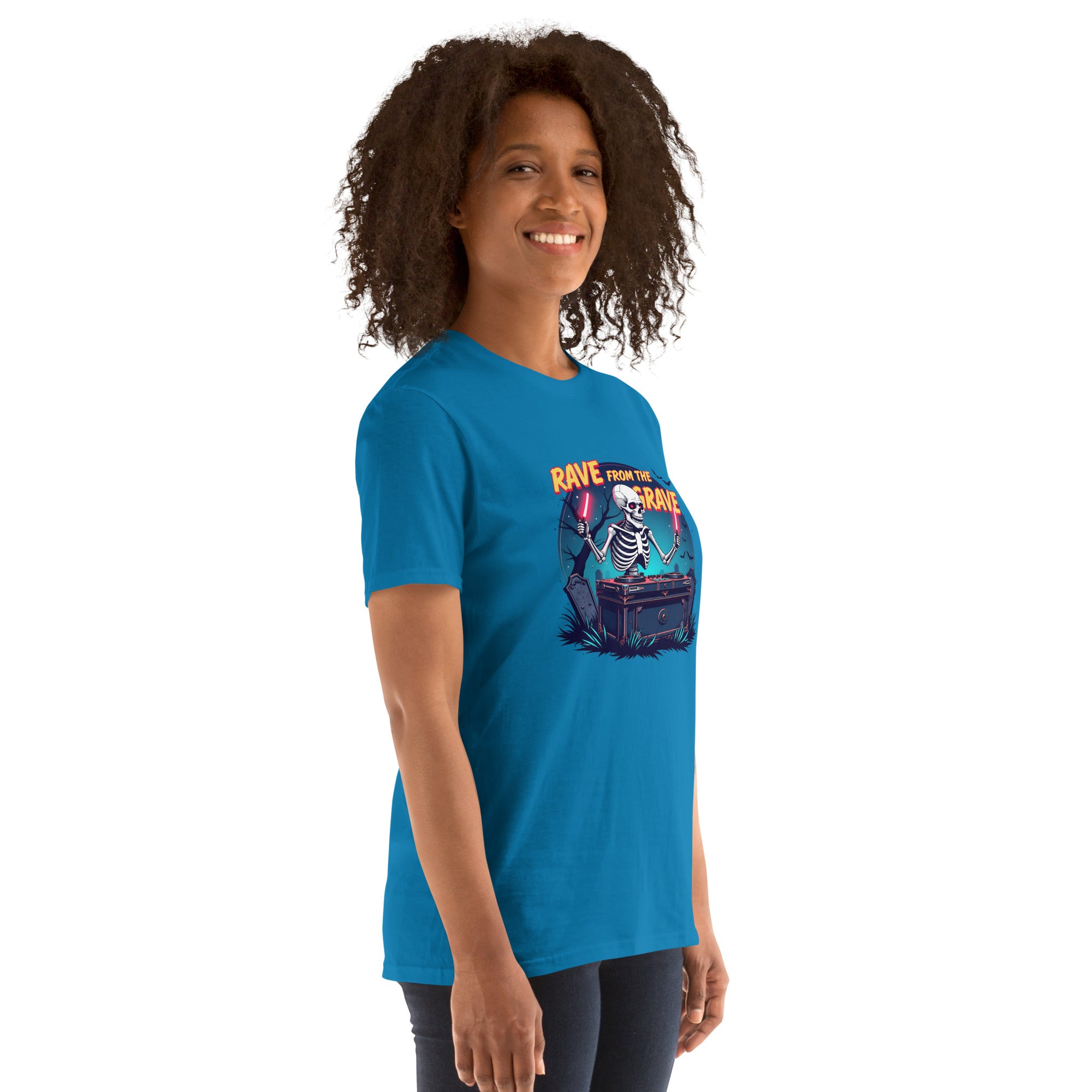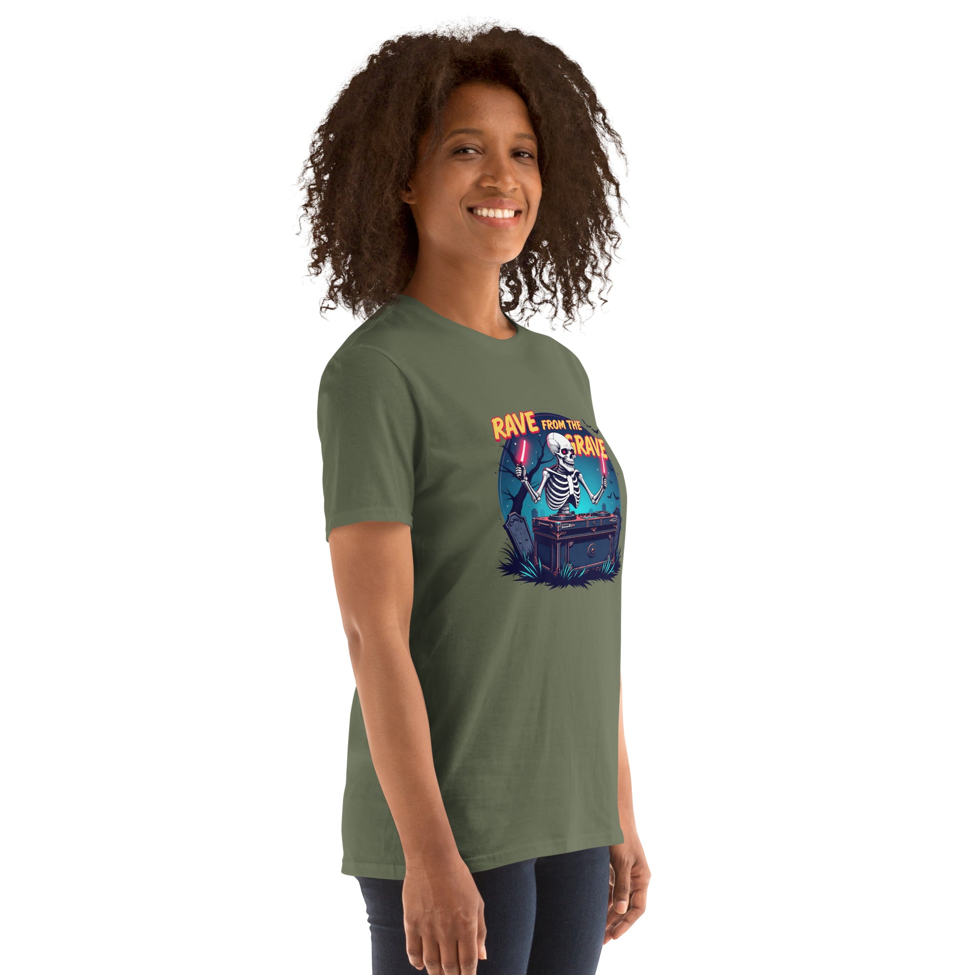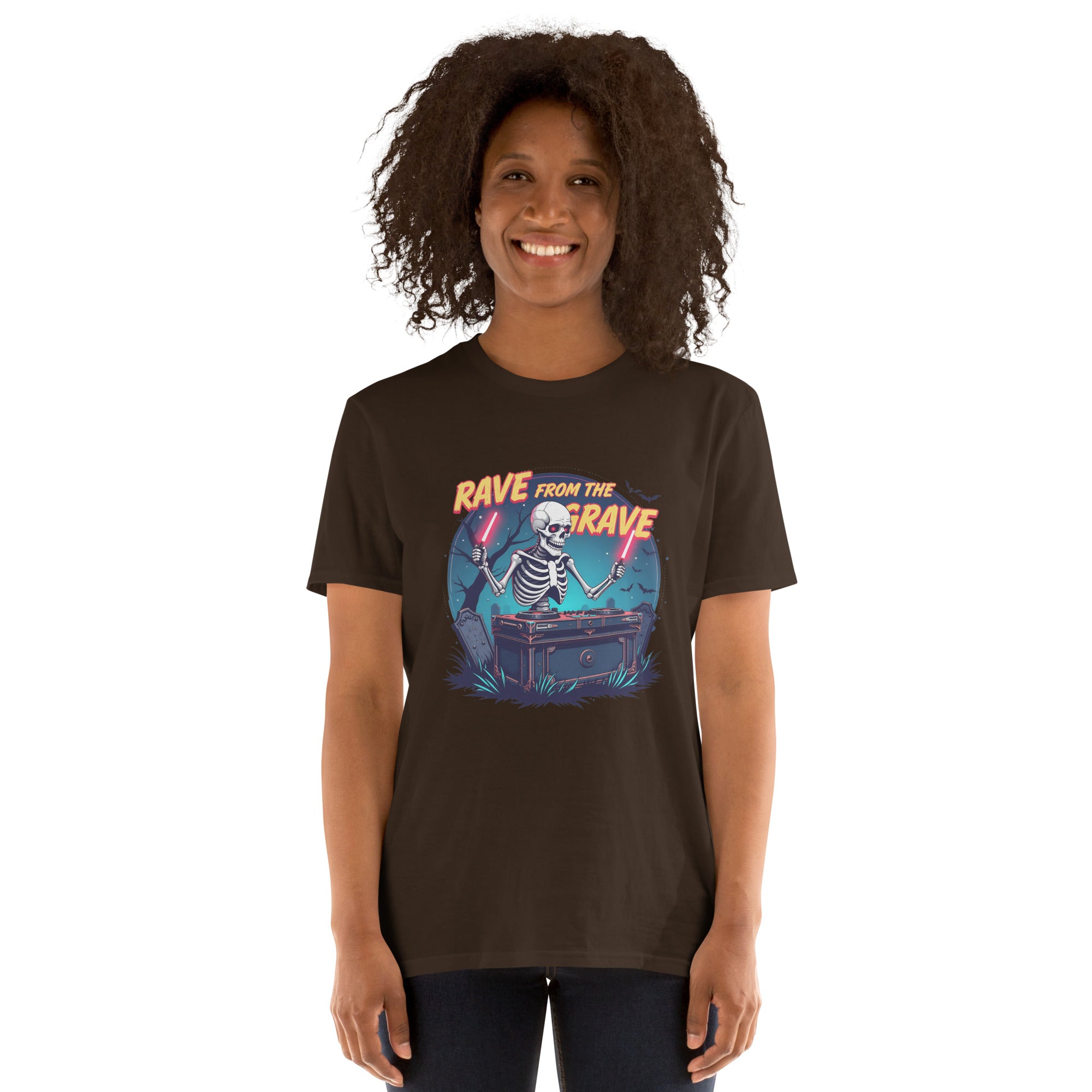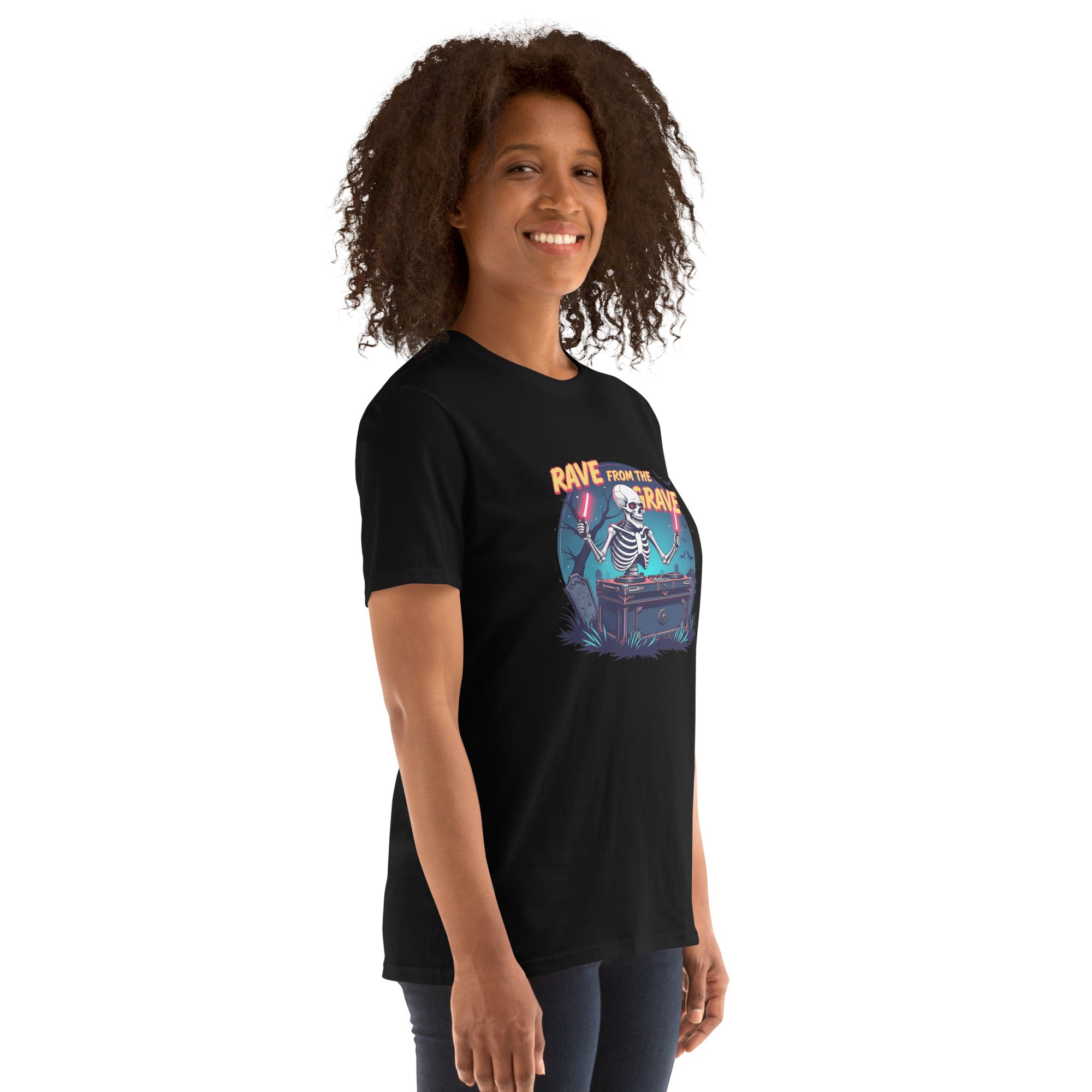 Who says the undead can't dance? This tee screams louder than a zombie DJ dropping a bassline in a crypt.