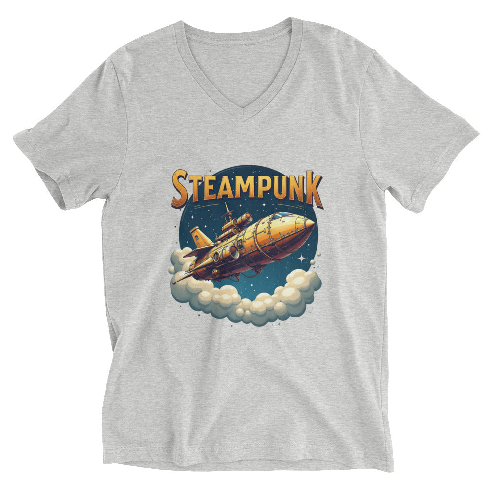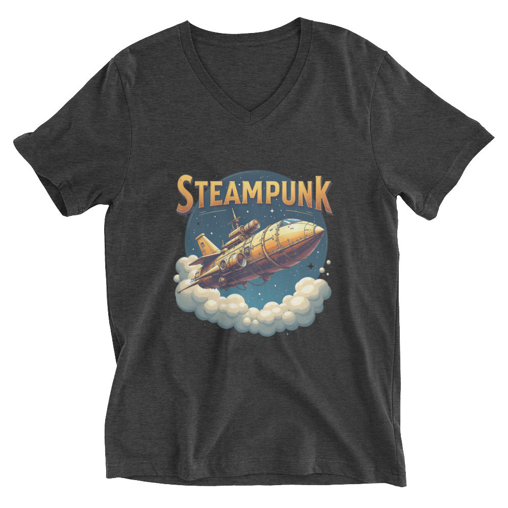 The Steampunk Short Sleeve V-Neck T-shirt is for those who fuse the elegance of the Victorian era with the thrill of futuristic invention. Crafted from soft, breathable fabric, this shirt channels the intricate gears, steam-powered imagination, and a bold sense of adventure that defines the steampunk world.