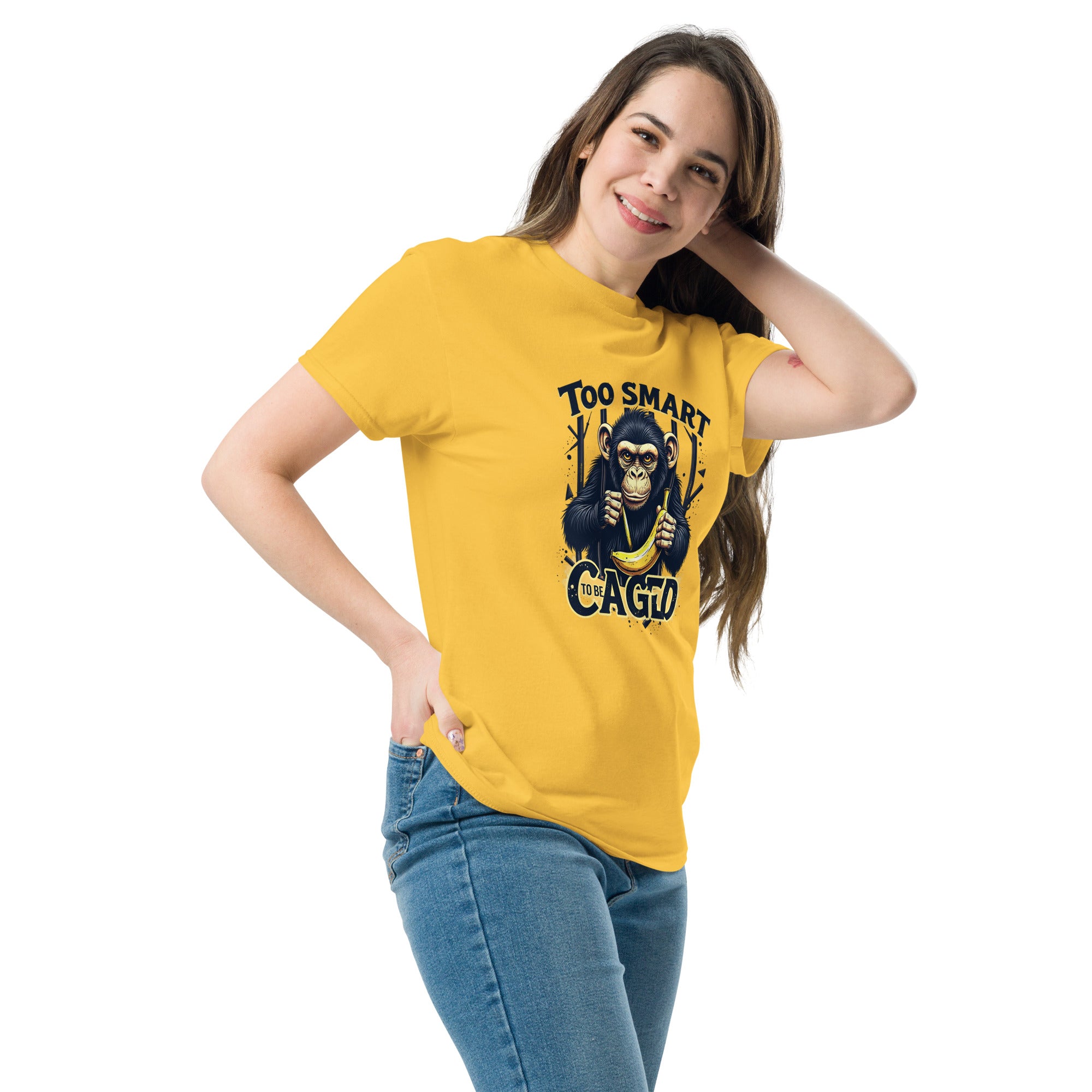 You weren’t made to fit in a box—or a cage. You’re the kind of woman who thinks for herself, speaks her mind, and laughs in the face of limits. The “Too Smart To Be Caged” tee is your loud-and-proud declaration that brilliance was never meant to be tamed.