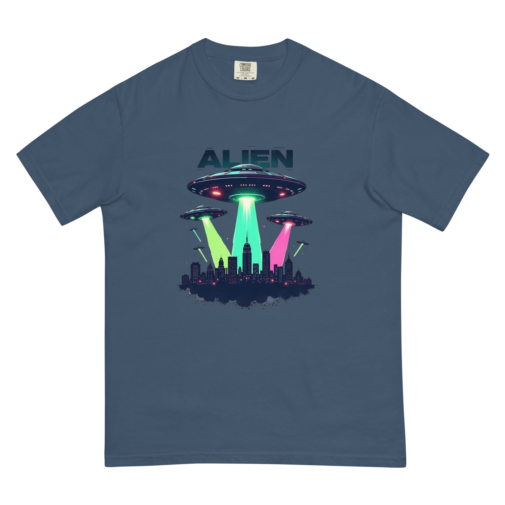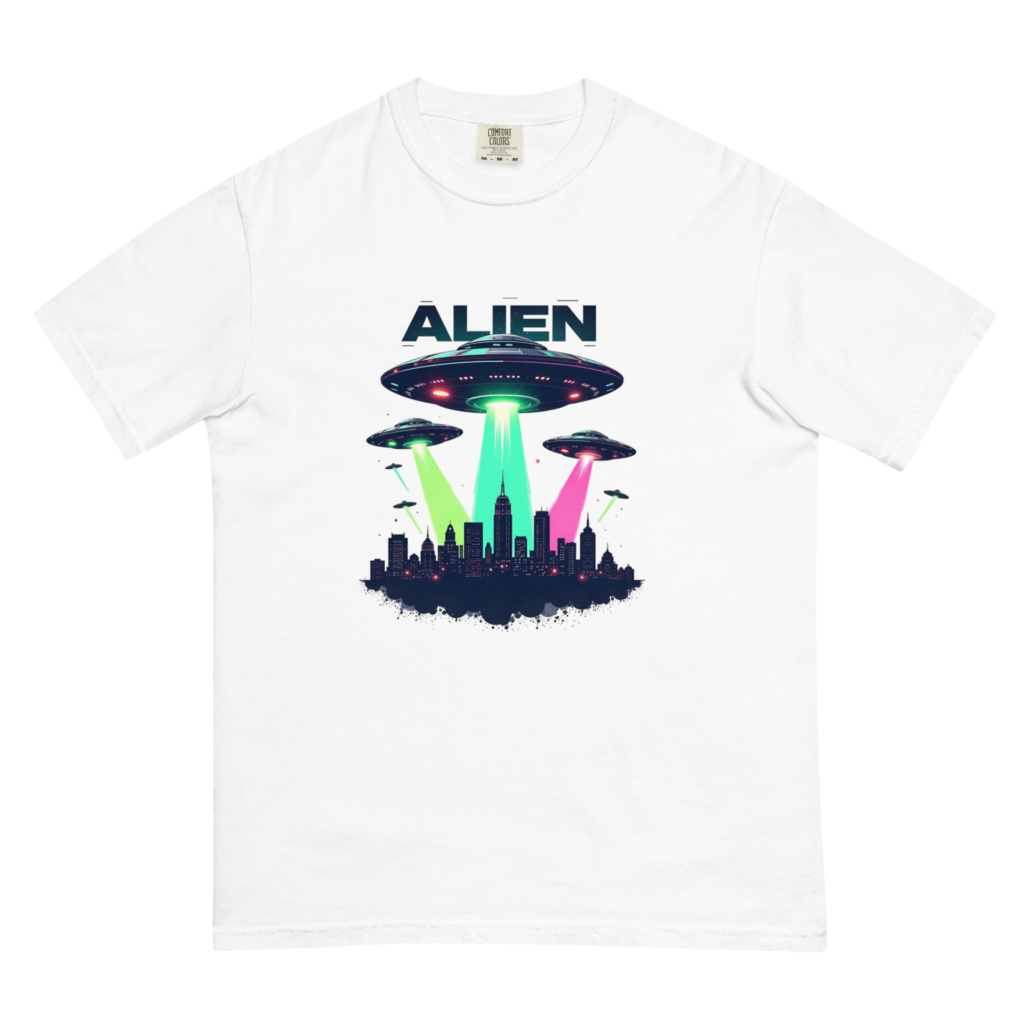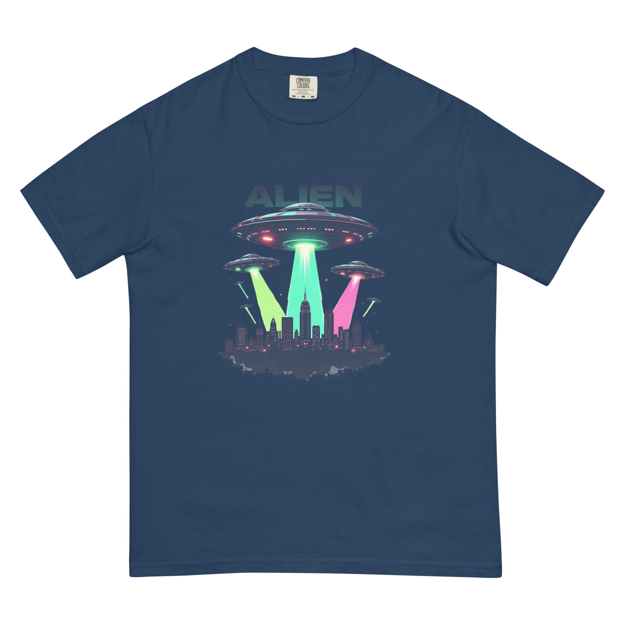 The Alien Garment-Dyed Heavyweight T-shirt is for those who believe there’s more to this world—and the universe—than meets the eye. Crafted from heavyweight, garment-dyed fabric, this shirt is as durable as the curiosity it represents, perfect for those who aren’t afraid to ask the big questions and embrace the mysteries that lie beyond.
