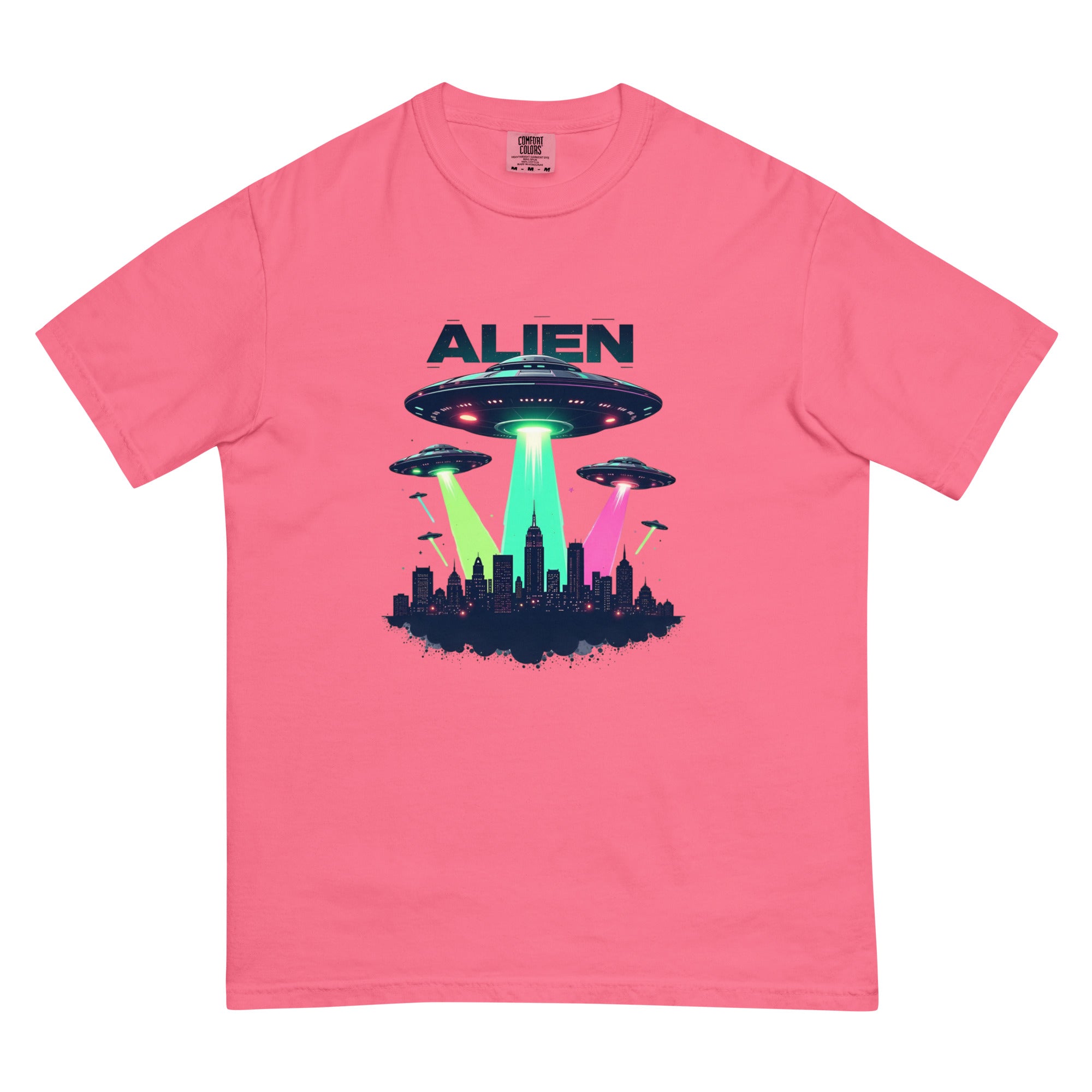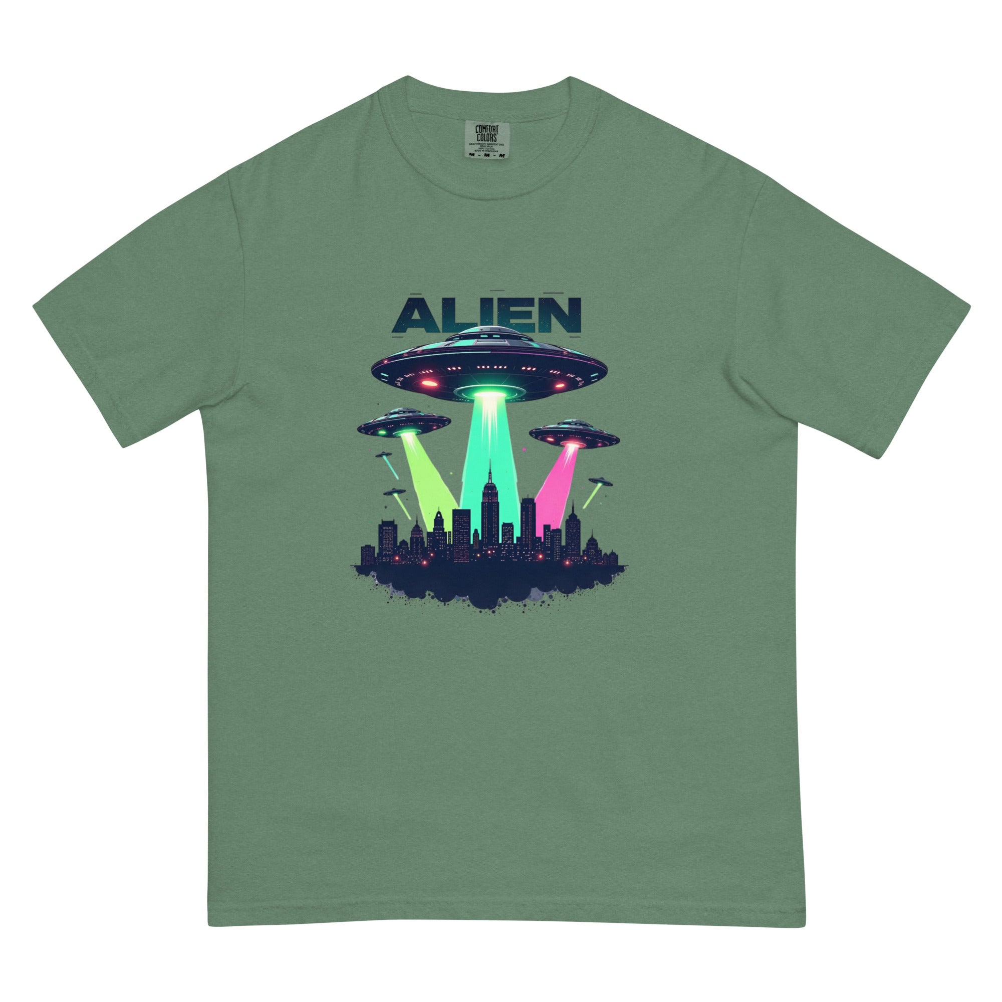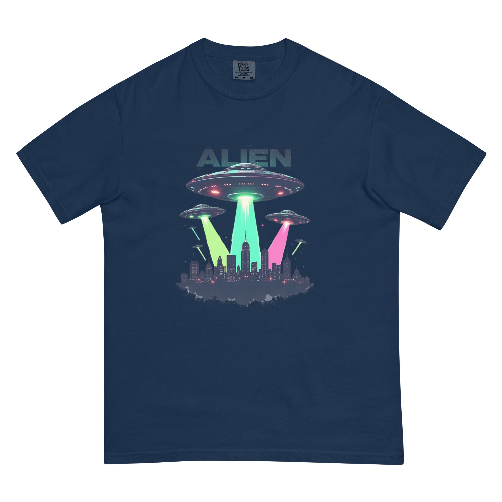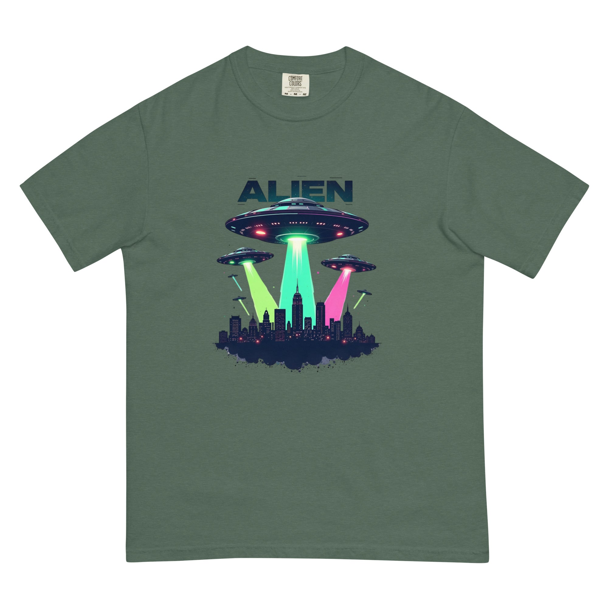 The Alien Garment-Dyed Heavyweight T-shirt is for those who believe there’s more to this world—and the universe—than meets the eye. Crafted from heavyweight, garment-dyed fabric, this shirt is as durable as the curiosity it represents, perfect for those who aren’t afraid to ask the big questions and embrace the mysteries that lie beyond.