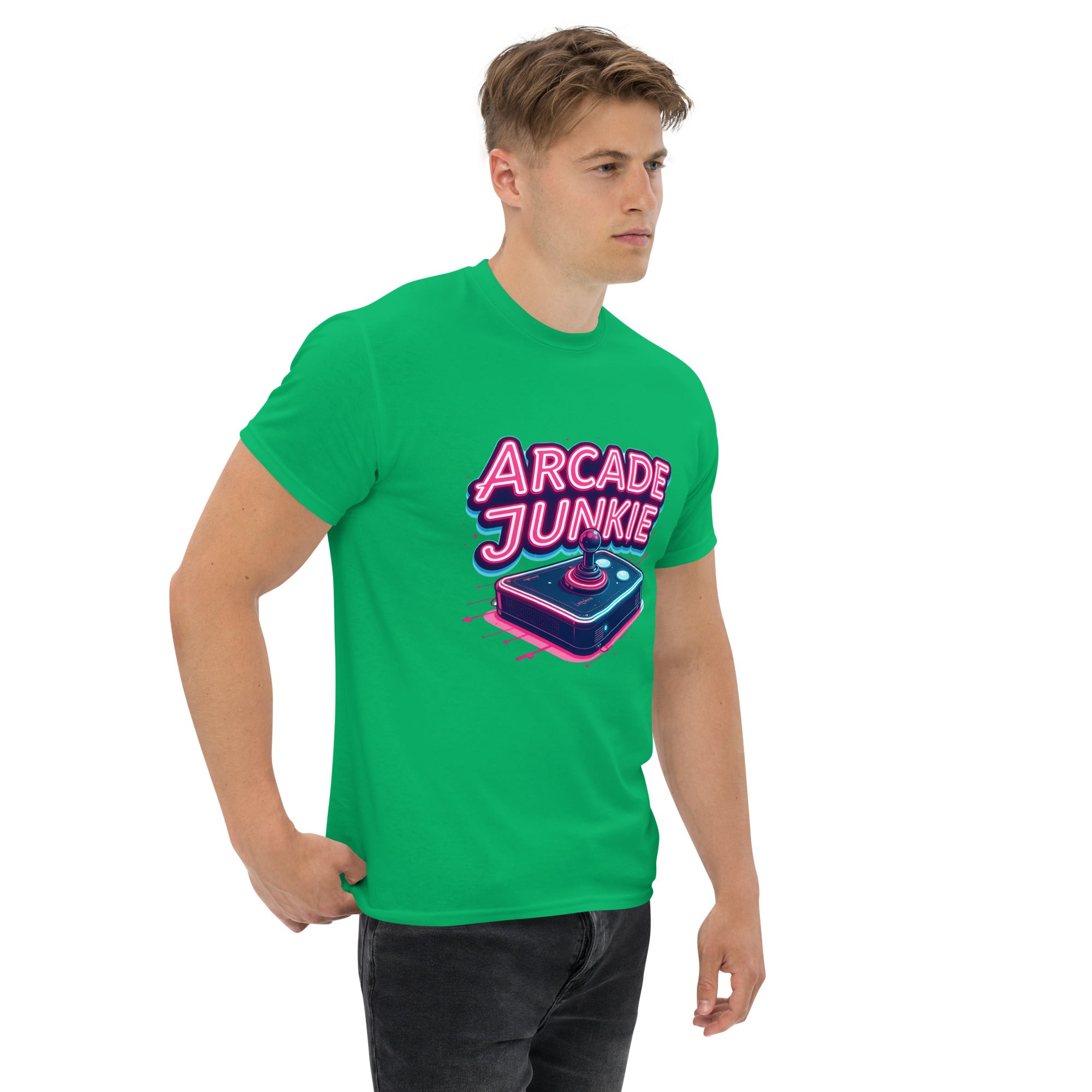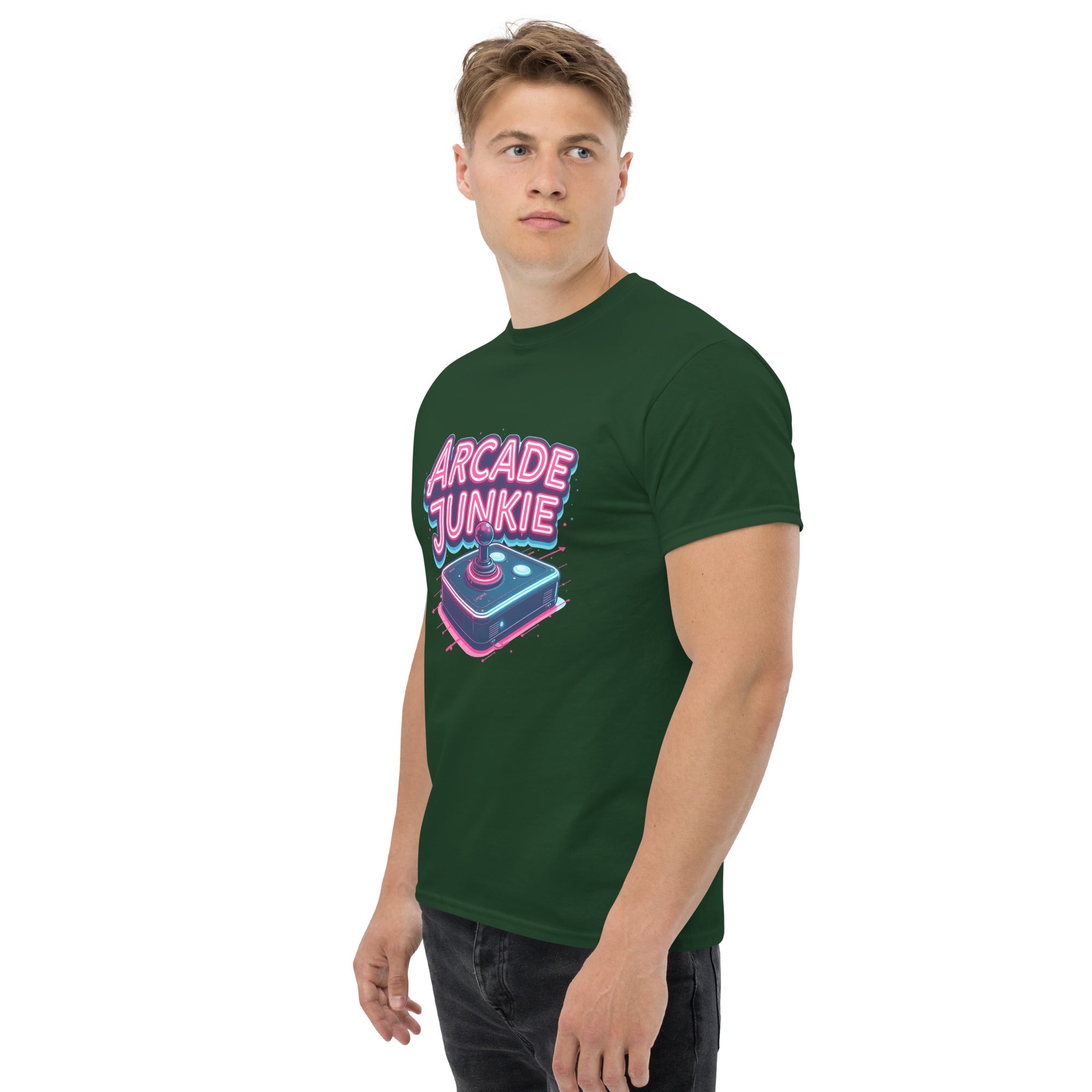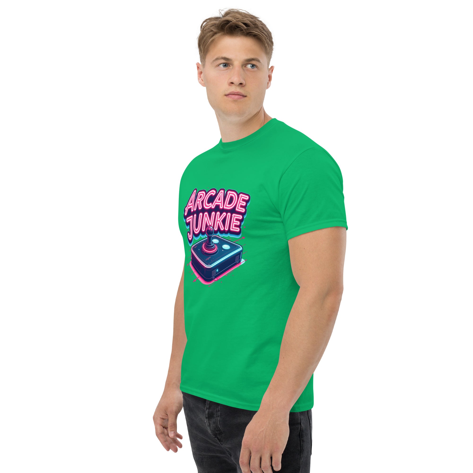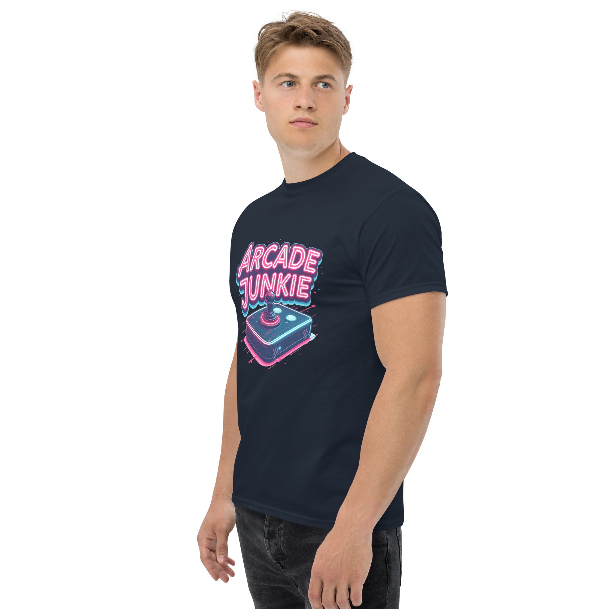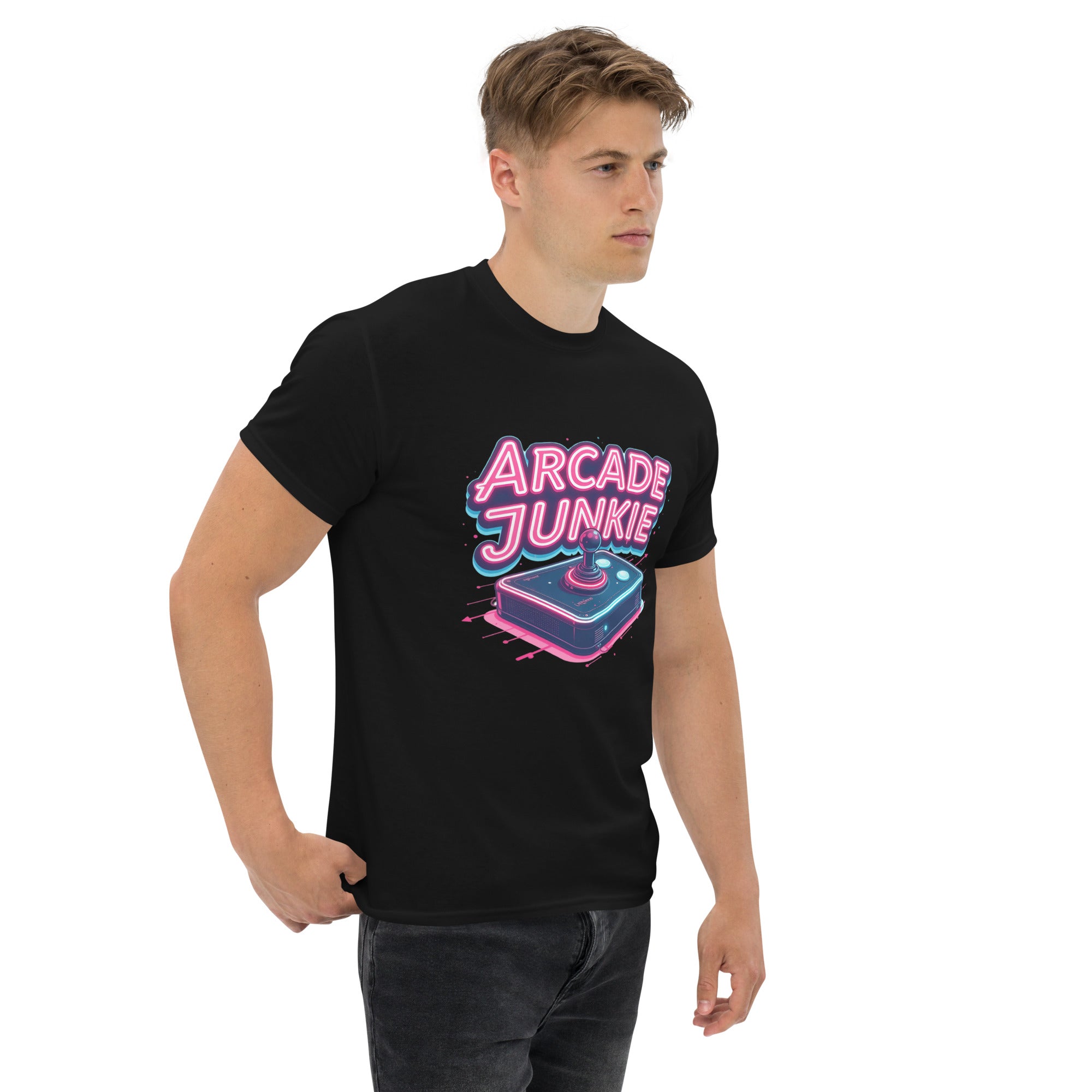 The Arcade Junkie Men’s Classic Tee is for those who live and breathe the thrill of the game. Crafted from soft, breathable fabric, this shirt celebrates the nostalgia and excitement of classic arcade games, where every button press and joystick move takes you one step closer to victory.