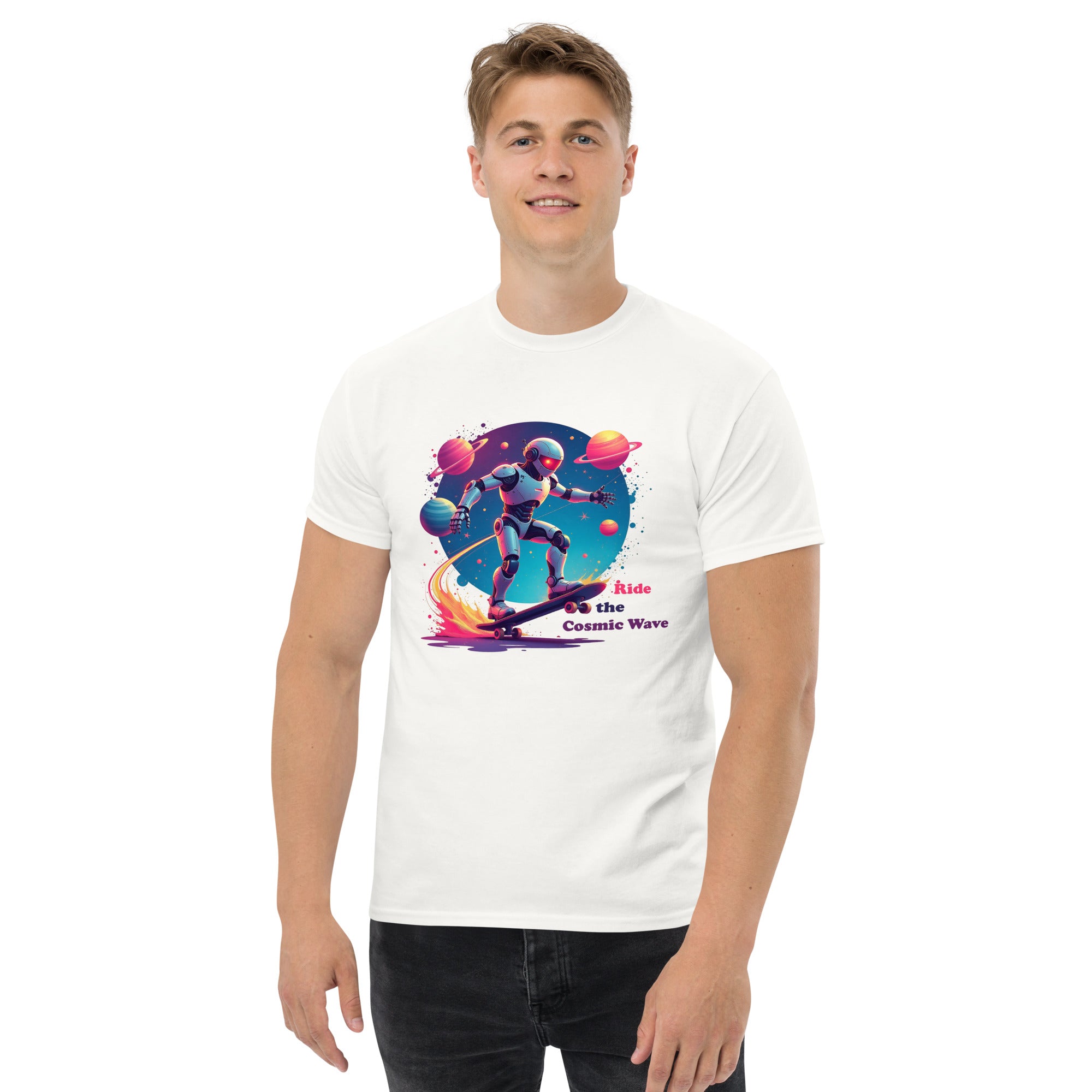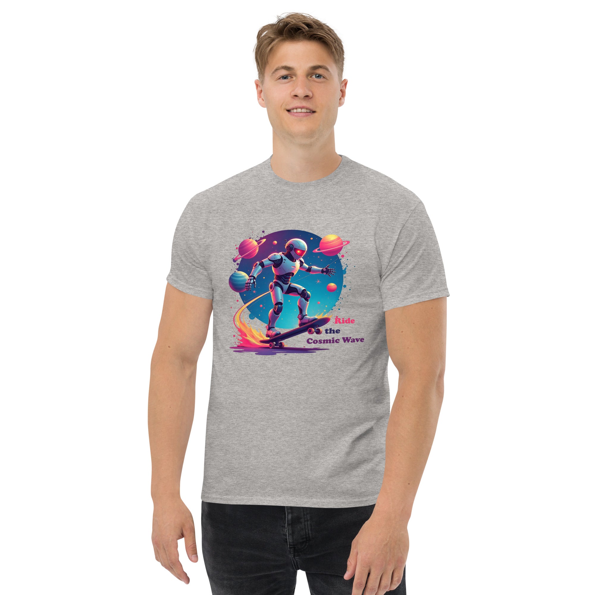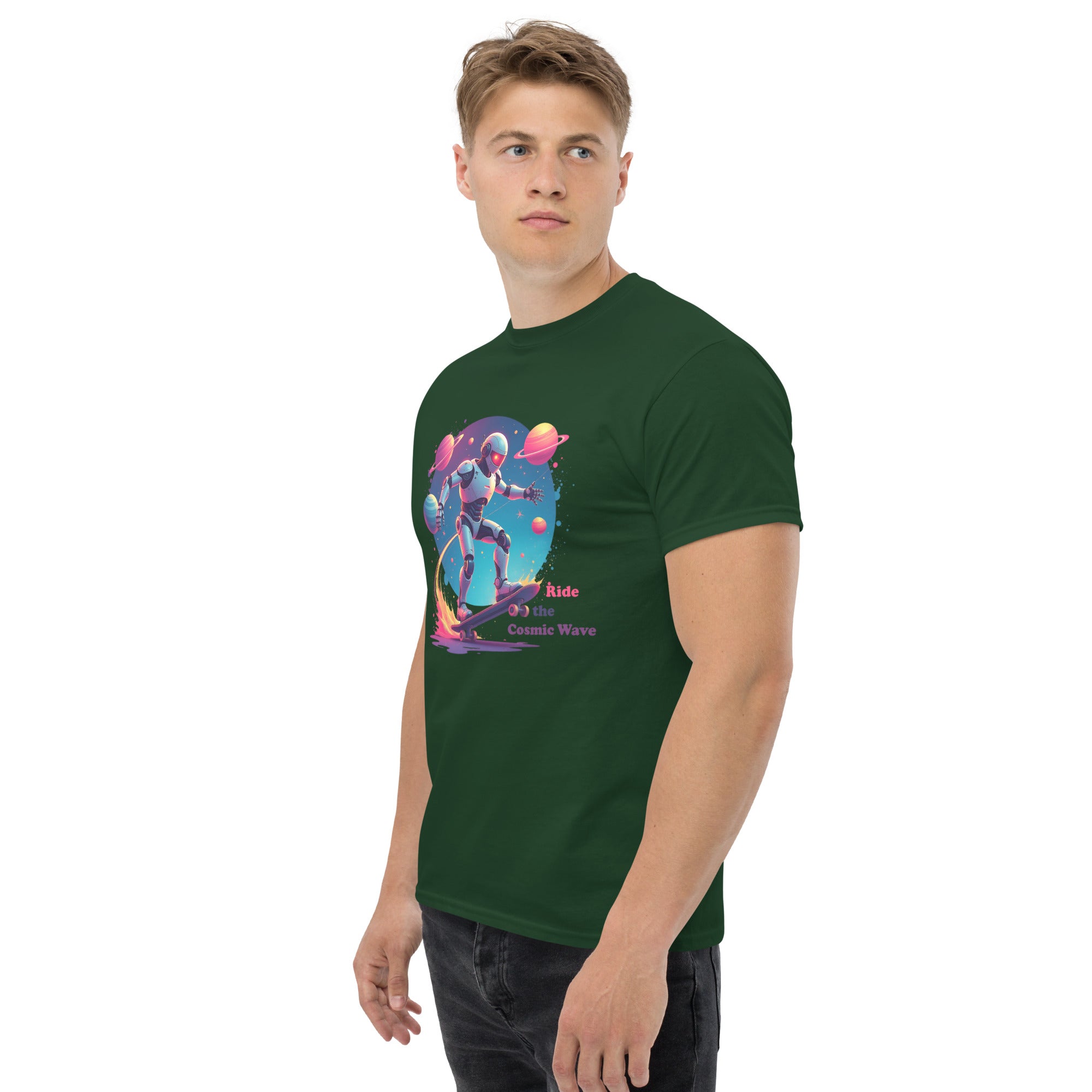 The Ride The Cosmic Wave Unisex Classic Tee is for those who understand that life is one big adventure, and the universe is your playground. Crafted from soft, breathable fabric, this shirt captures the thrill of riding the waves of the cosmos—ever-changing, boundless, and full of potential.