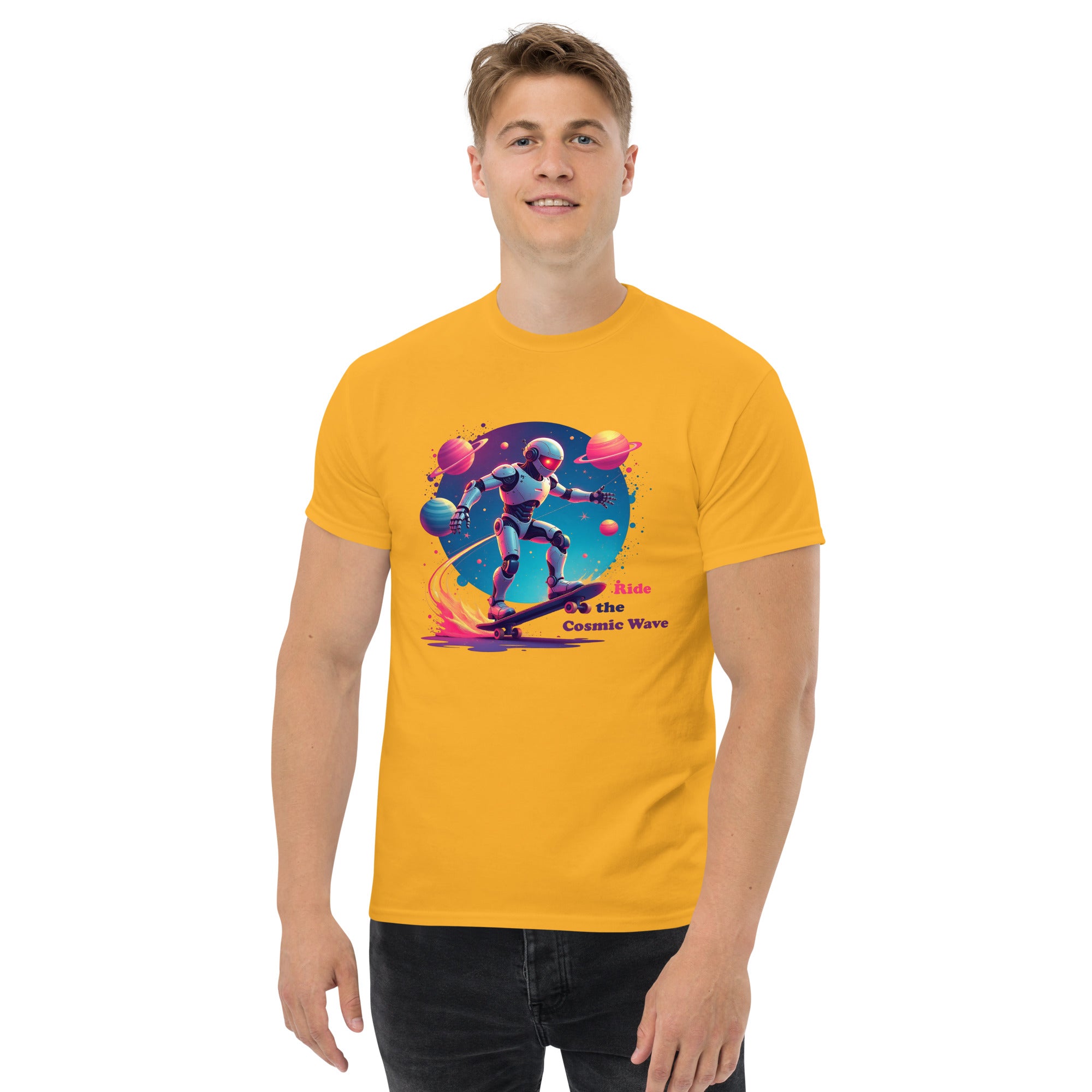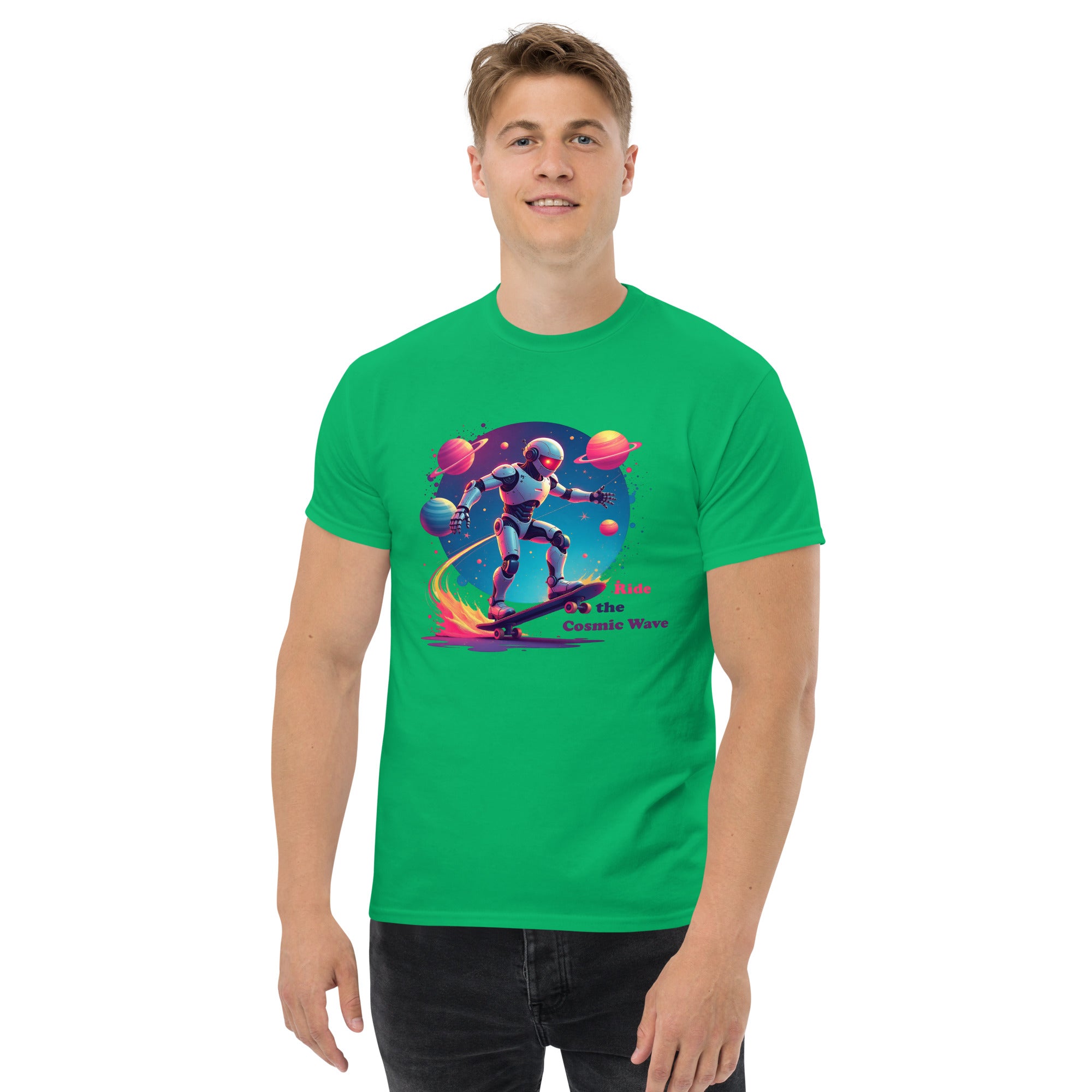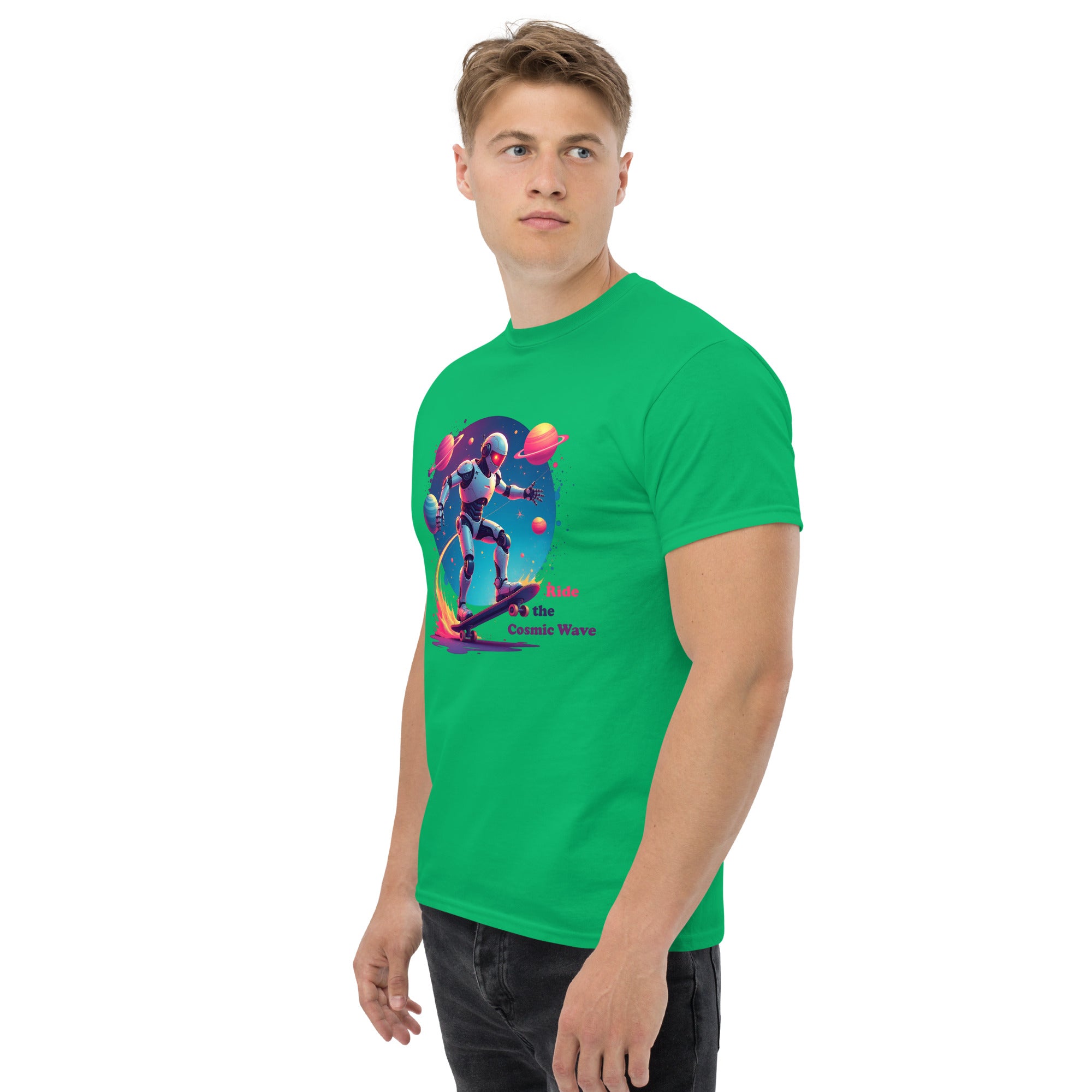 The Ride The Cosmic Wave Unisex Classic Tee is for those who understand that life is one big adventure, and the universe is your playground. Crafted from soft, breathable fabric, this shirt captures the thrill of riding the waves of the cosmos—ever-changing, boundless, and full of potential.