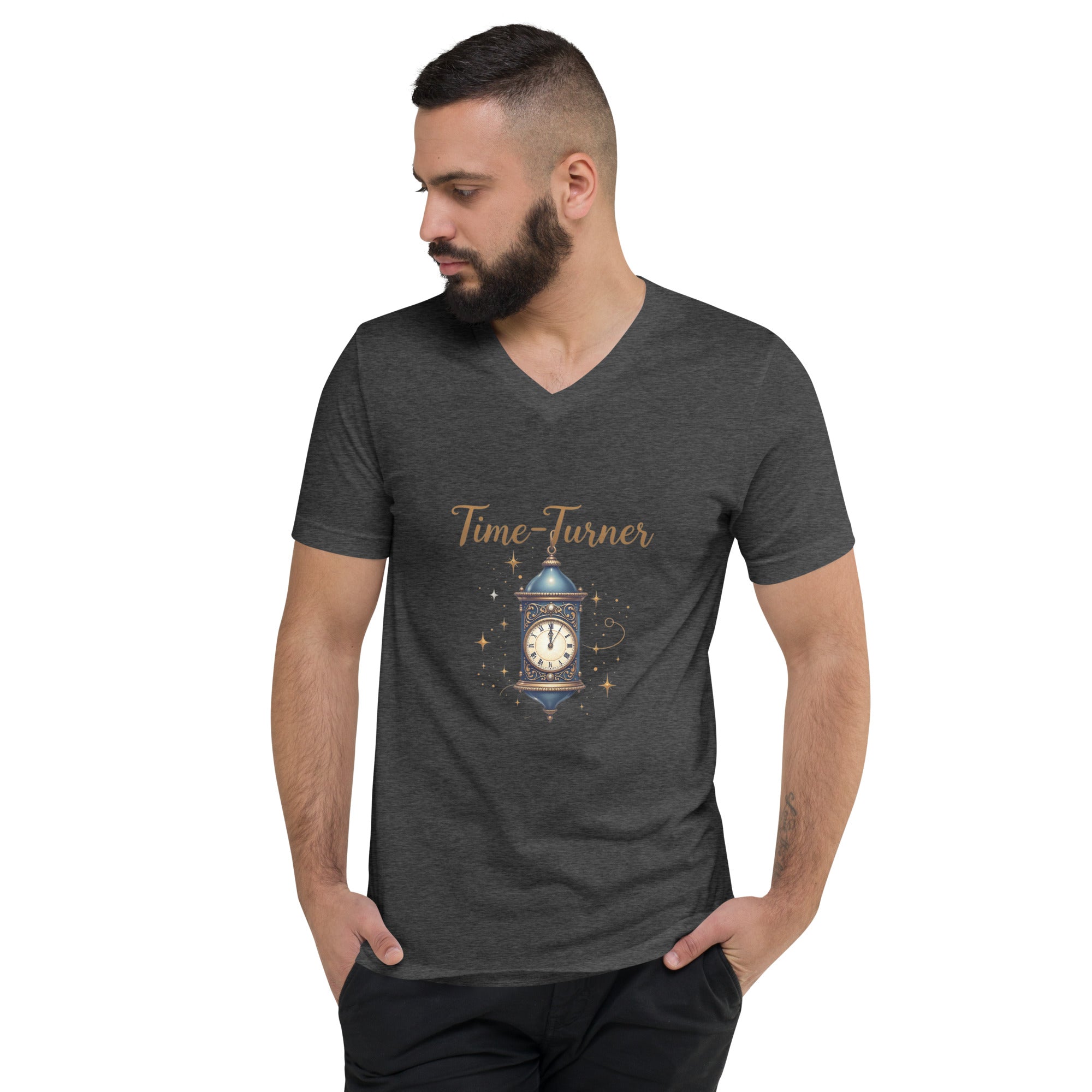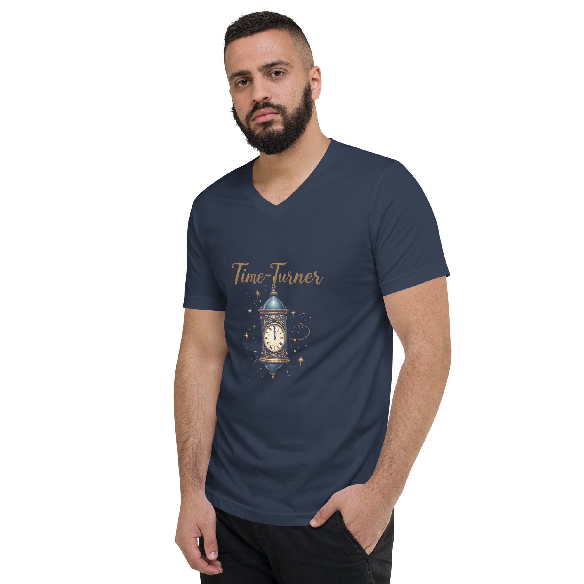 The Time Turner Men’s Short Sleeve V-Neck T-shirt is for those who know that time is more than just a ticking clock—it’s an opportunity to reshape, relive, and redefine. Crafted from soft, breathable fabric, this shirt combines comfort with the power of timeless design, perfect for those who believe that every second holds endless possibilities.