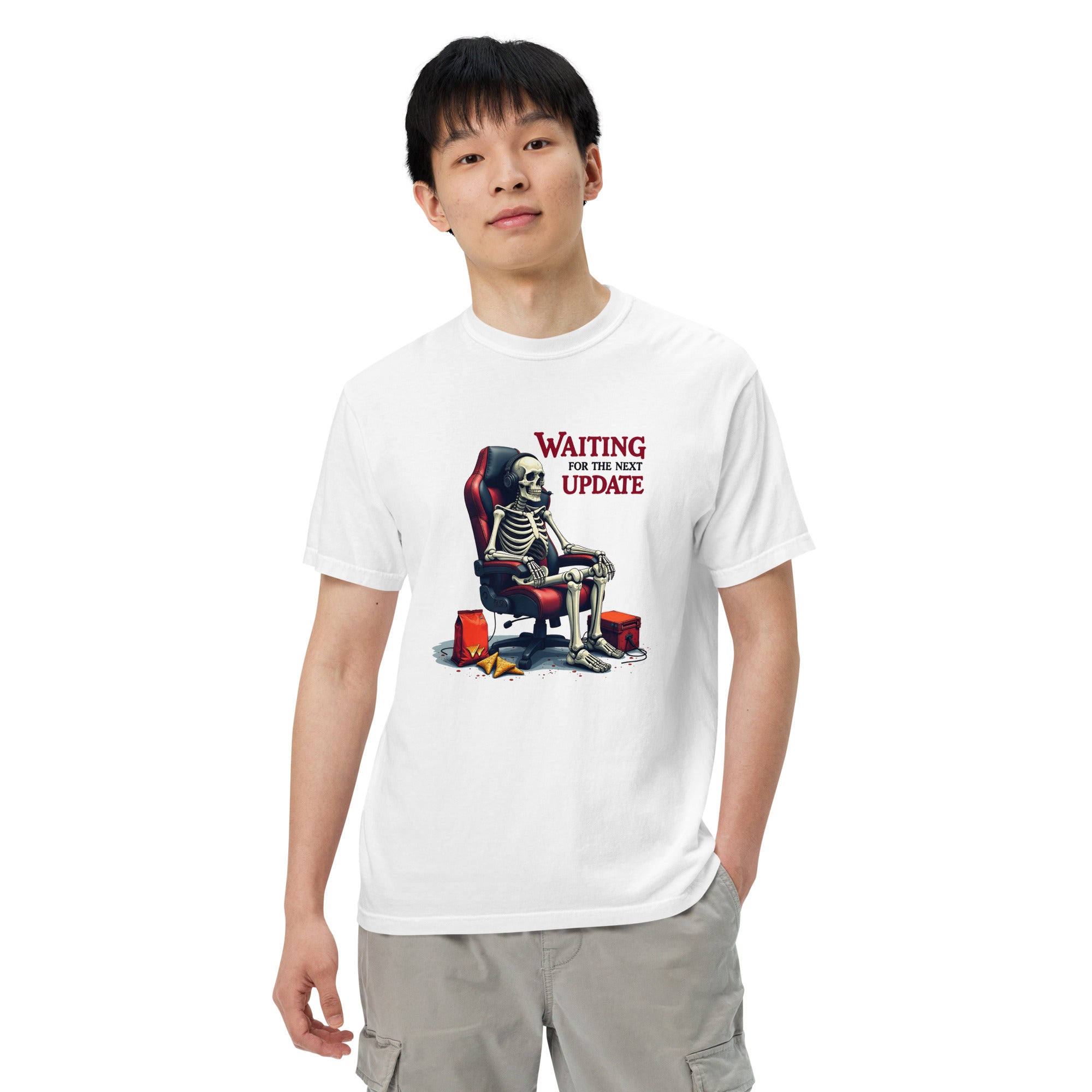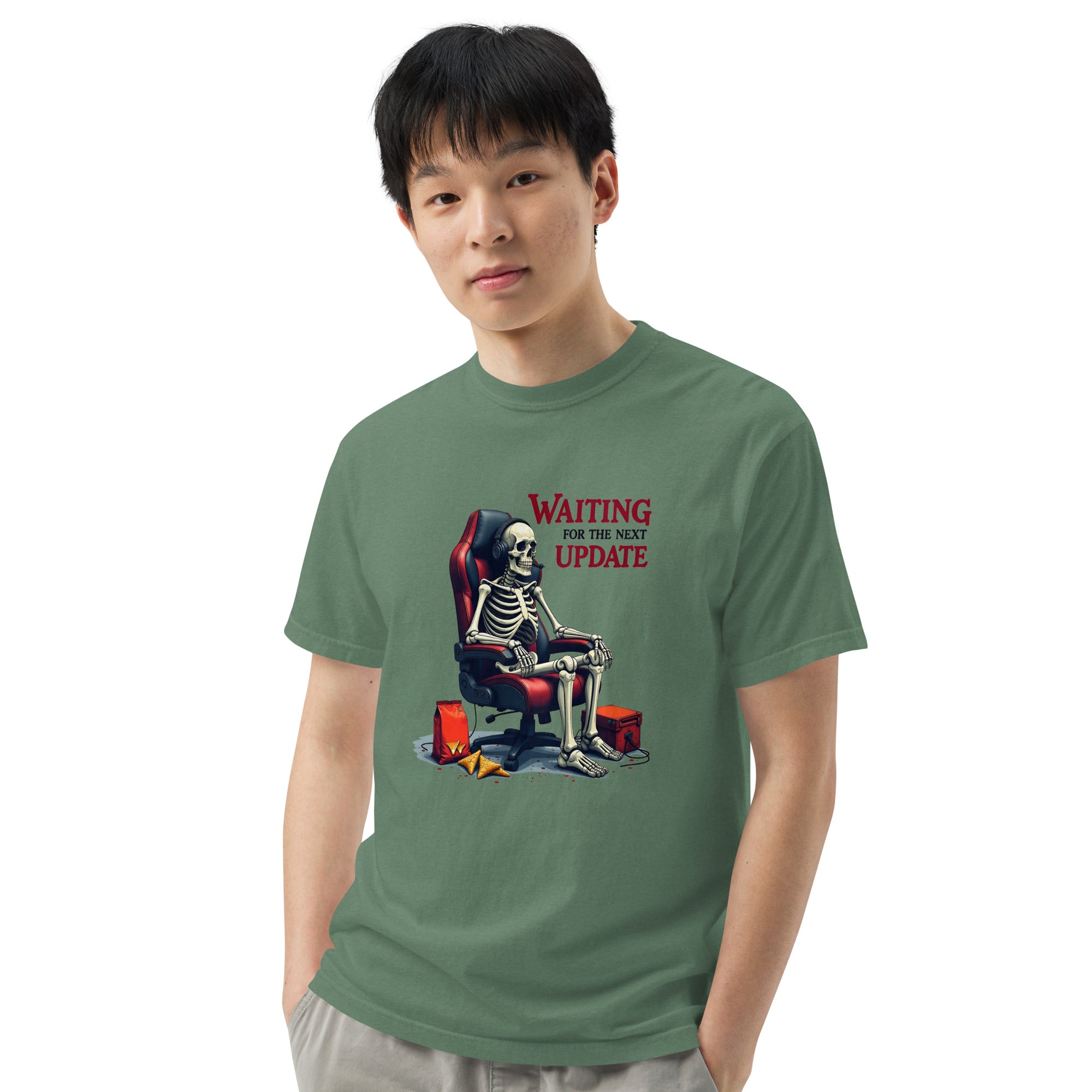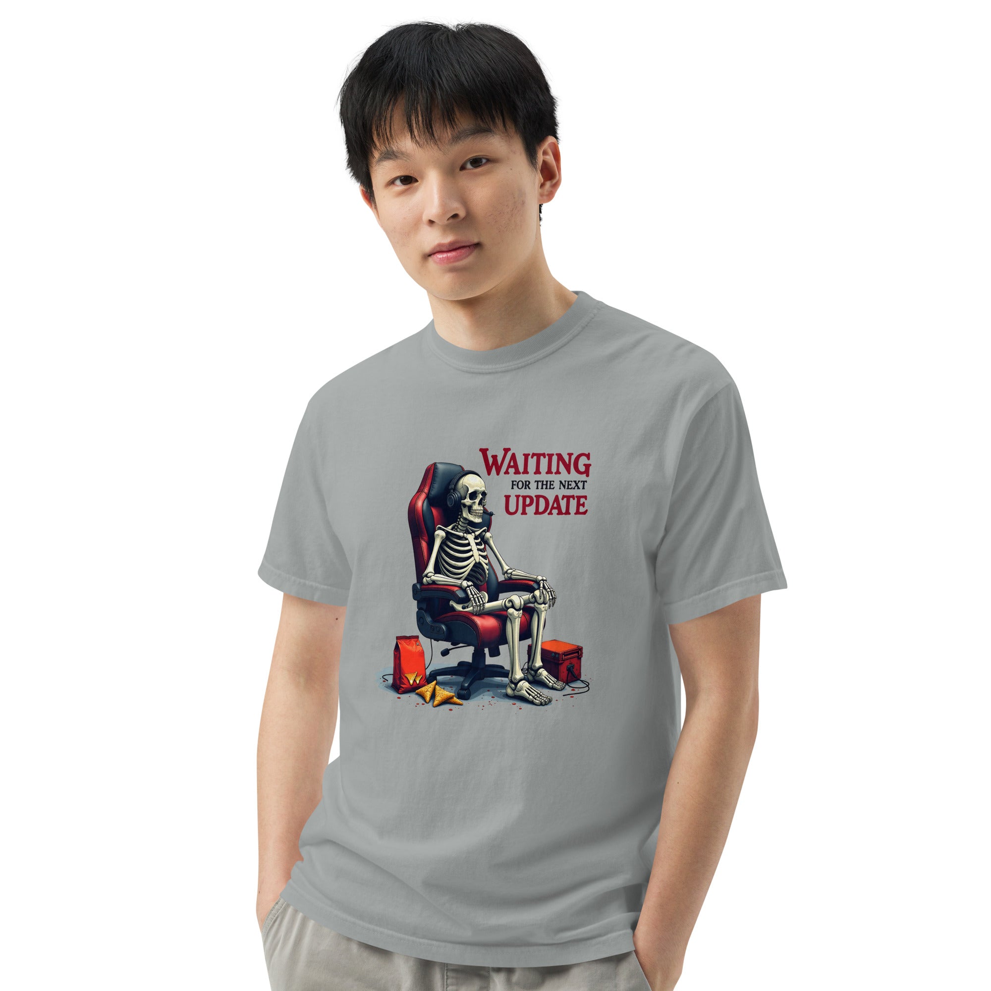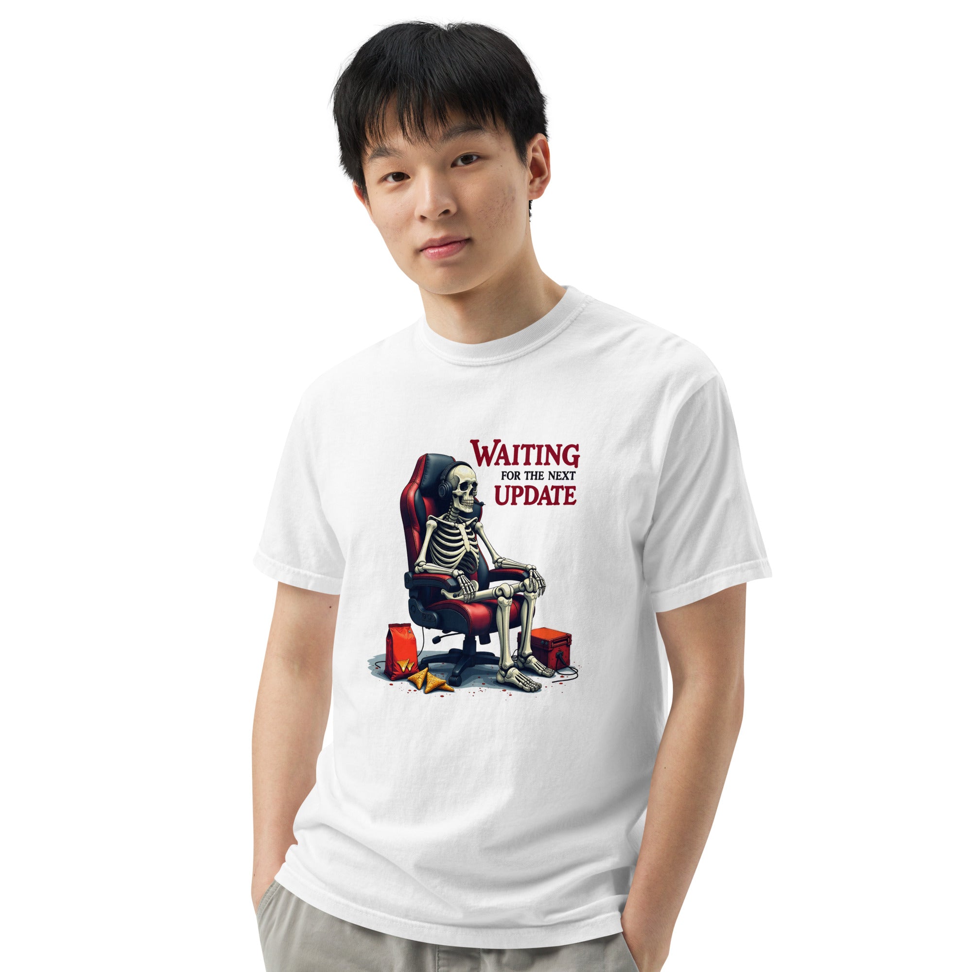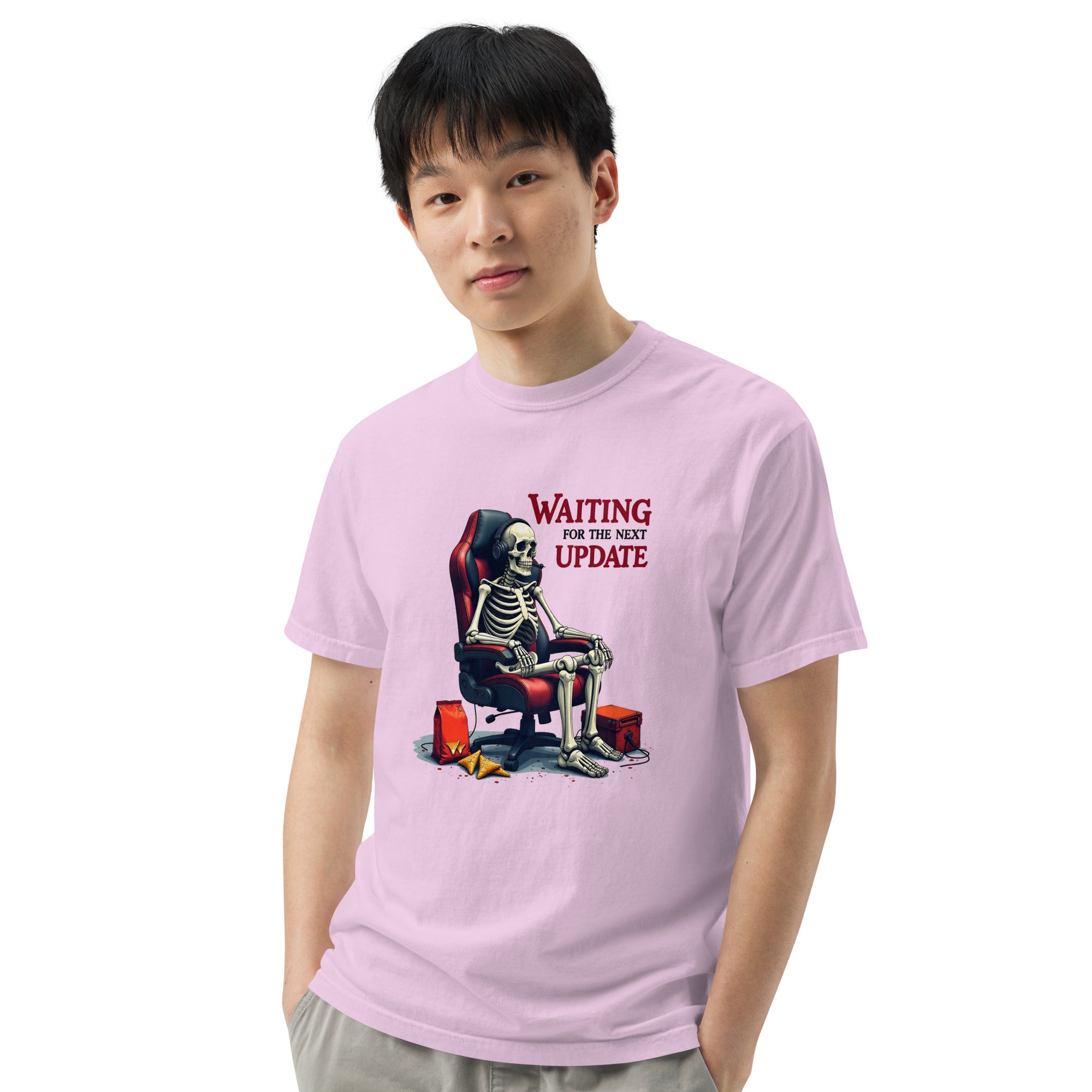 Don't let time slow you down—order the Waiting for the Next Update Women’s Garment-Dyed Heavyweight T-Shirt today and wear your patience with pride.
